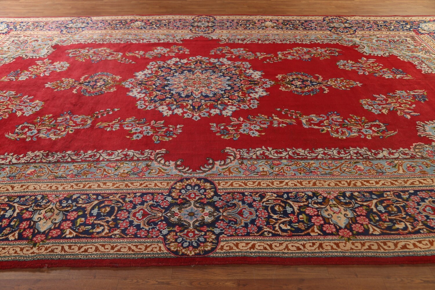 Vintage Floral Red Kerman Persian Large Rug 10x16