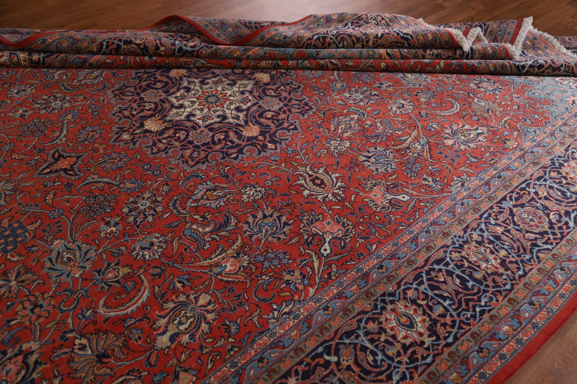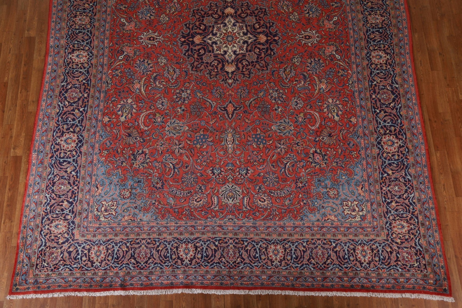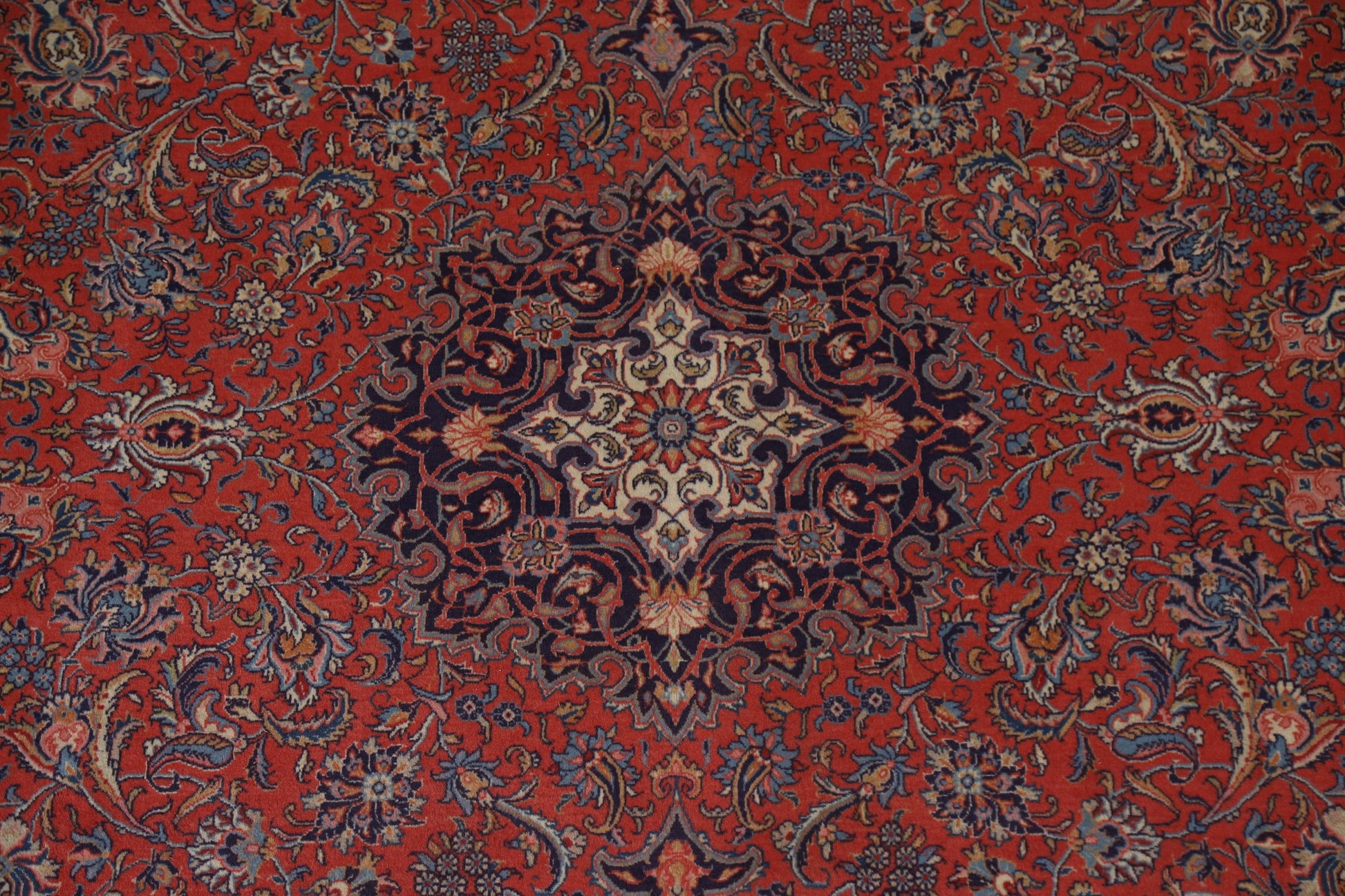 A Beautiful Genuine Persia ( Persia ) Sarouk rug is Hand Knotted by skillful weavers in Persia ( Persia ) with 100% Wool Material. This rug is in Very Good condition. dimensions are 12' 7'' X 9' 6'' in foot and 384 X 290 in centimeter. the primary color is Red.