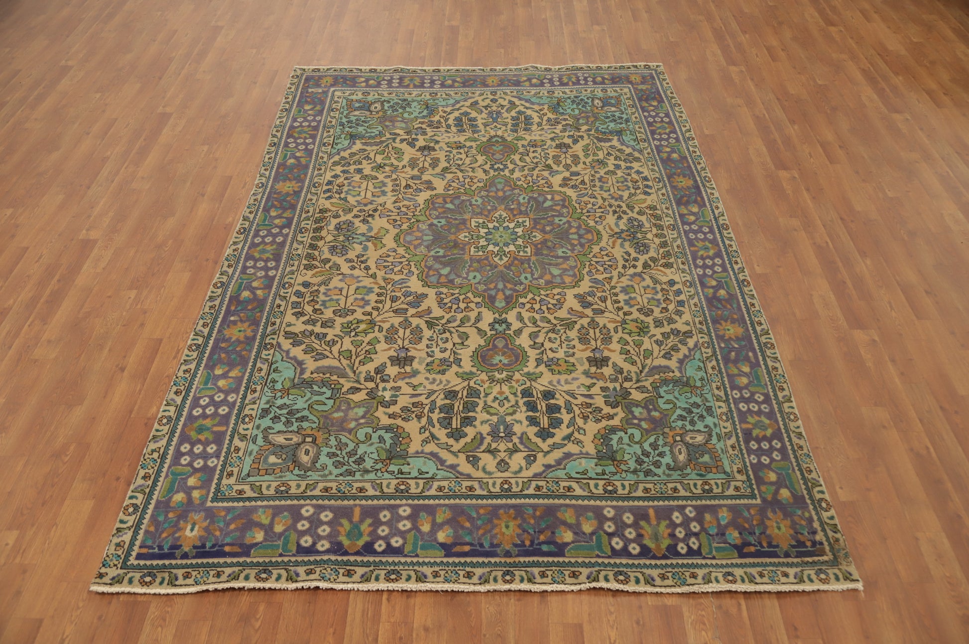 Vintage Floral Tabriz Persian Area Rug 6x10