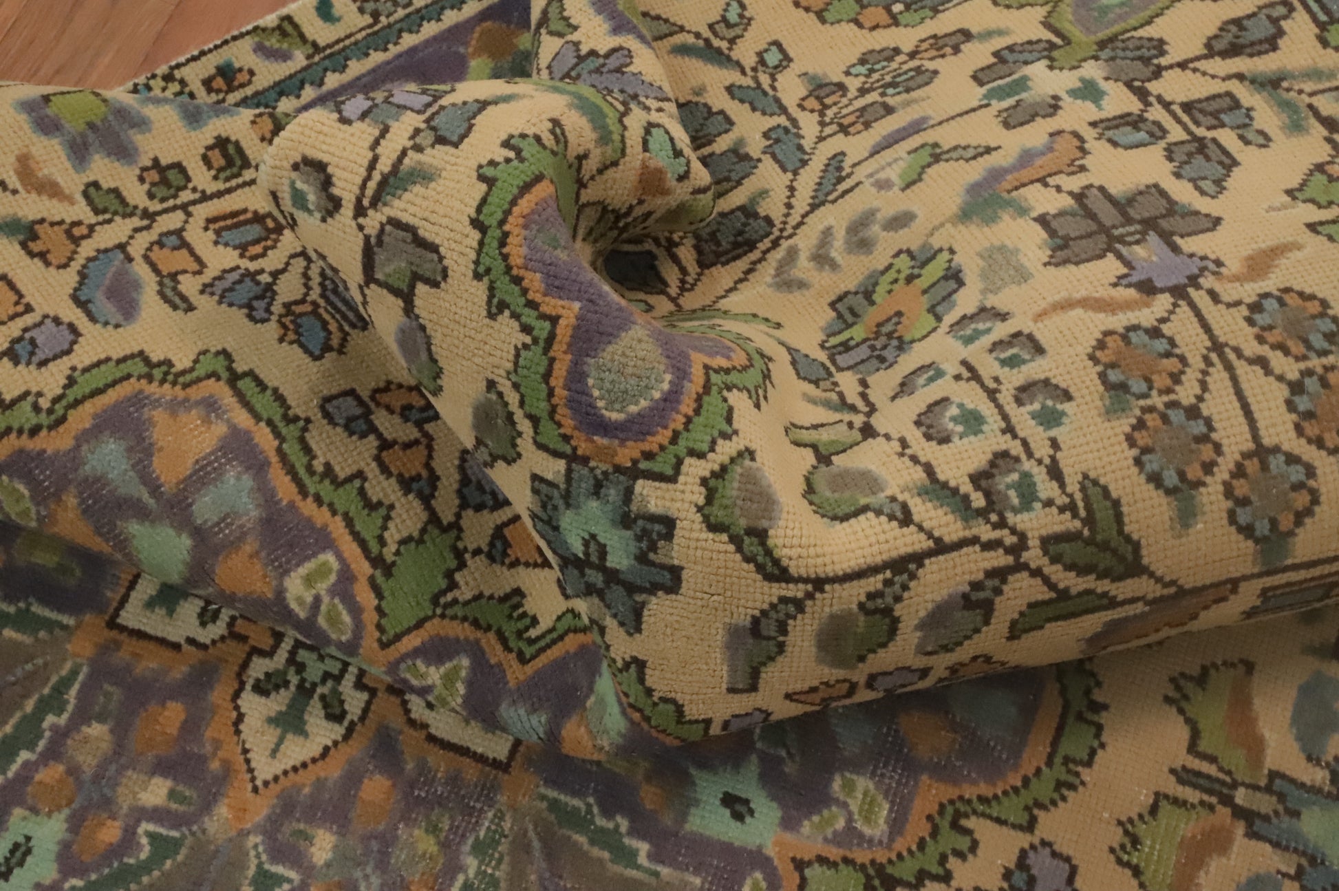 A Beautiful Genuine Persia ( Persia ) Tabriz rug is Hand Knotted by skillful weavers in Persia ( Persia ) with 100% Wool Material. This rug is in Very Good ( Evenly Low Pile-Repair) condition. dimensions are 9' 7'' X 6' 4'' in foot and 292 X 193 in centimeter. the primary color is Peach.