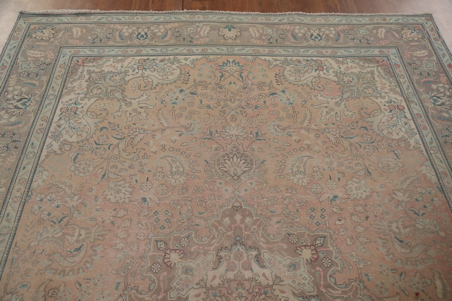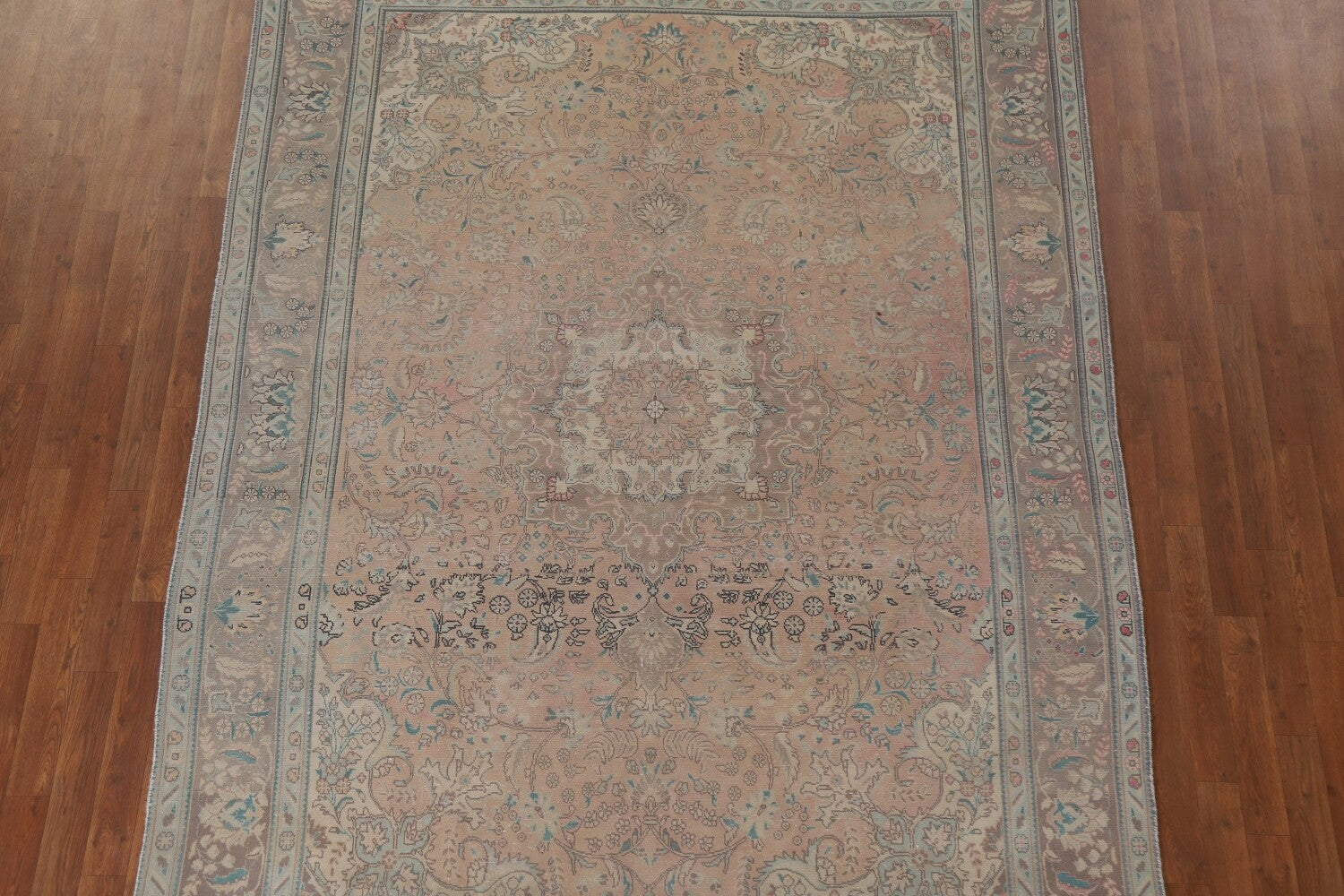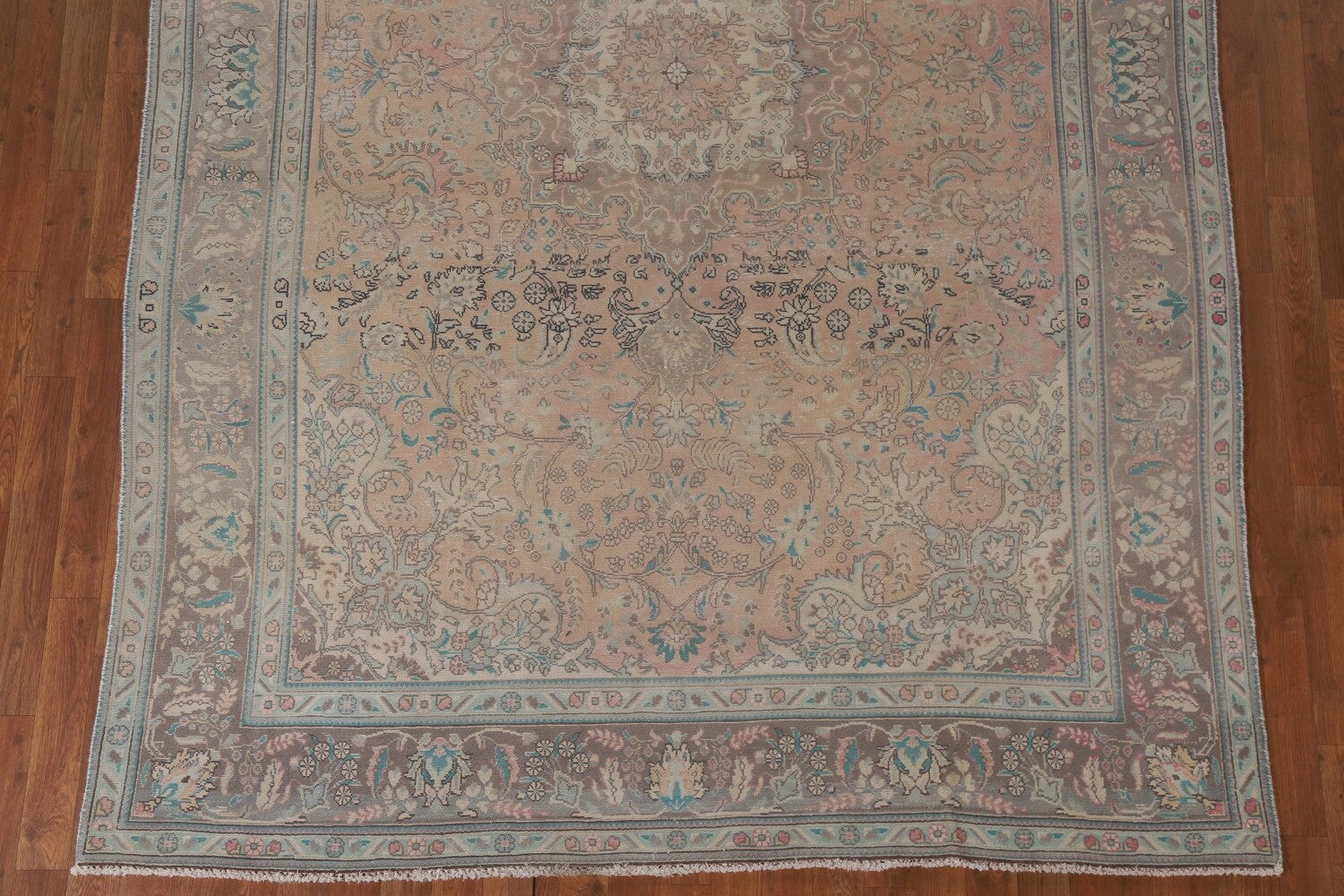 A Beautiful Genuine Persia ( Persia ) Tabriz rug is Hand Knotted by skillful weavers in Persia ( Persia ) with 100% Wool Material. This rug is in Very Good (Evenly Low Pile-Abrash) condition. dimensions are 9' 5'' X 6' 4'' in foot and 287 X 193 in centimeter. the primary color is Pink.