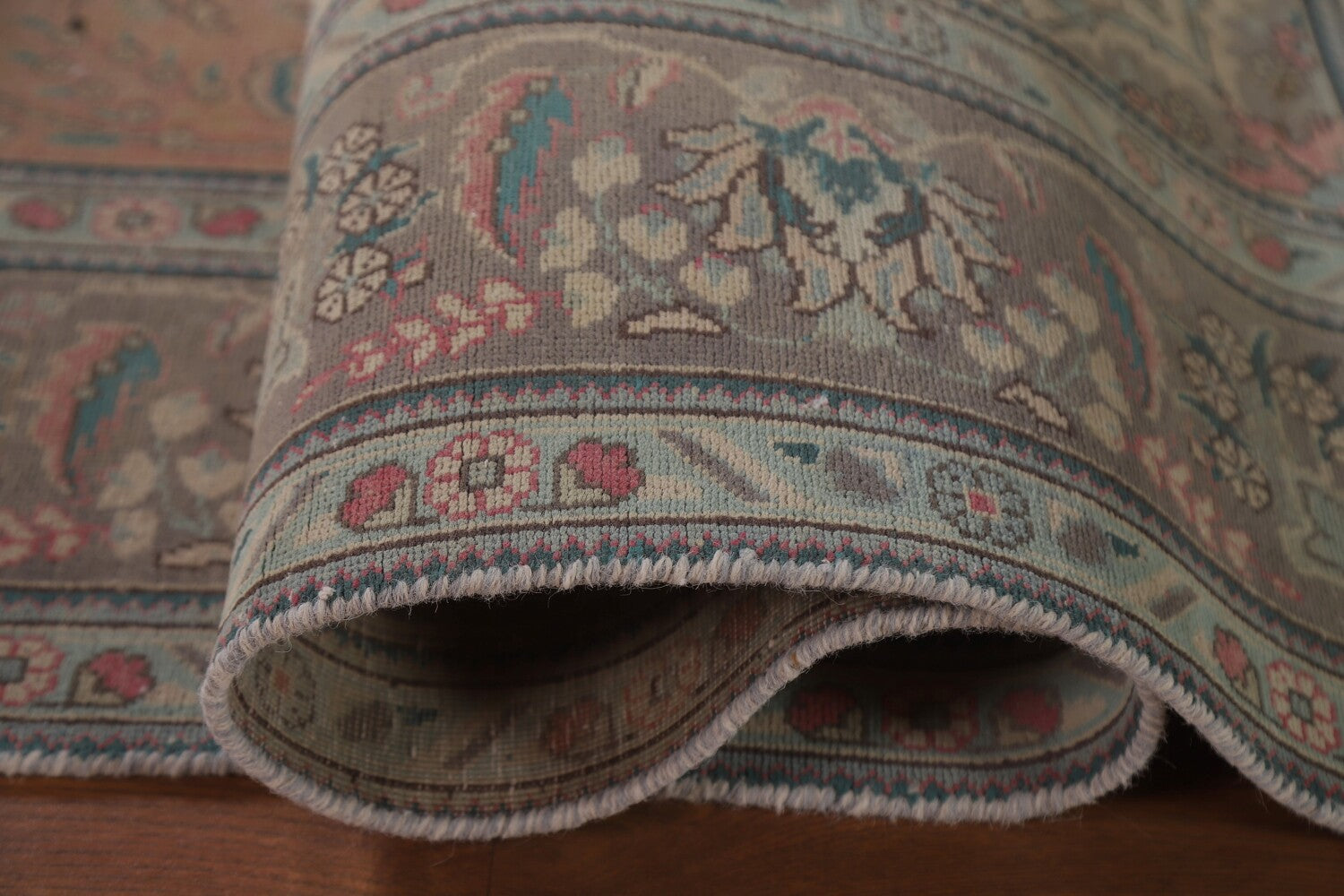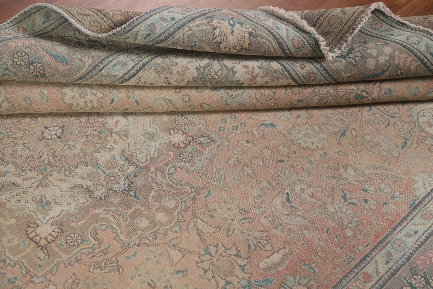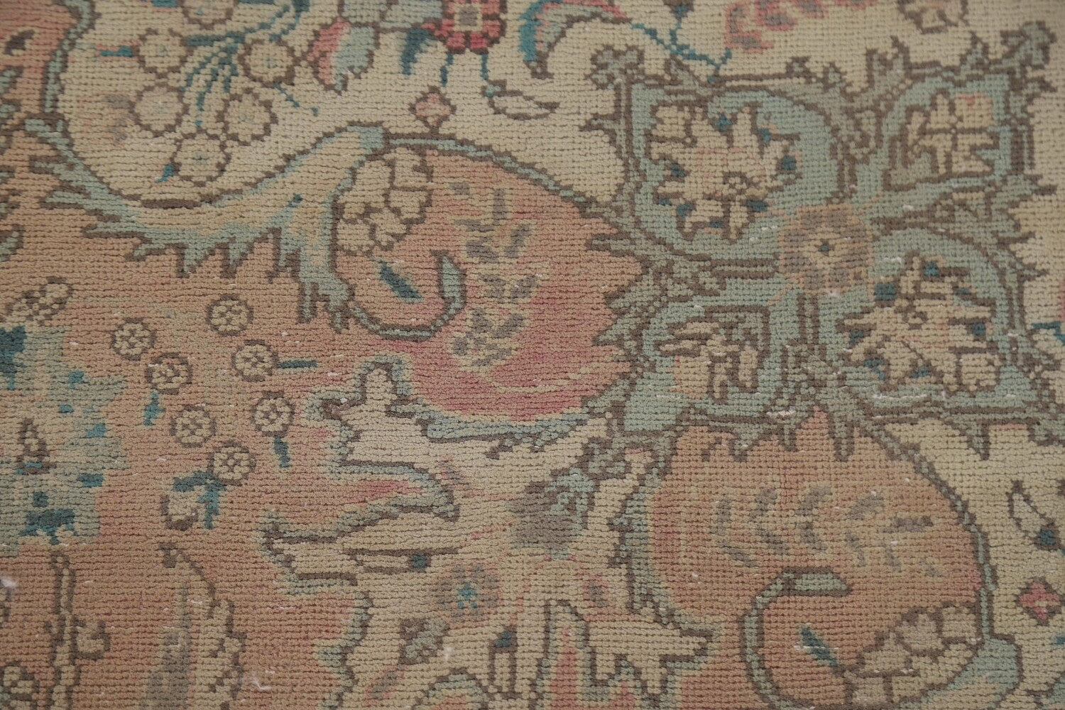 A Beautiful Genuine Persia ( Persia ) Tabriz rug is Hand Knotted by skillful weavers in Persia ( Persia ) with 100% Wool Material. This rug is in Very Good (Evenly Low Pile-Abrash) condition. dimensions are 9' 5'' X 6' 4'' in foot and 287 X 193 in centimeter. the primary color is Pink.