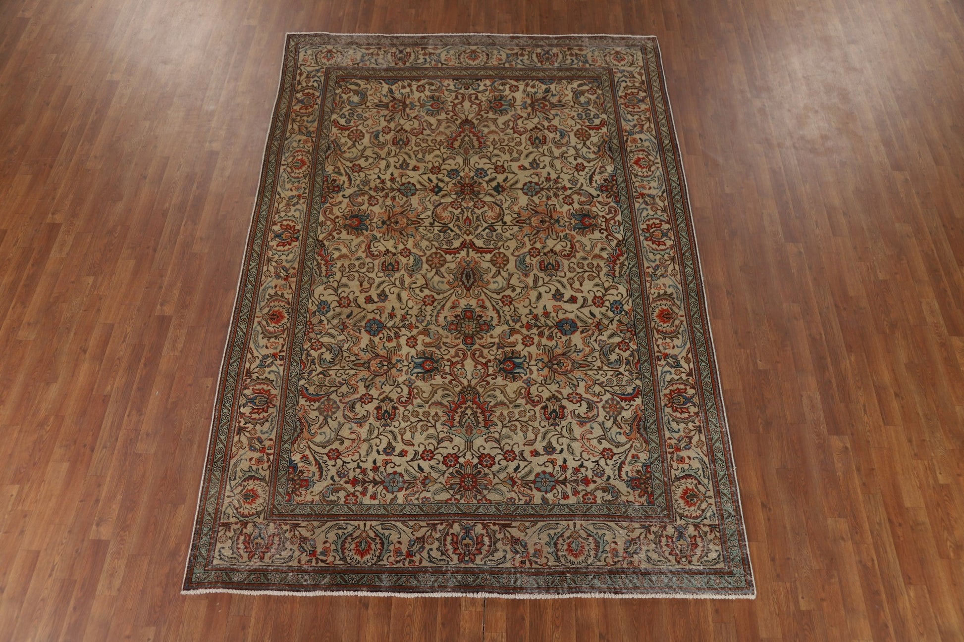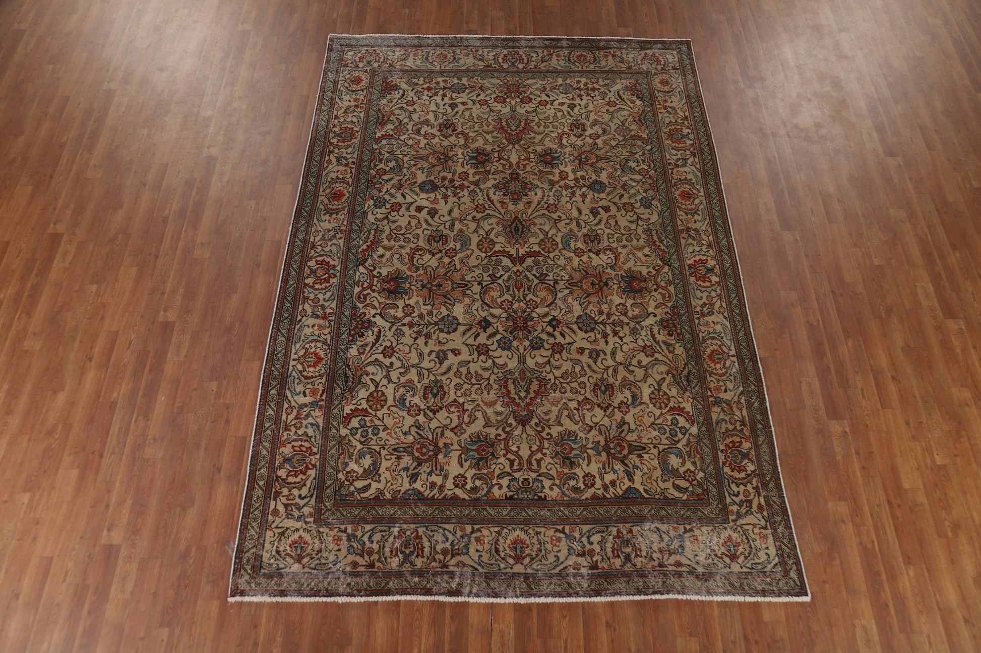 Vintage Floral Tabriz Persian Area Rug 7x10