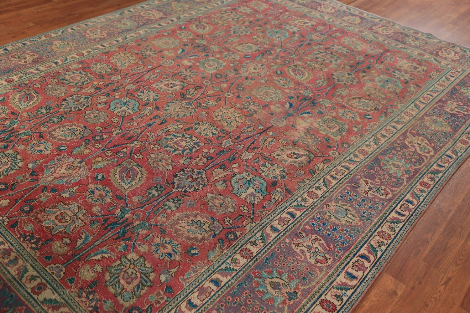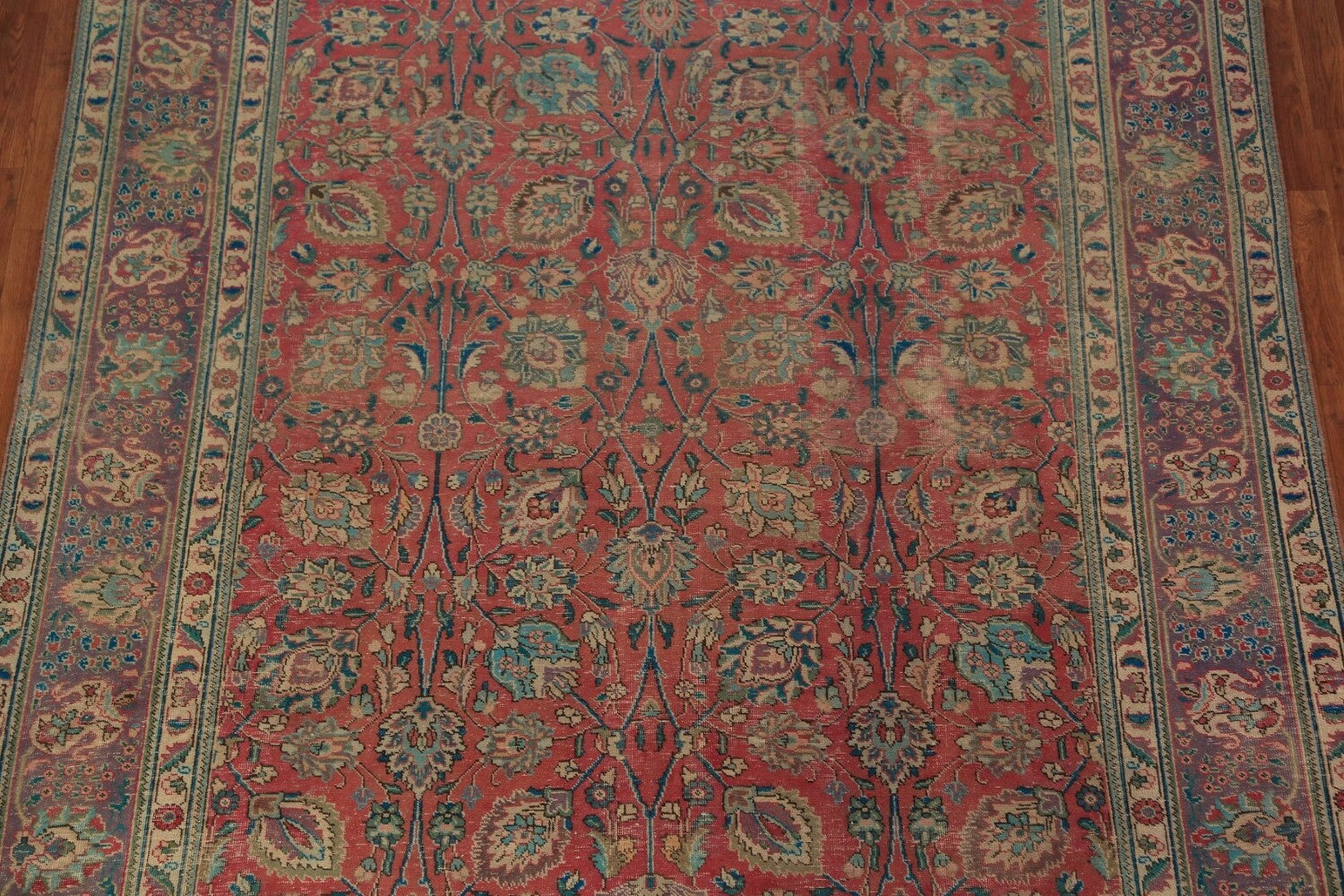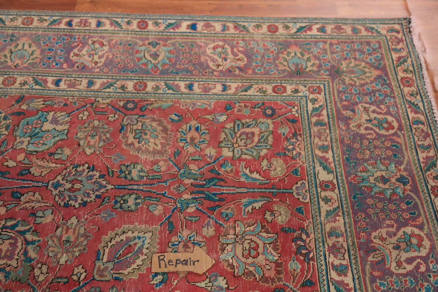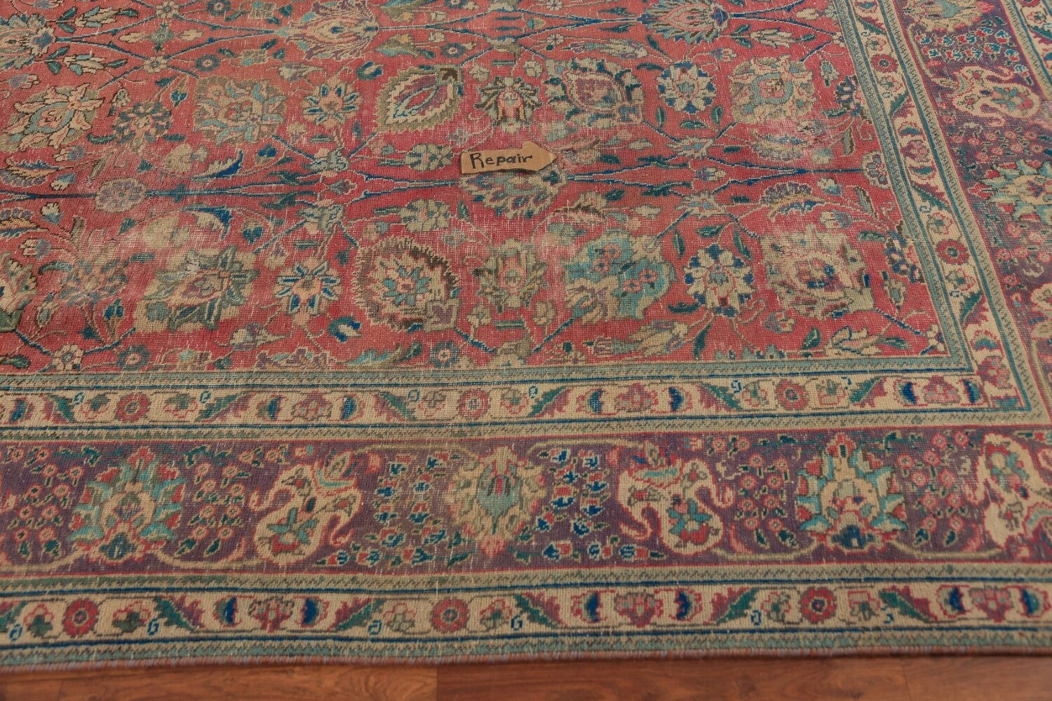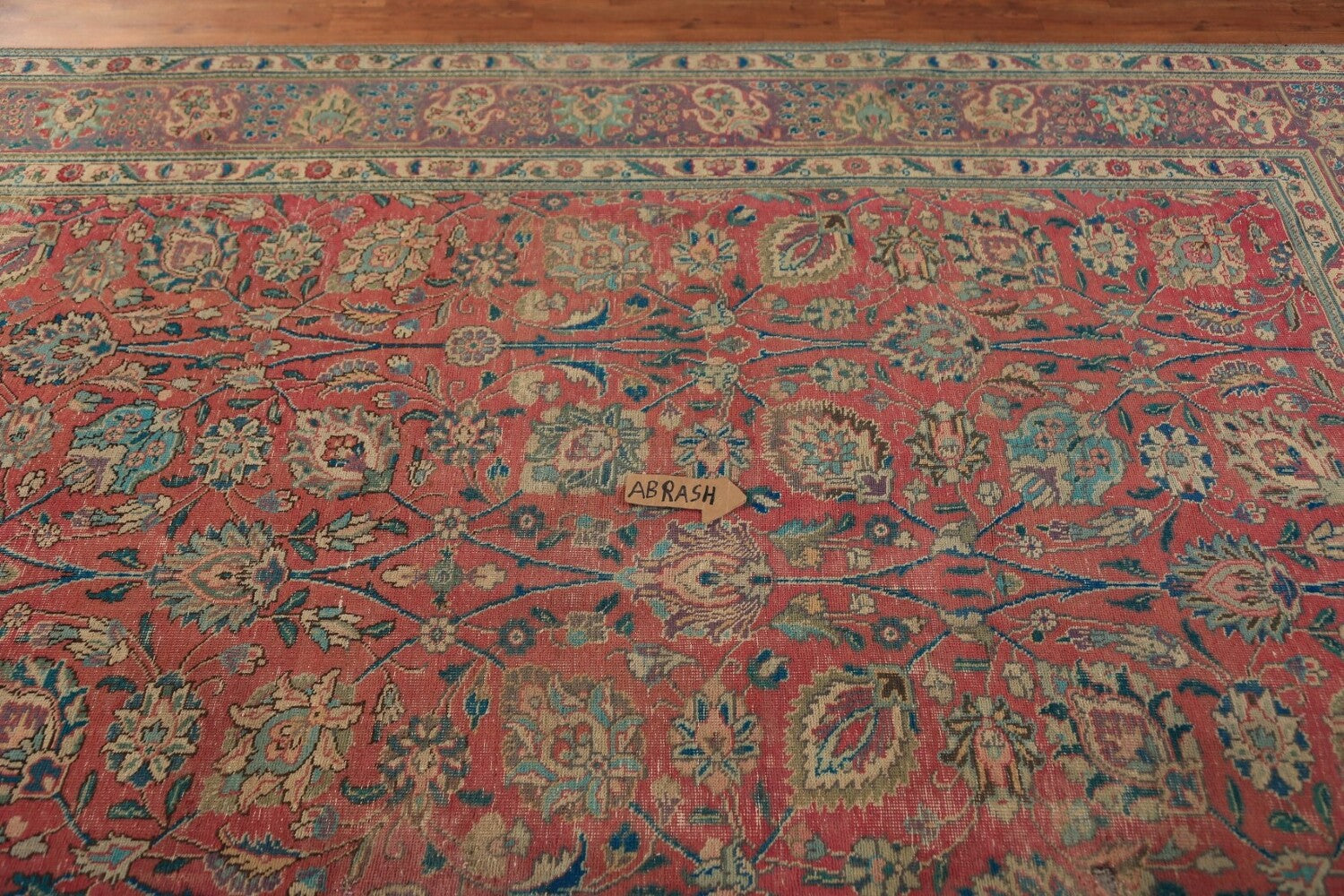 A Beautiful Genuine Persia ( Persia ) Tabriz rug is Hand Knotted by skillful weavers in Persia ( Persia ) with 100% Wool Material. This rug is in Good (Low Pile-Abrash-Repair) condition. dimensions are 11' 2'' X 7' 10'' in foot and 340 X 239 in centimeter. the primary color is Pink.