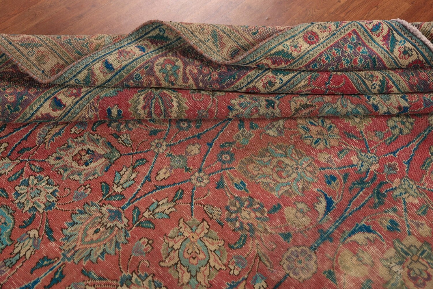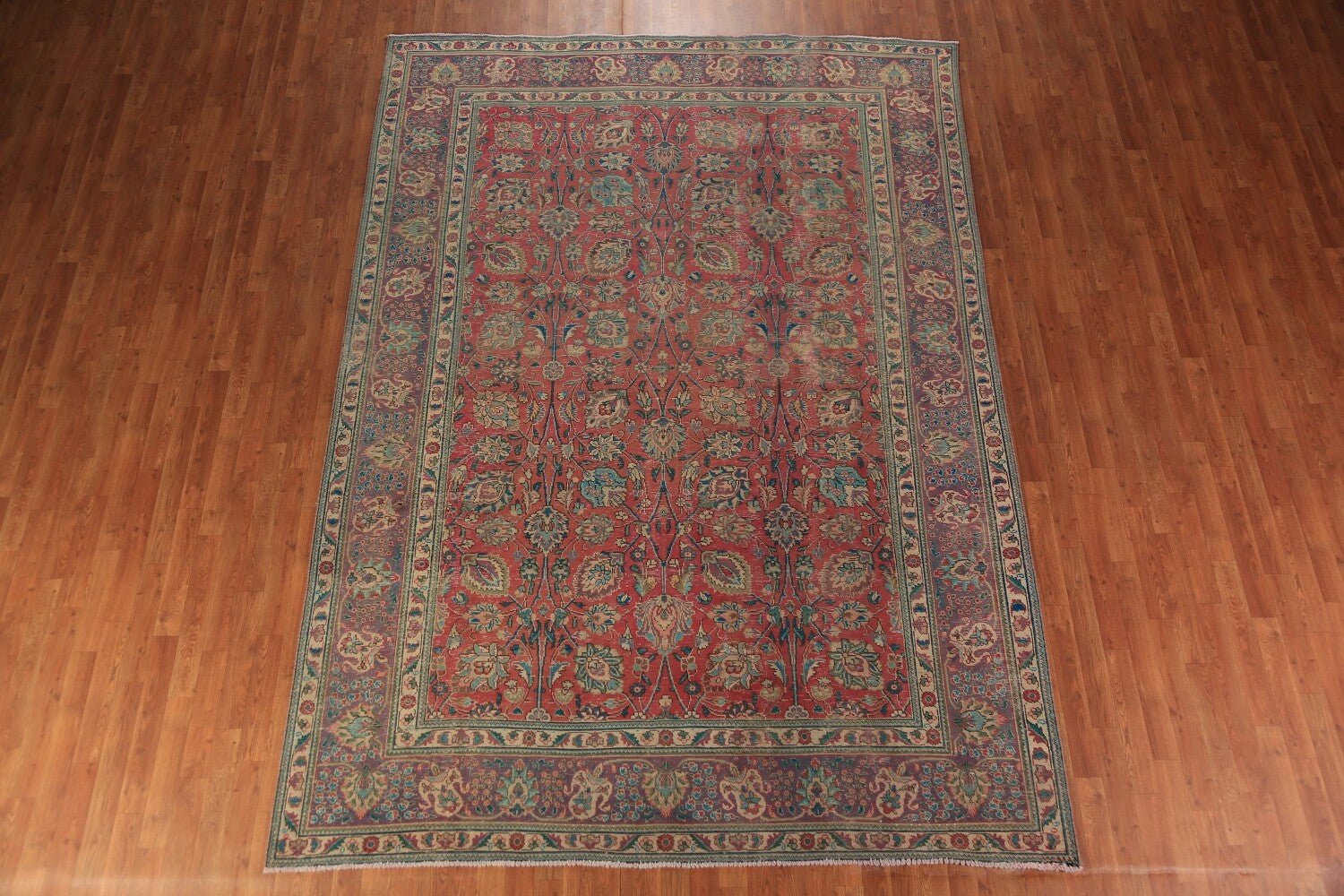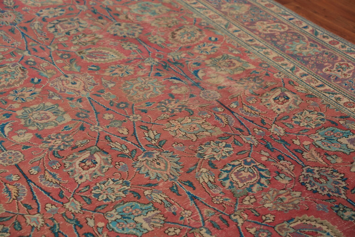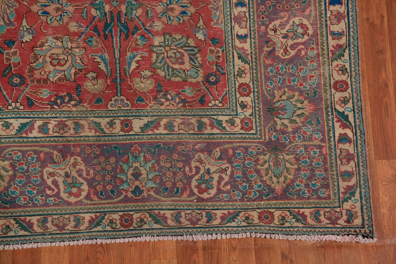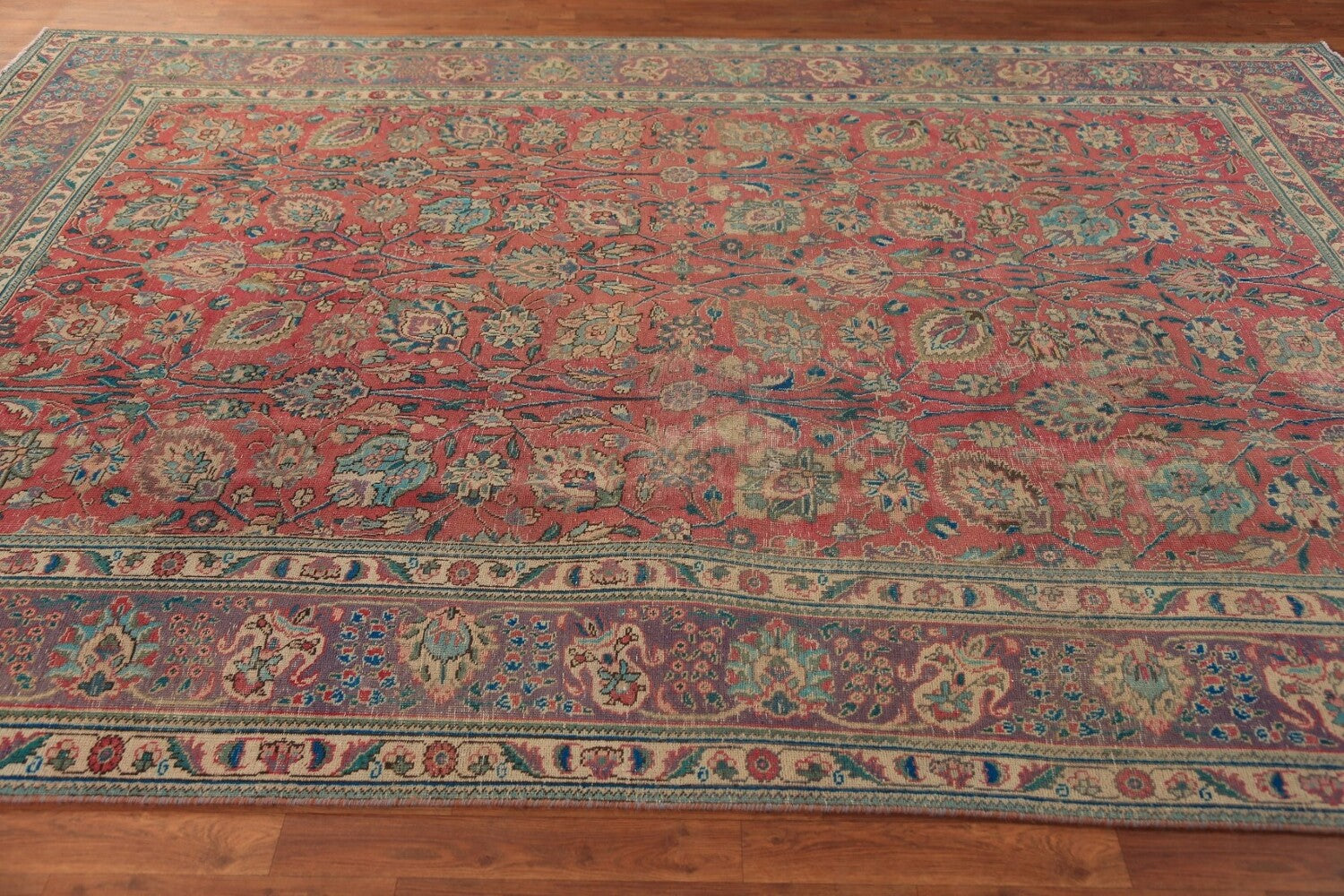 A Beautiful Genuine Persia ( Persia ) Tabriz rug is Hand Knotted by skillful weavers in Persia ( Persia ) with 100% Wool Material. This rug is in Good (Low Pile-Abrash-Repair) condition. dimensions are 11' 2'' X 7' 10'' in foot and 340 X 239 in centimeter. the primary color is Pink.