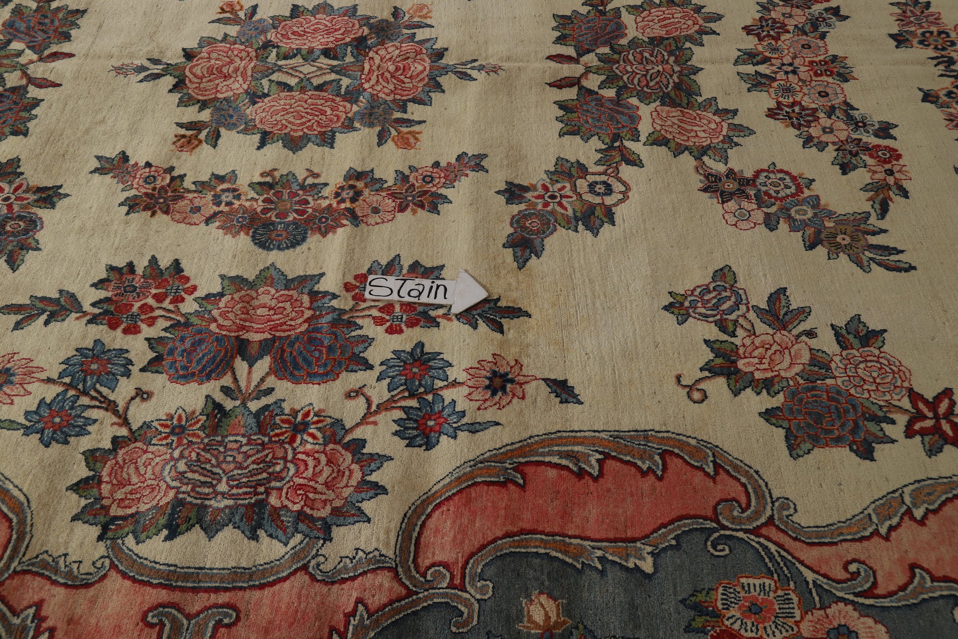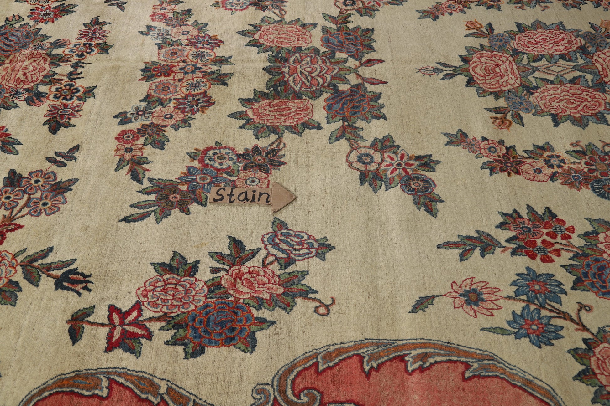 A Beautiful Genuine Persia ( Persia ) Tabriz rug is Hand Knotted by skillful weavers in Persia ( Persia ) with 100% Wool Material. This rug is in Very Good (Abrash-Stain) condition. dimensions are 17' 4'' X 10' 4'' in foot and 528 X 315 in centimeter. the primary color is Beige & Ivories.