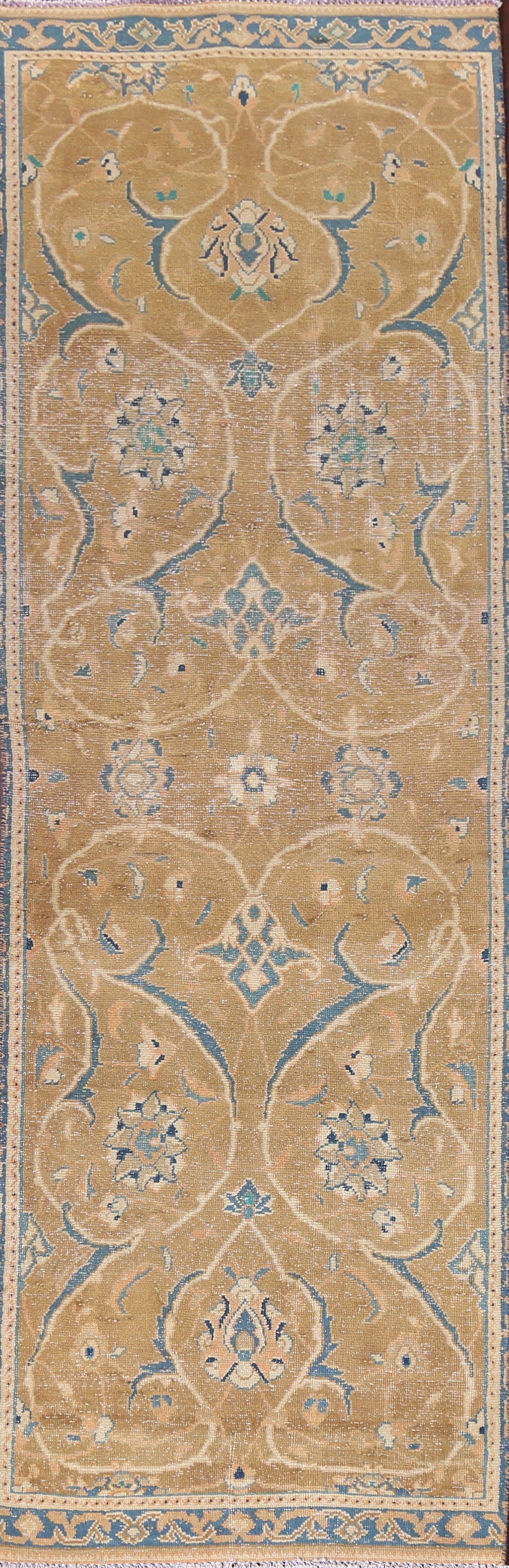 Vintage Floral Tabriz Persian Runner Rug 3x10