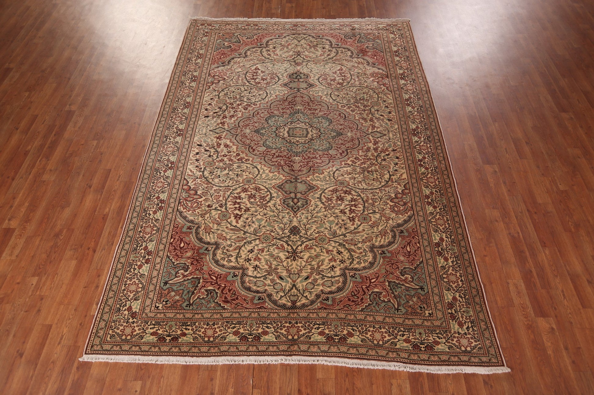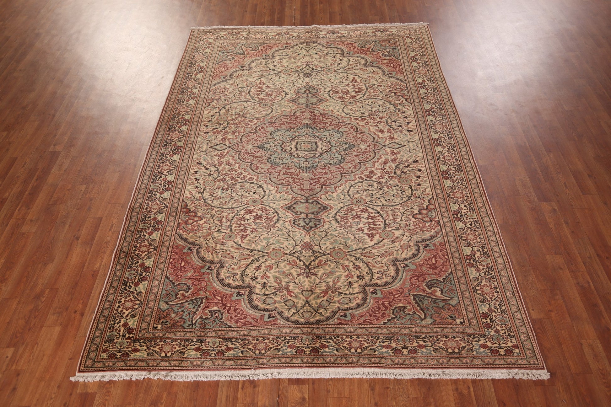 A Beautiful Genuine Turkey Anatolian rug is Hand Knotted by skillful weavers in Turkey with 100% Wool Material. This rug is in Excellent condition. dimensions are 9' 6'' X 6' 7'' in foot and 290 X 201 in centimeter. the primary color is Beige & Ivories.