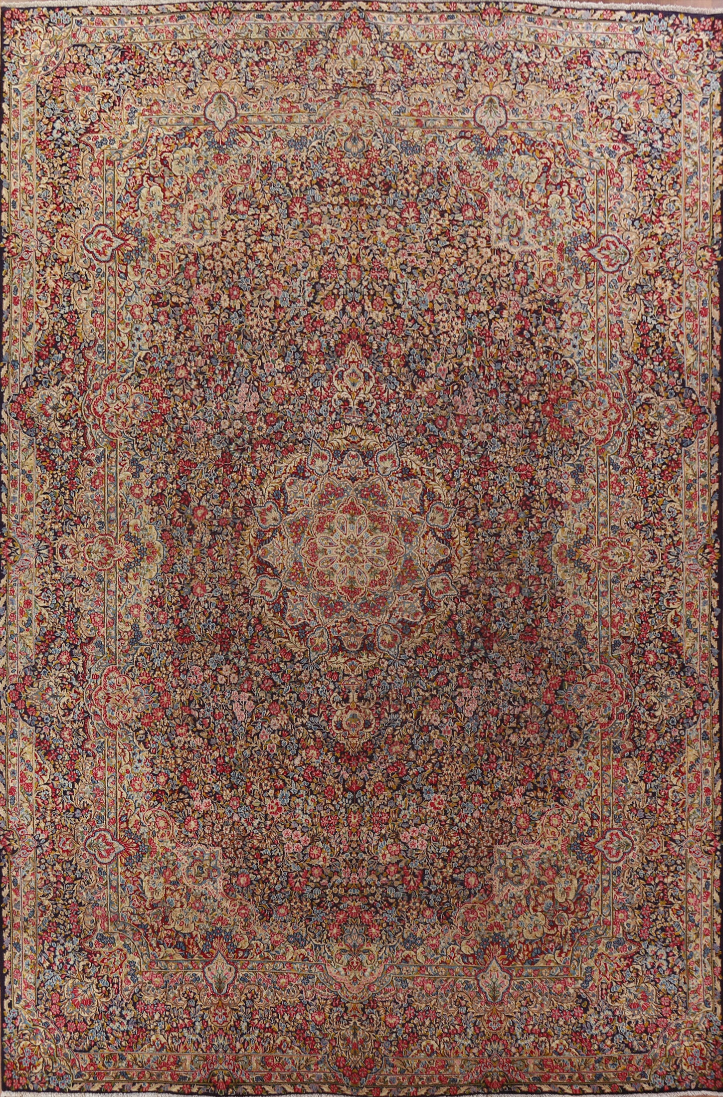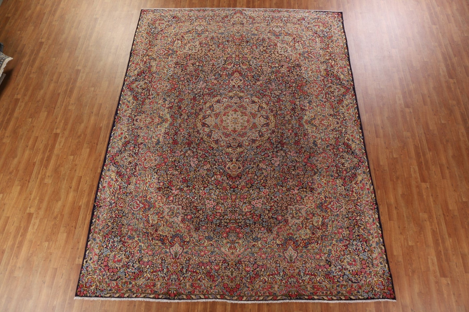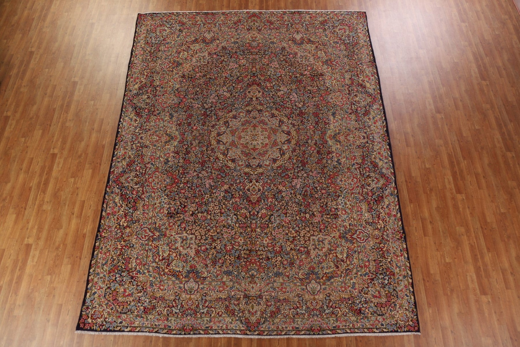 Vintage Floral Wool Kerman Persian Area Rug 10x13