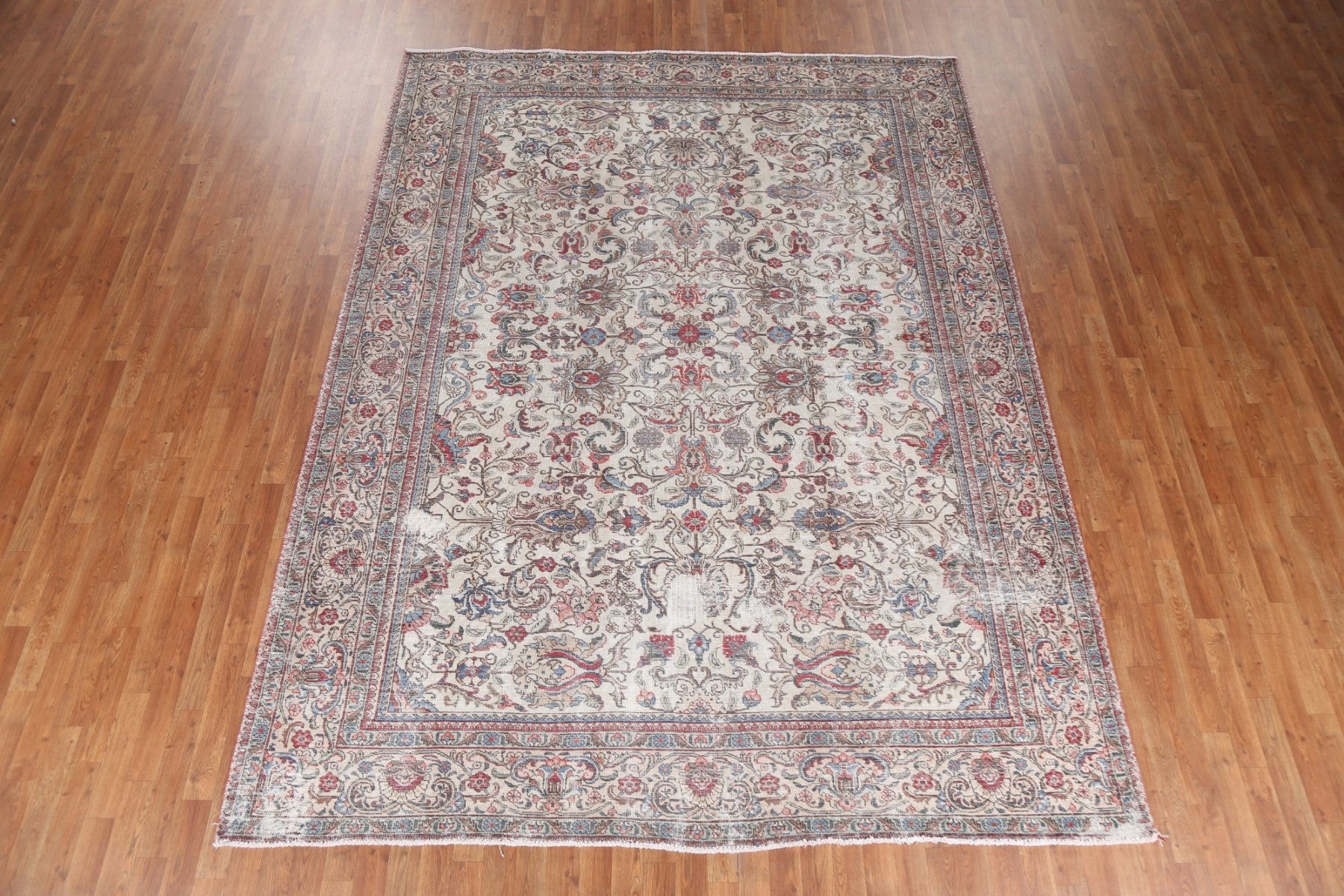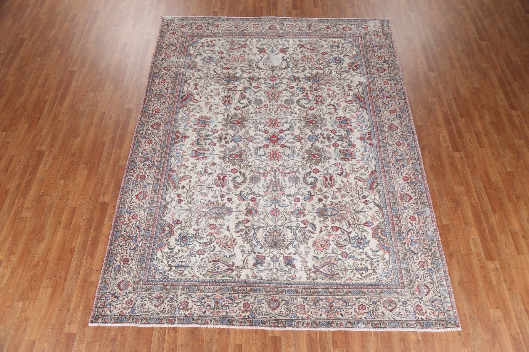 Vintage Floral Wool Tabriz Persian Area Rug 8x11