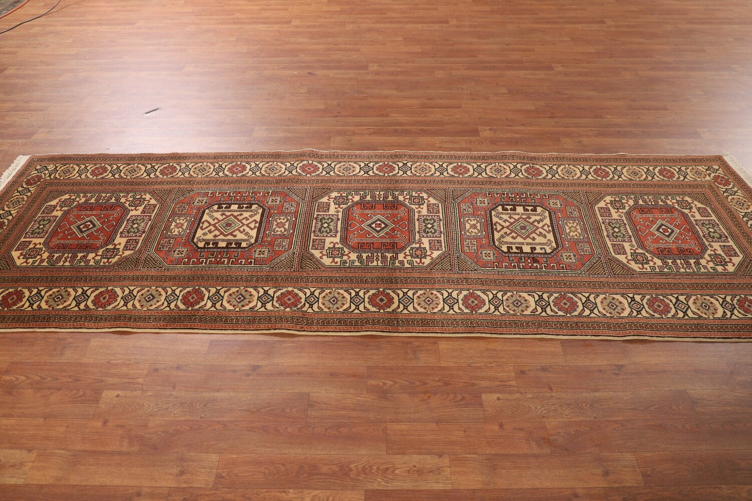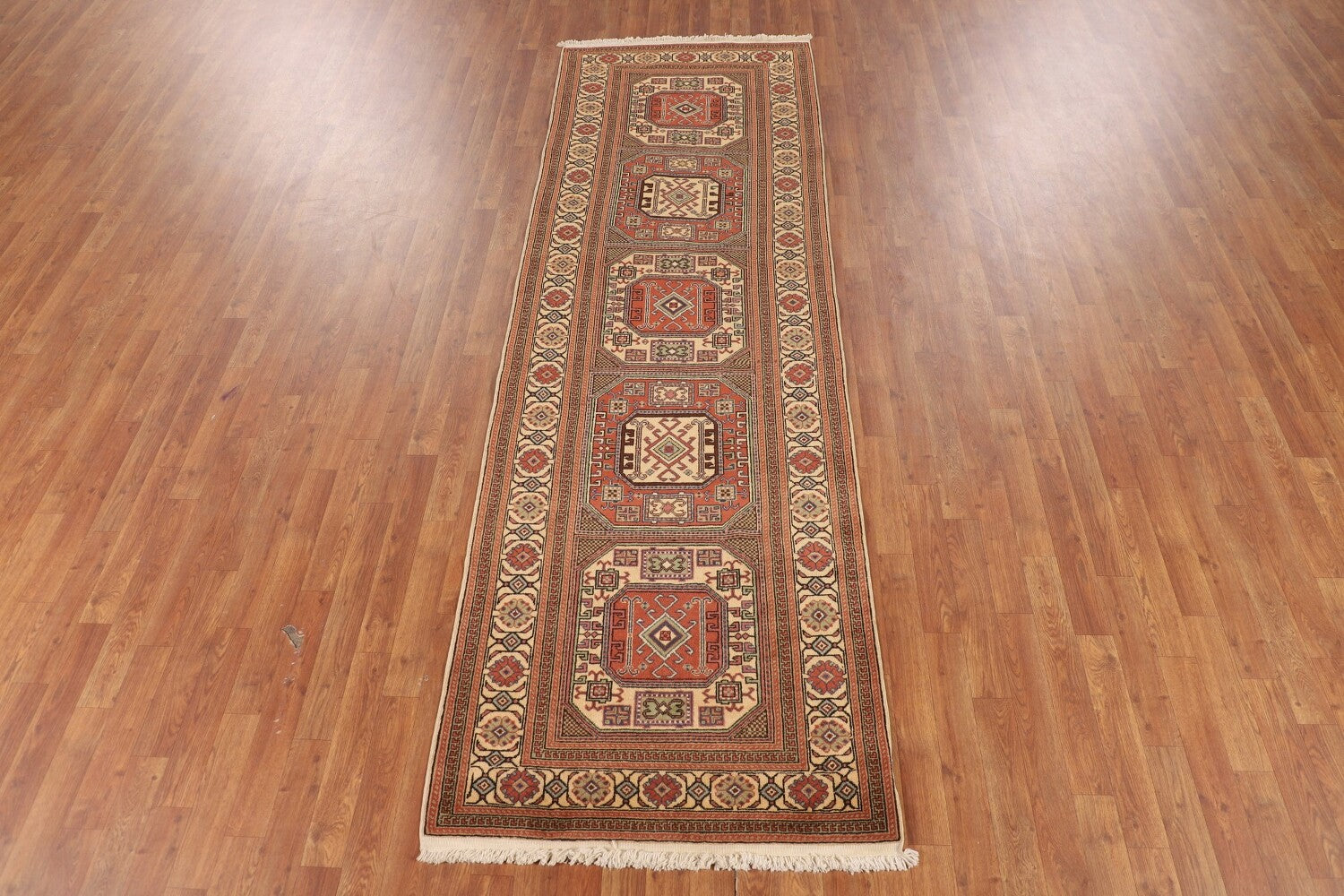 A Beautiful Genuine Turkey Anatolian rug is Hand Knotted by skillful weavers in Turkey with 100% Wool Material. This rug is in Excellent condition. dimensions are 9' 10'' X 3' 1'' in foot and 300 X 94 in centimeter. the primary color is Beige & Ivories.