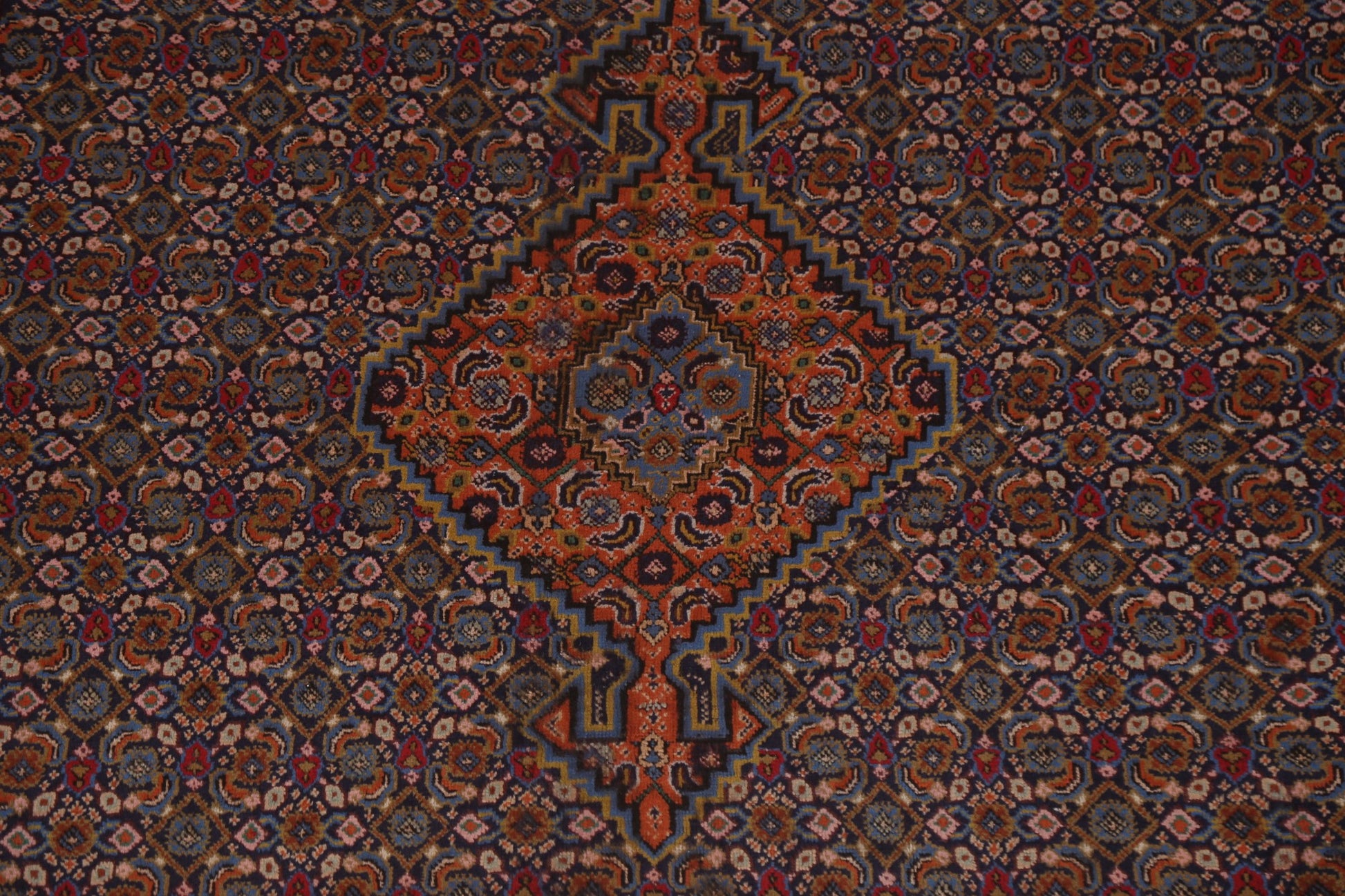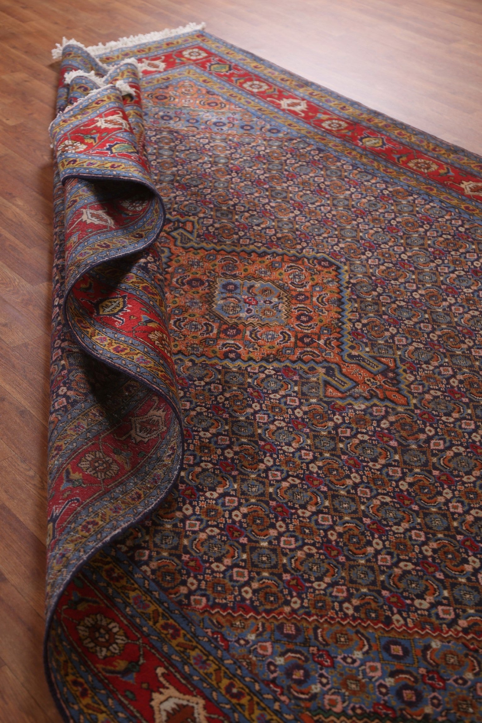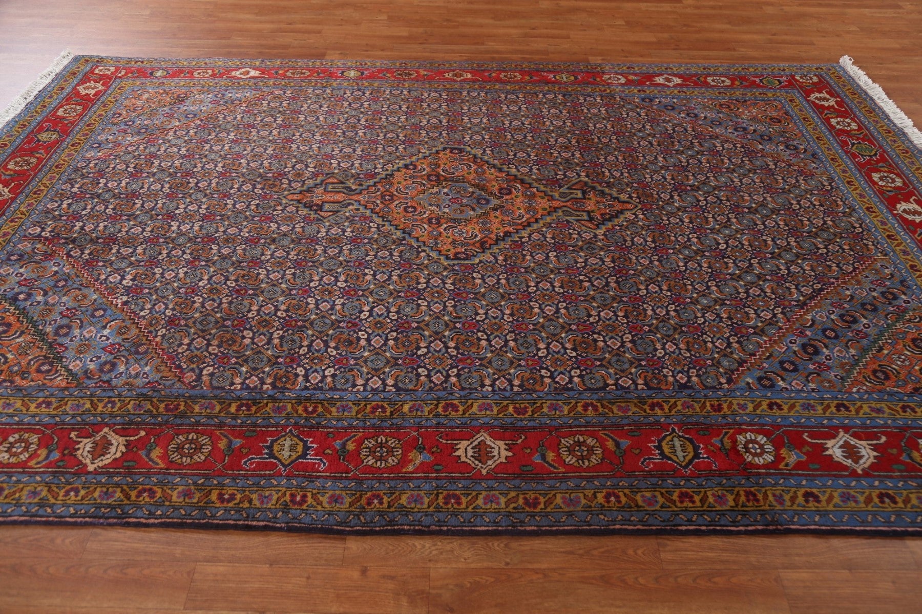 A Beautiful Genuine Persia ( Persia ) Ardebil rug is Hand Knotted by skillful weavers in Persia ( Persia ) with 100% Wool Material. This rug is in Very Good condition. dimensions are 9' 9'' X 6' 4'' in foot and 297 X 193 in centimeter. the primary color is Navy Blue & Blues.
