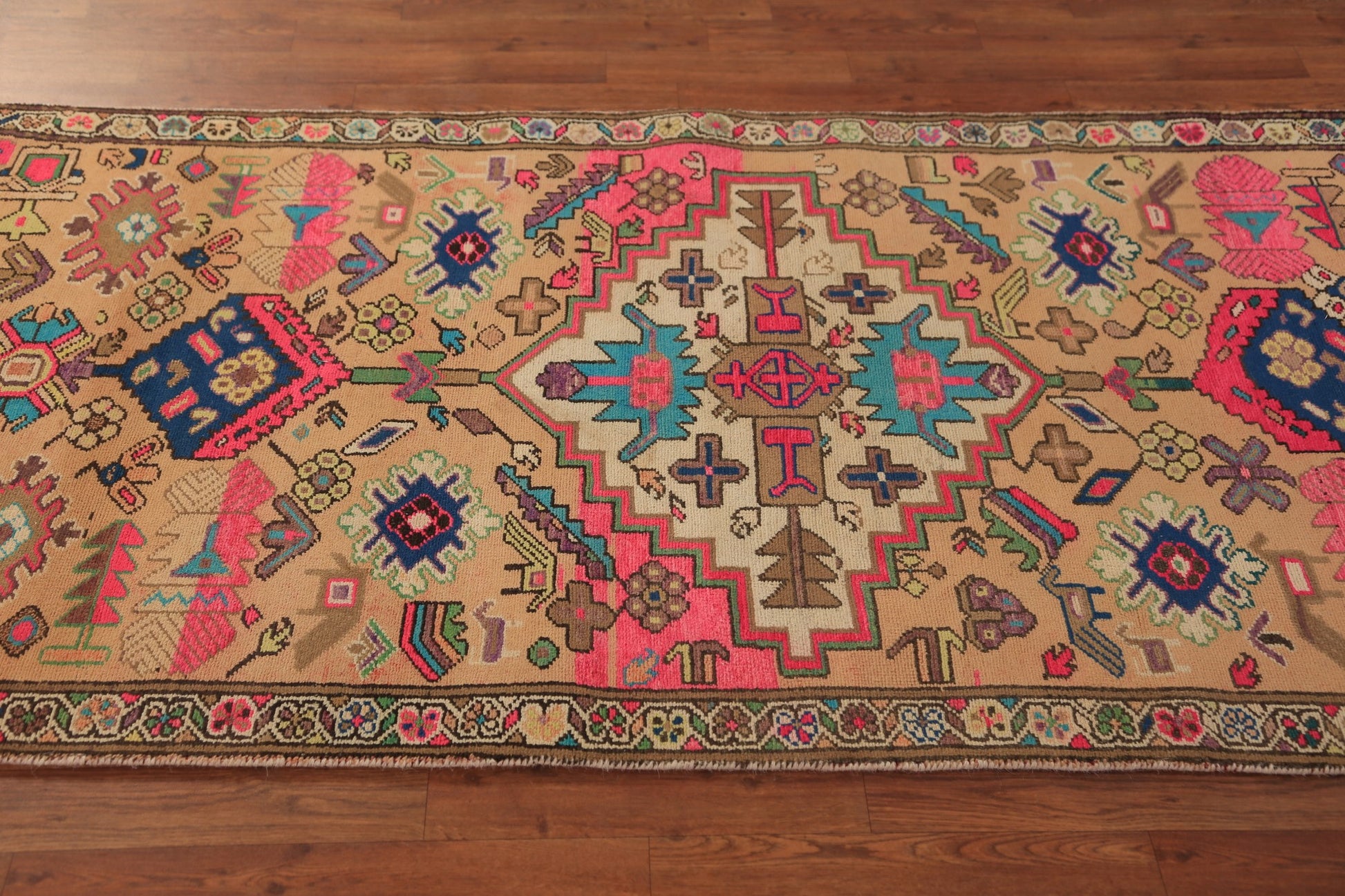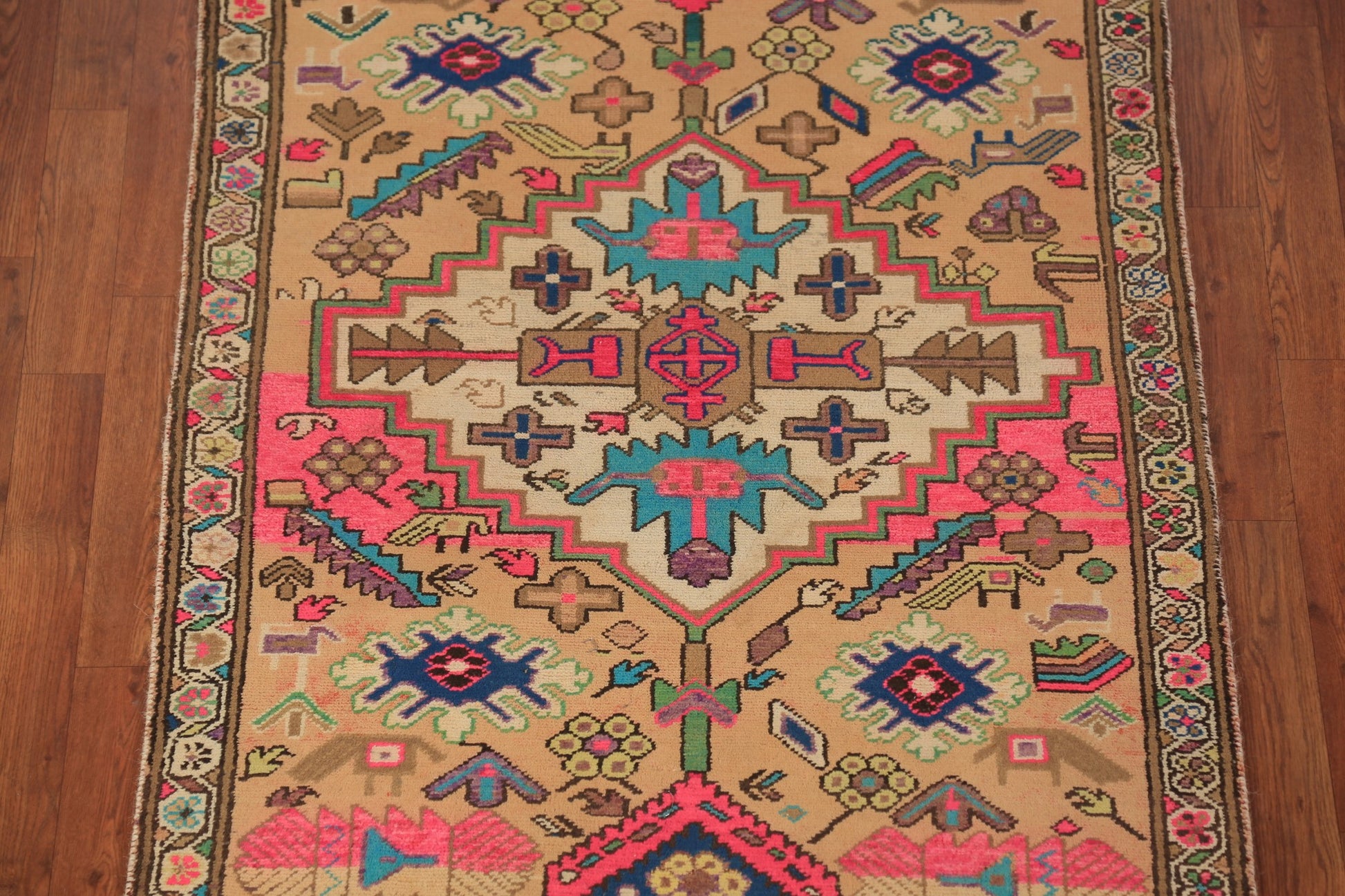 Vintage Geometric Ardebil Persian Runner Rug 4x10