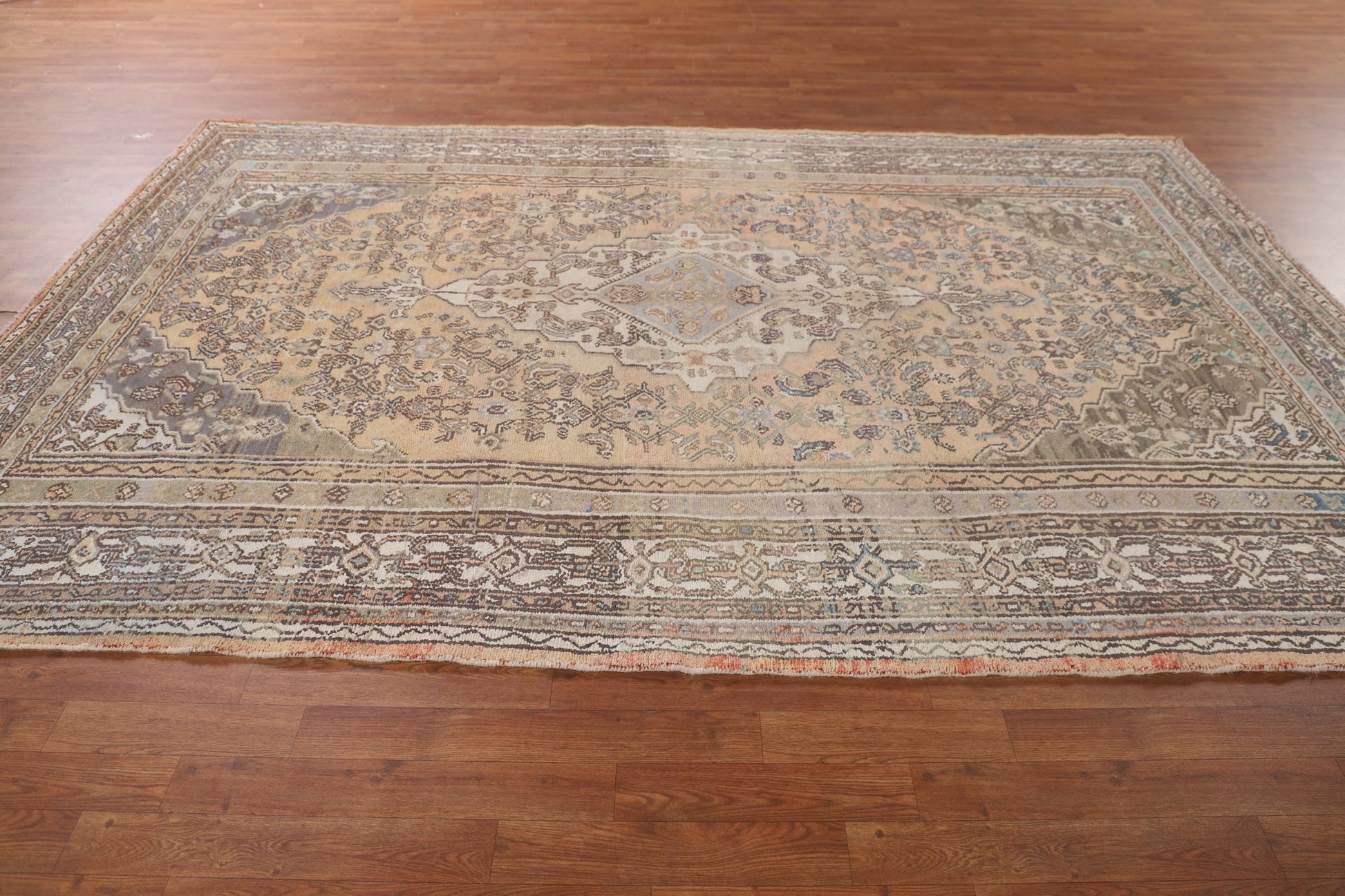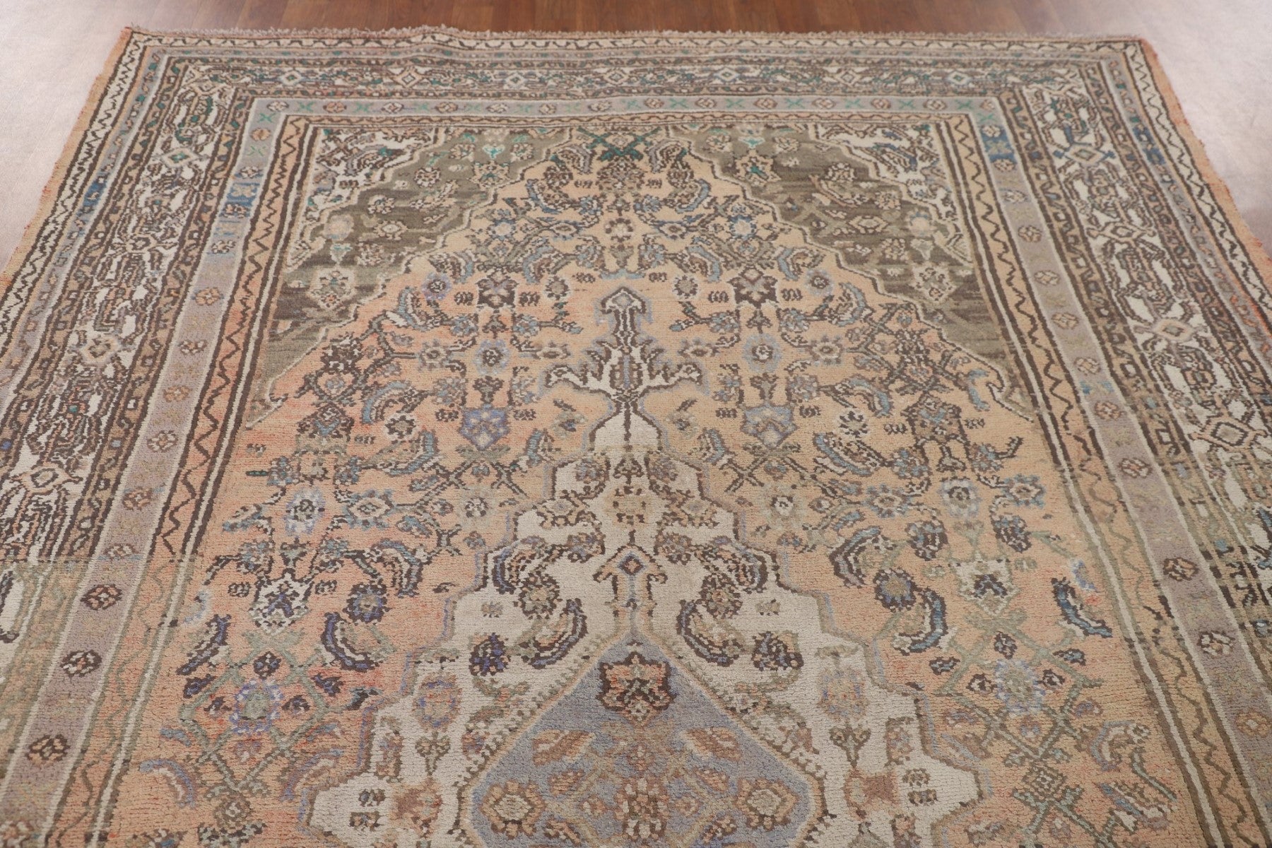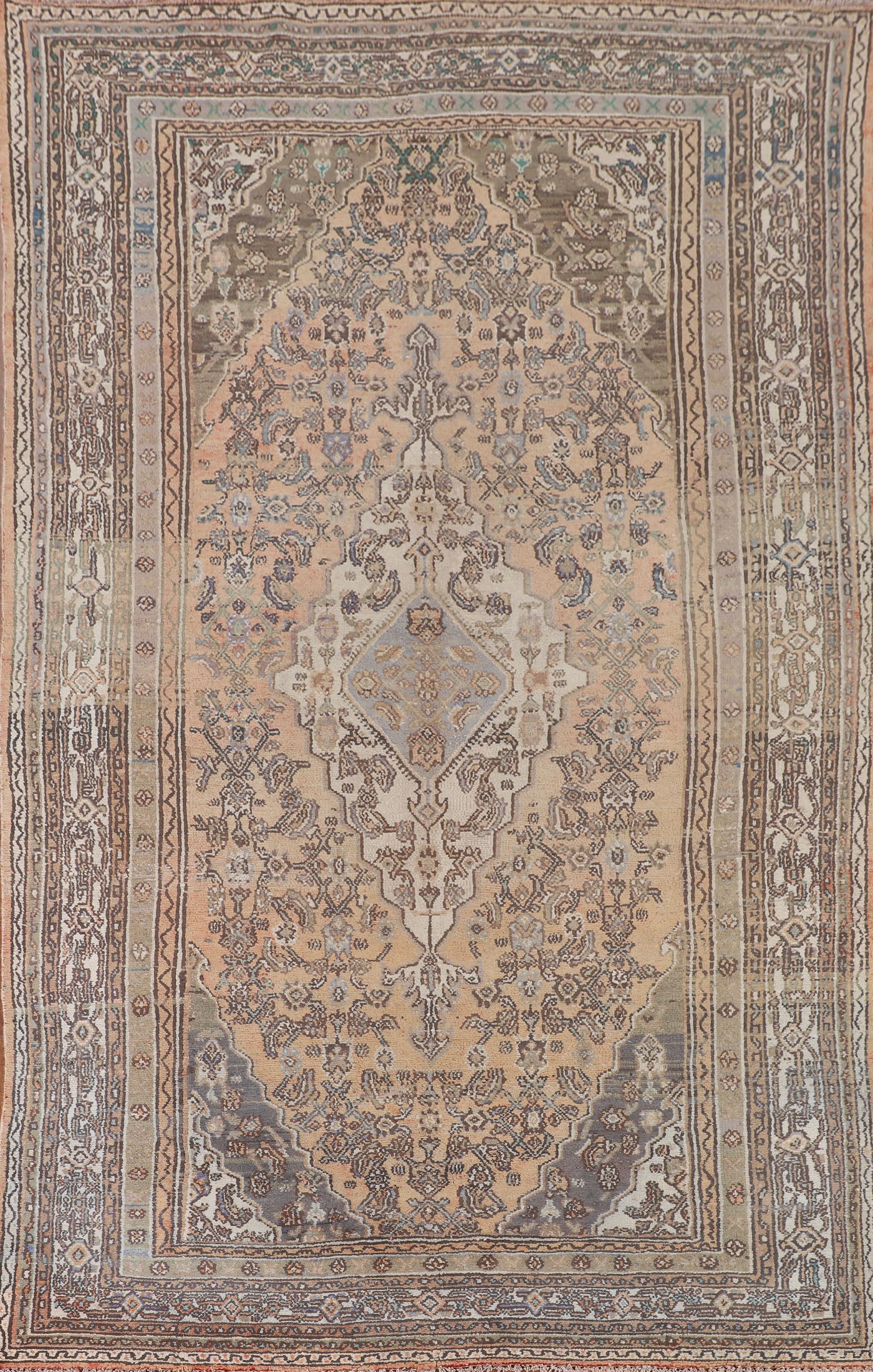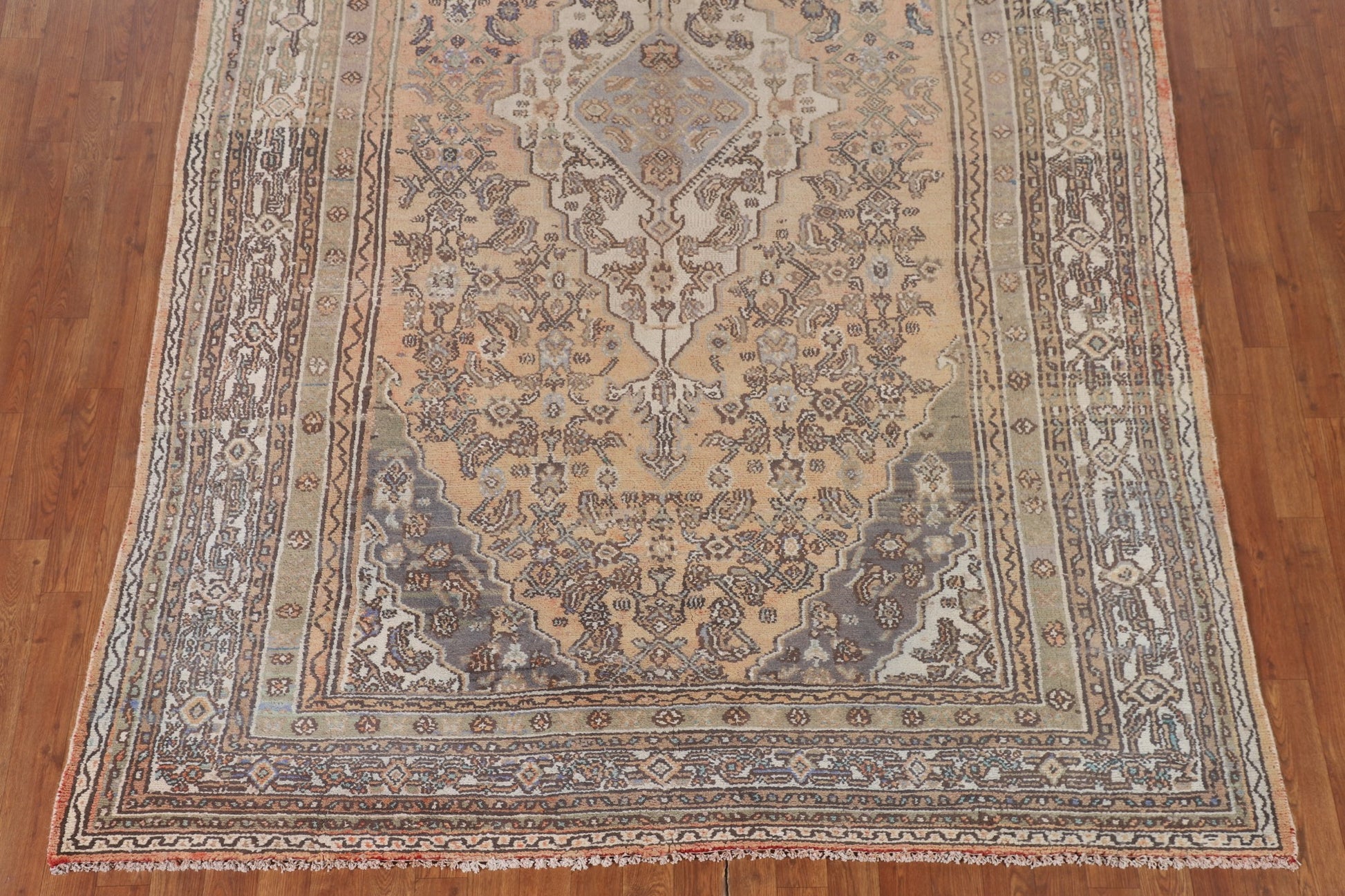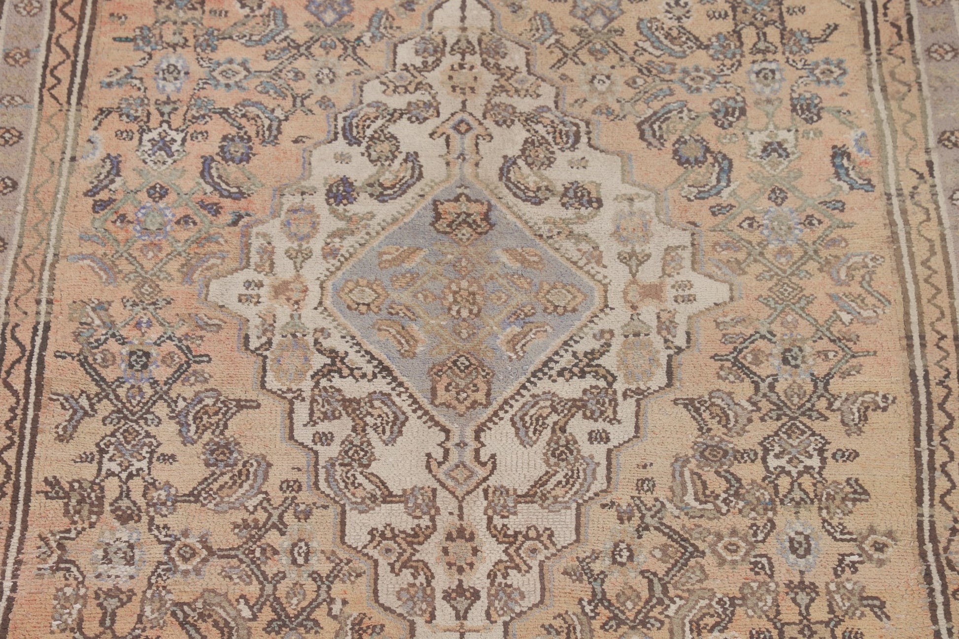 A Beautiful Genuine Persia ( Persia ) Hamedan rug is Hand Knotted by skillful weavers in Persia ( Persia ) with 100% Wool Material. This rug is in Very Good (Evenly Low Pile-Abrash) condition. dimensions are 10' 0'' X 6' 7'' in foot and 305 X 201 in centimeter. the primary color is Peach.