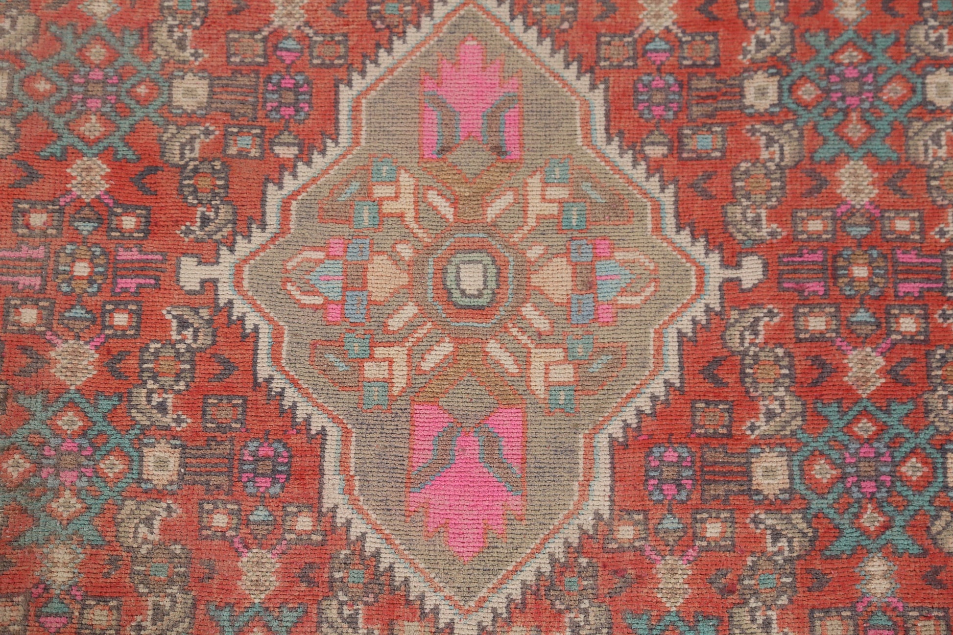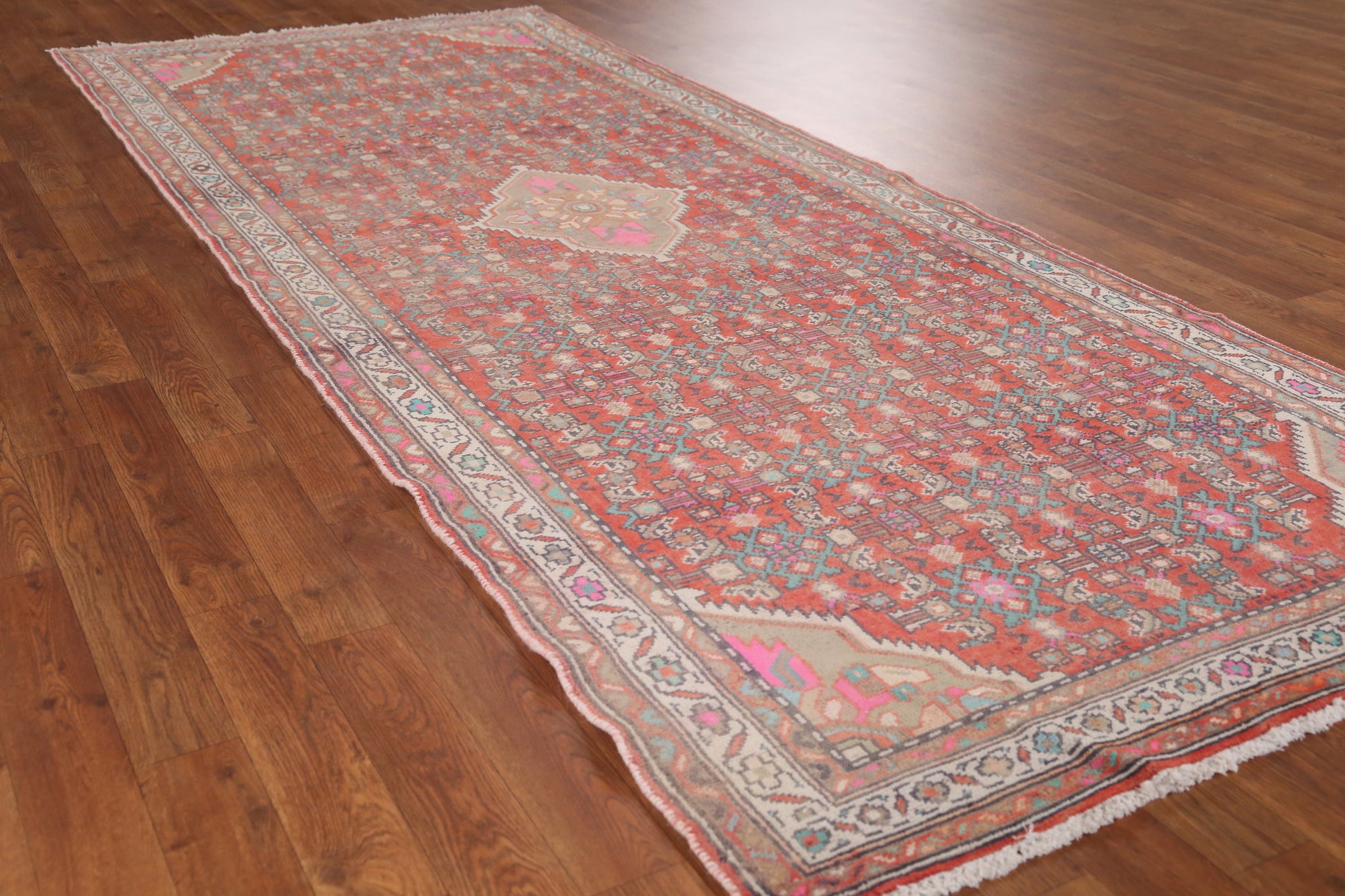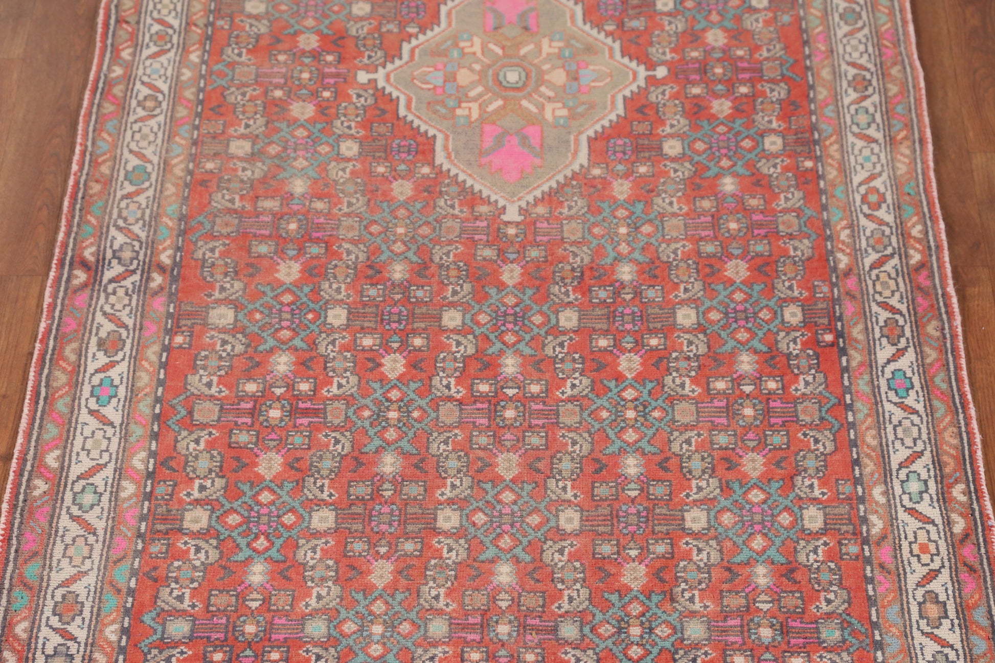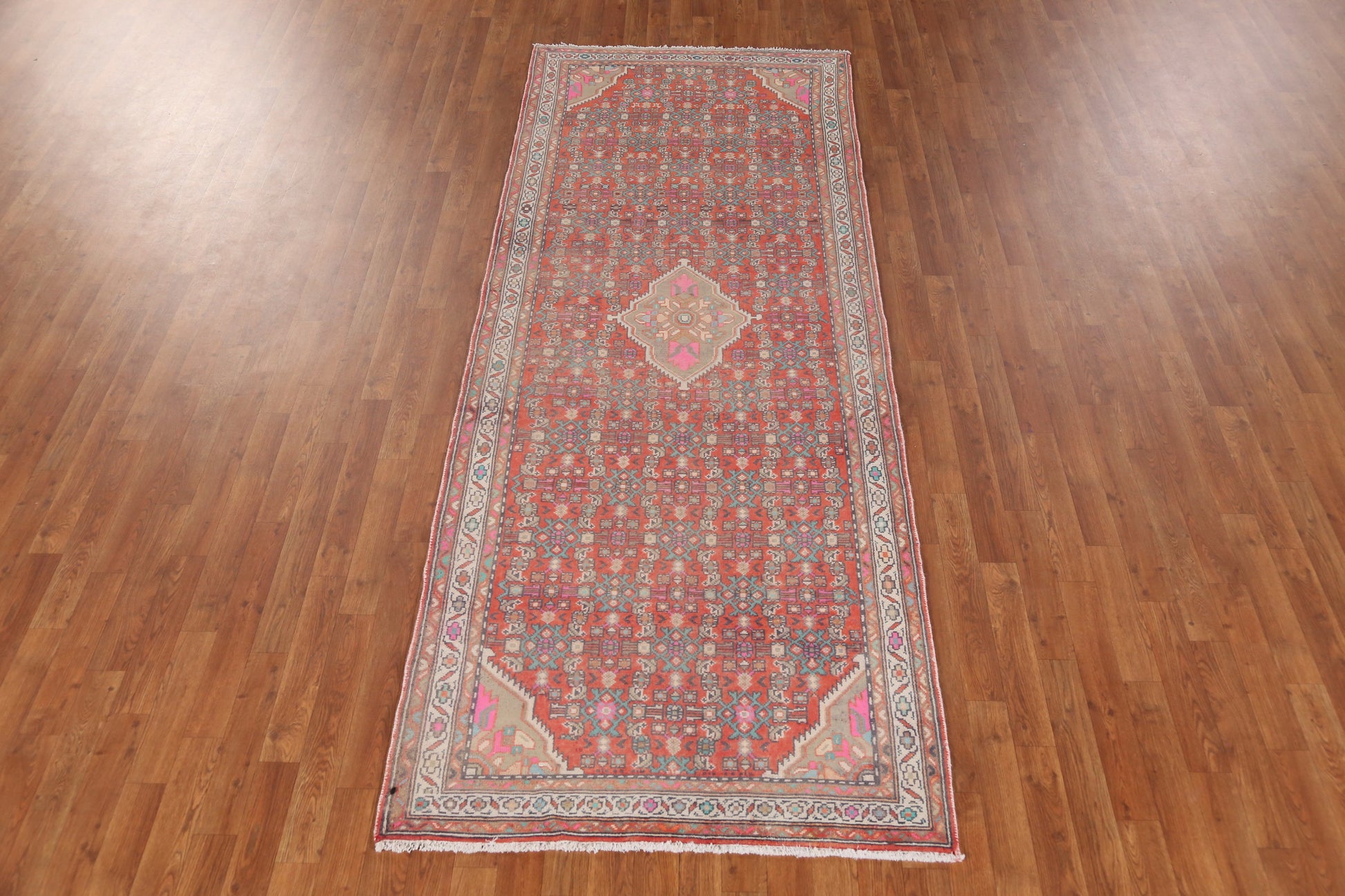 Vintage Geometric Hamedan Persian Runner Rug 4x10