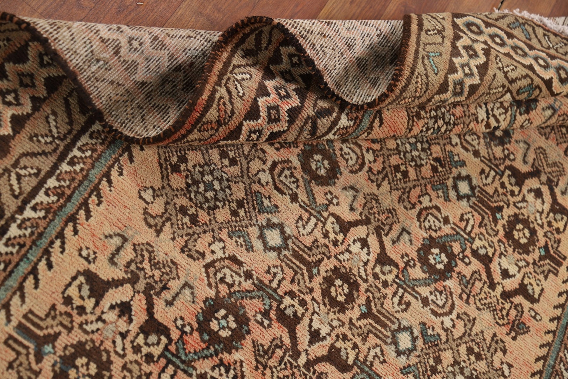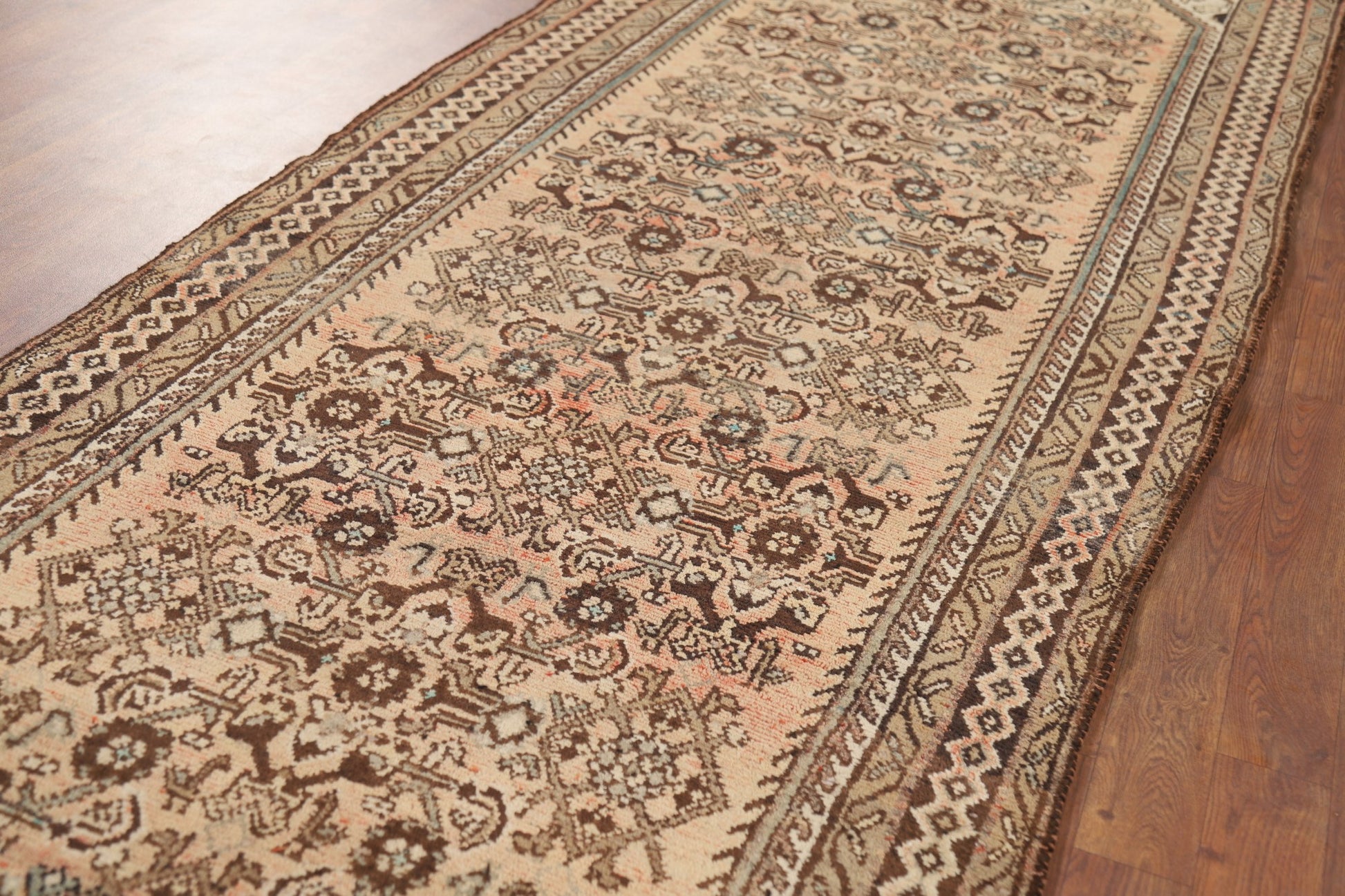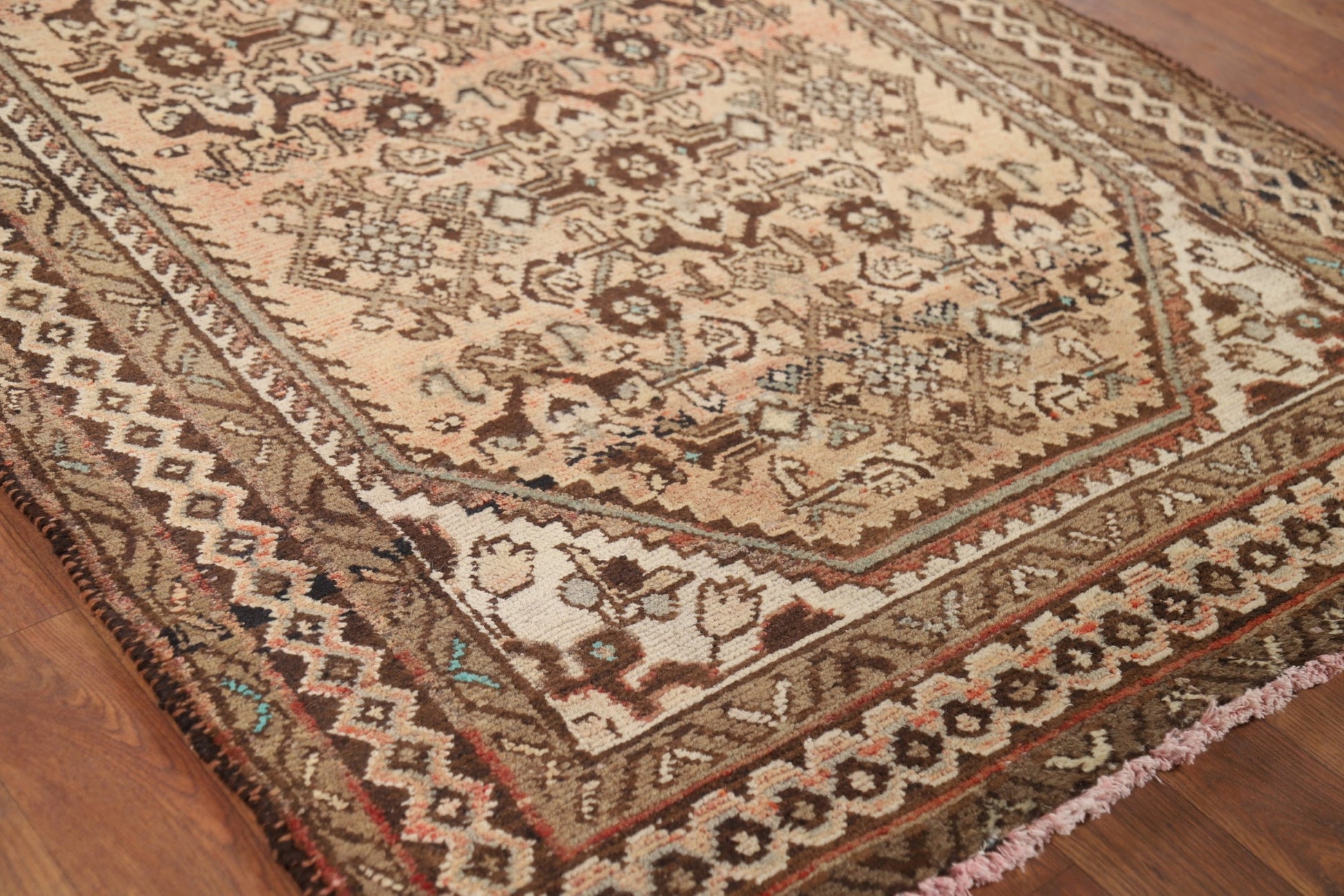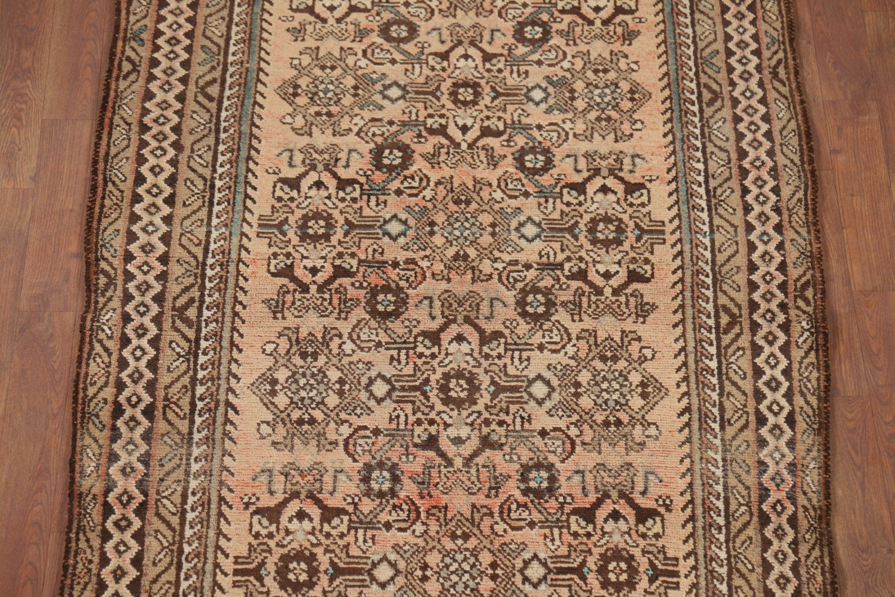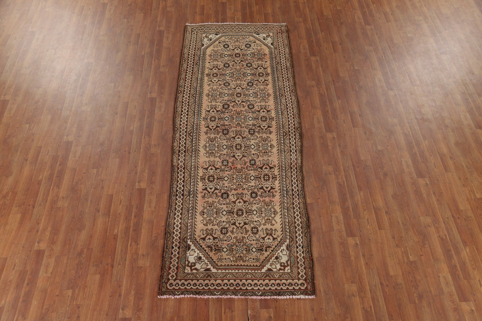 A Beautiful Genuine Persia ( Persia ) Hamedan rug is Hand Knotted by skillful weavers in Persia ( Persia ) with 100% Wool Material. This rug is in Very Good (Abrash) condition. dimensions are 9' 9'' X 3' 8'' in foot and 297 X 112 in centimeter. the primary color is Peach.