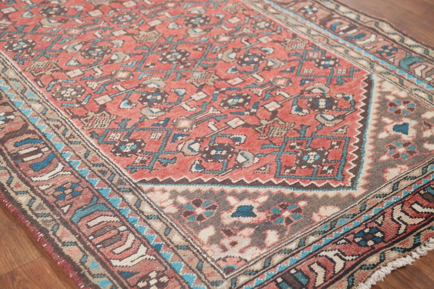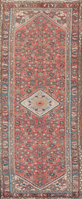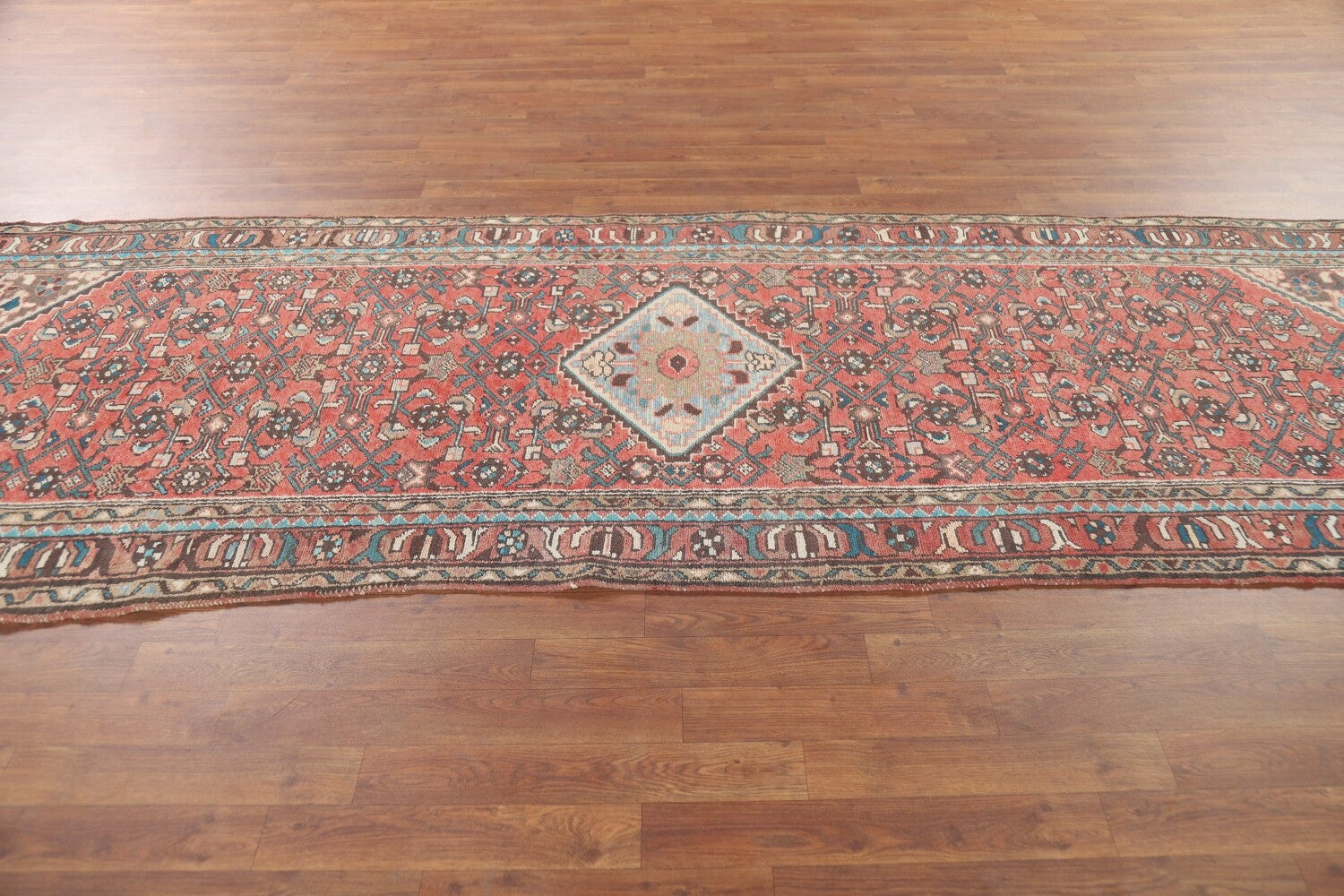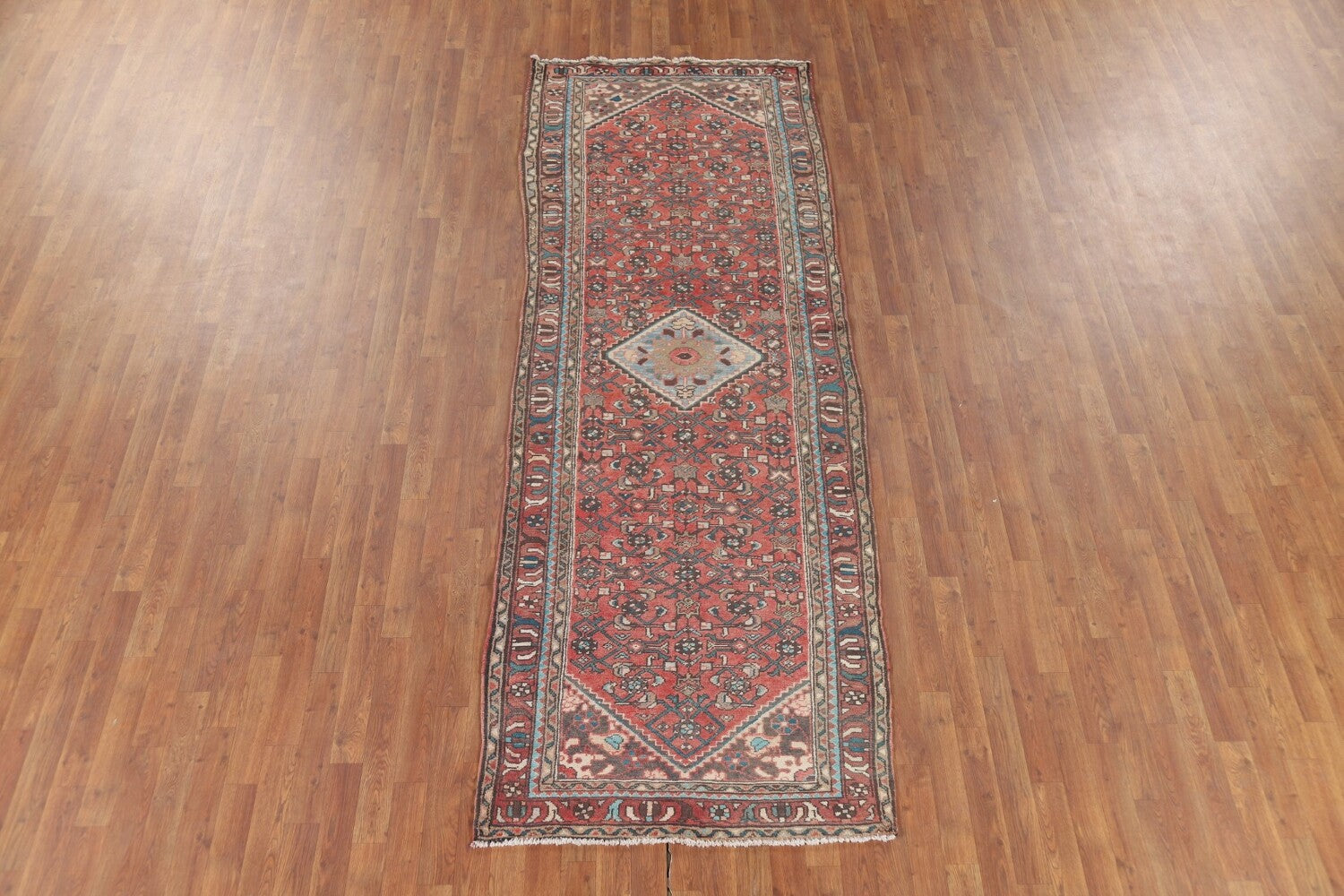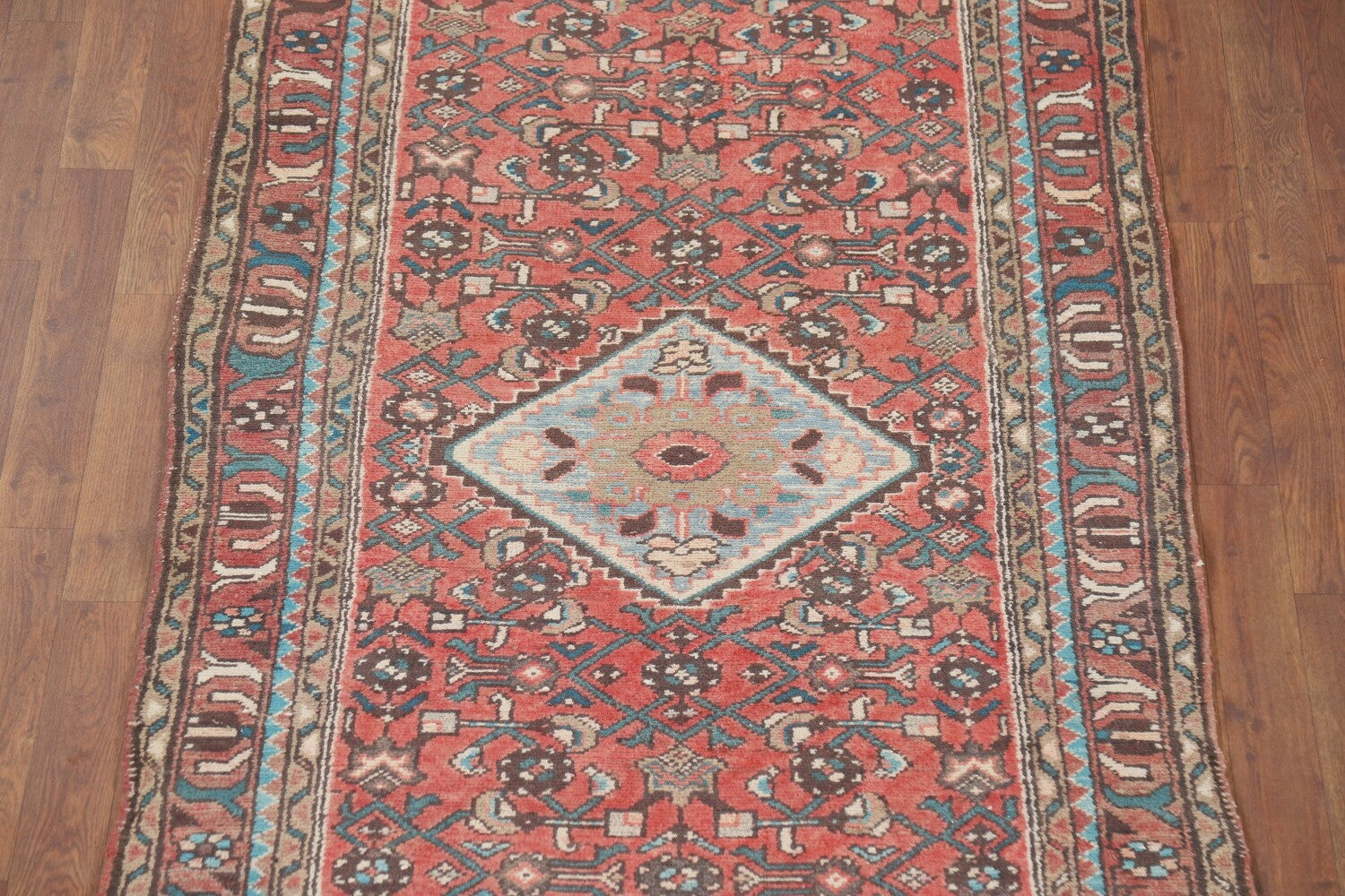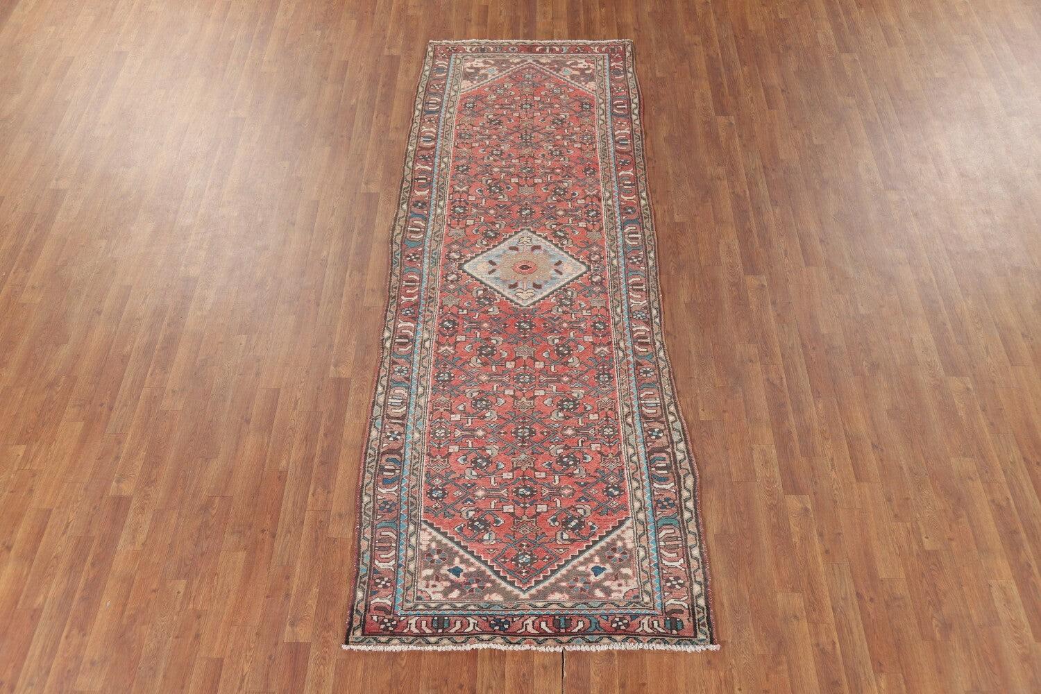 Vintage Geometric Hamedan Persian Runner Rug 4x10