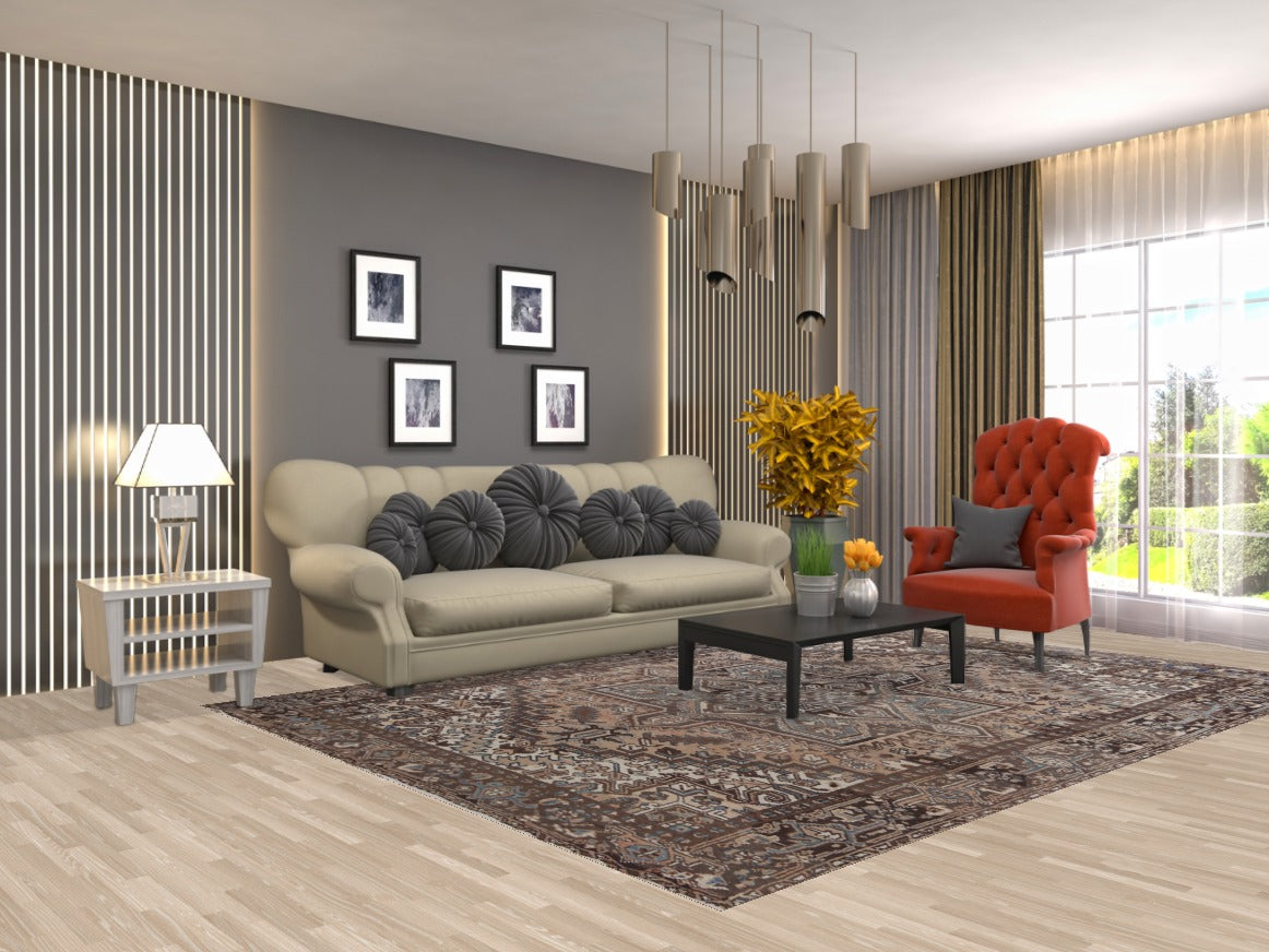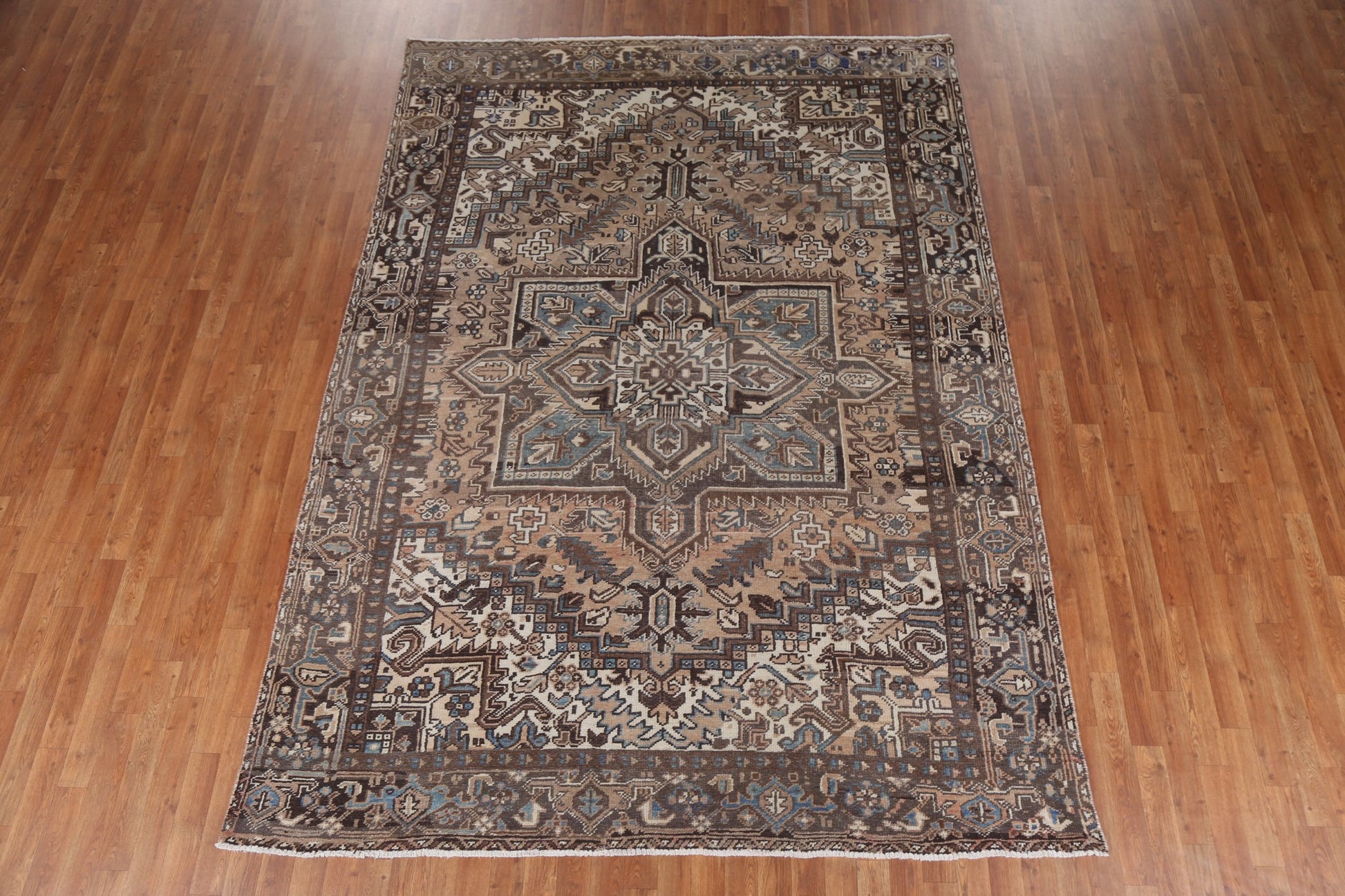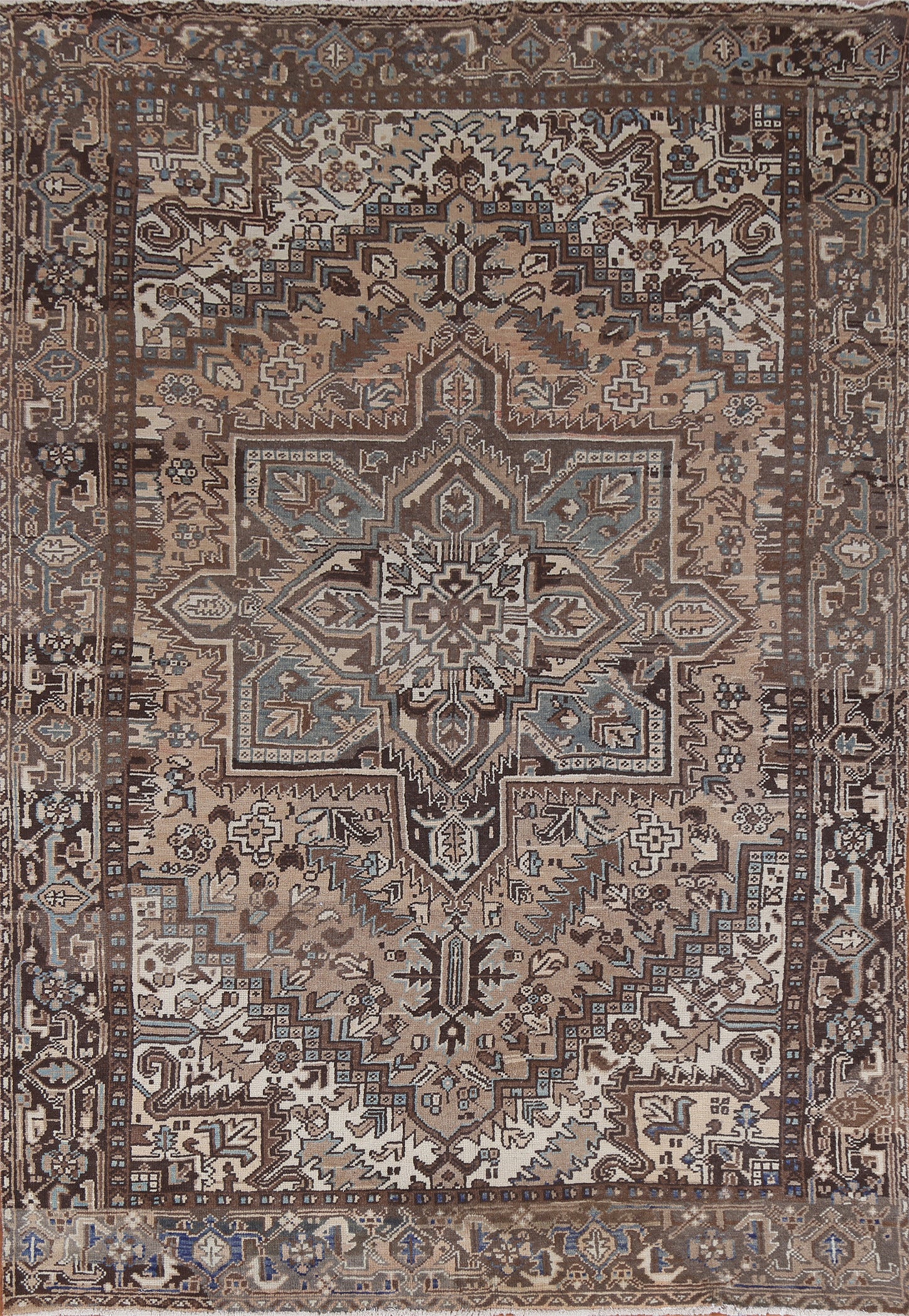 Vintage Geometric Heriz Persian Area Rug 7x10