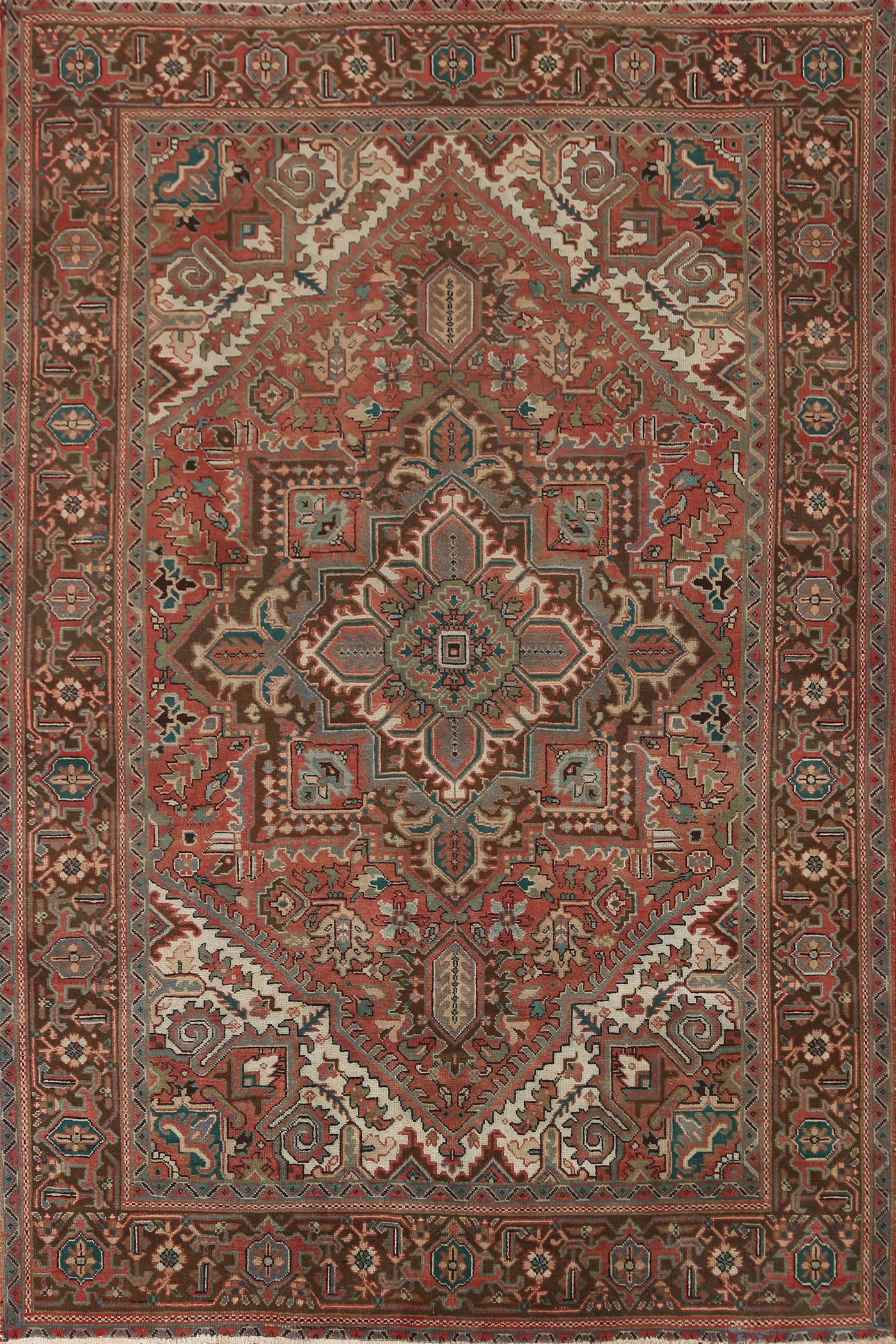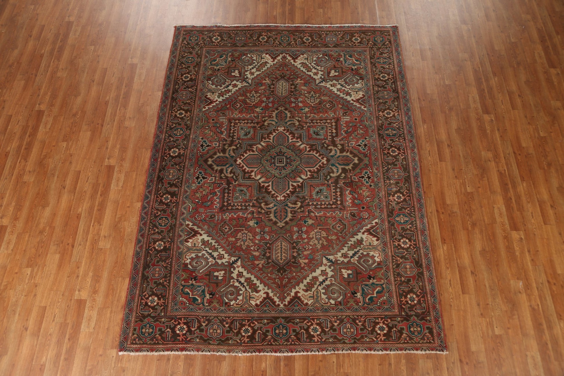 Vintage Geometric Heriz Persian Area Rug 7x9