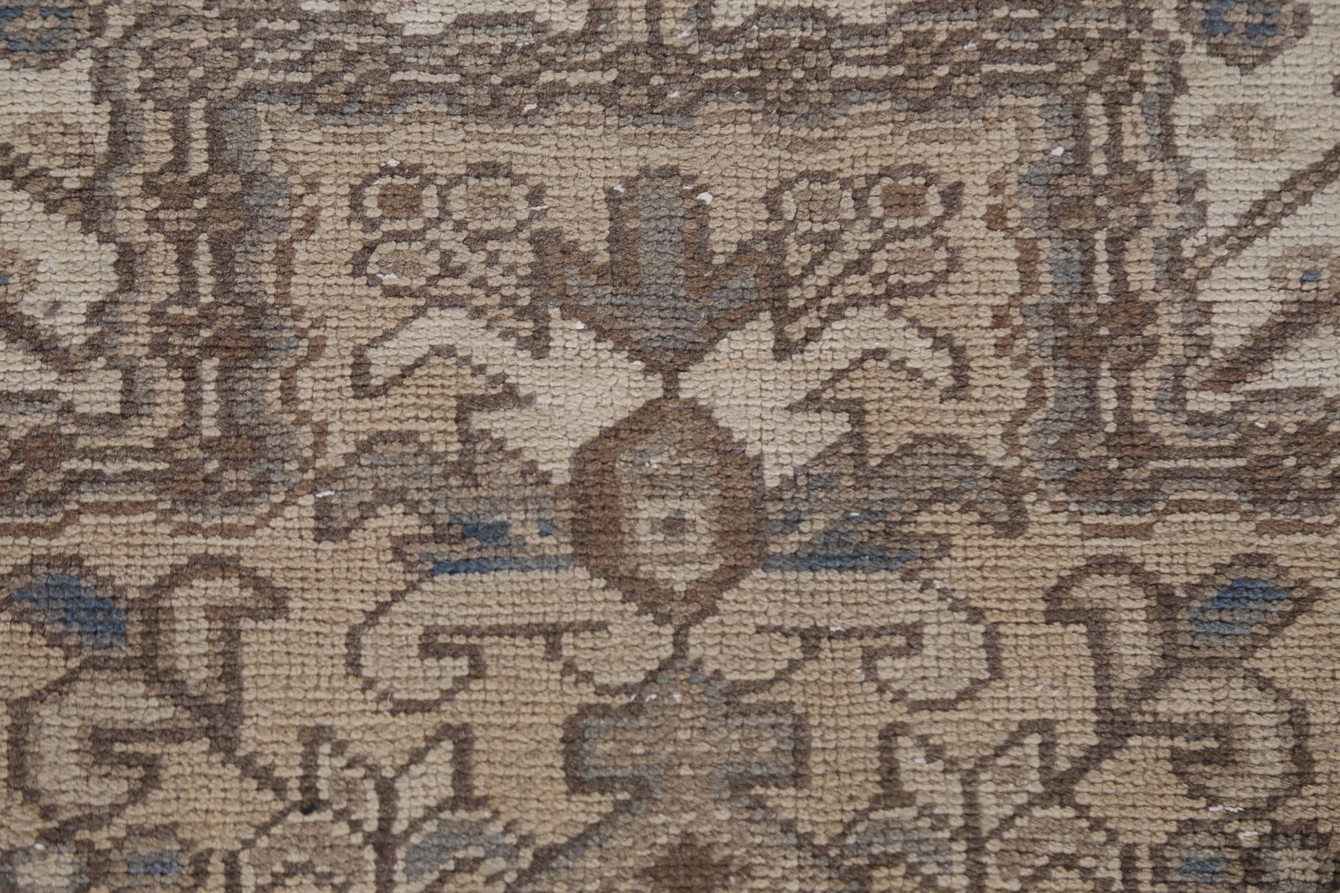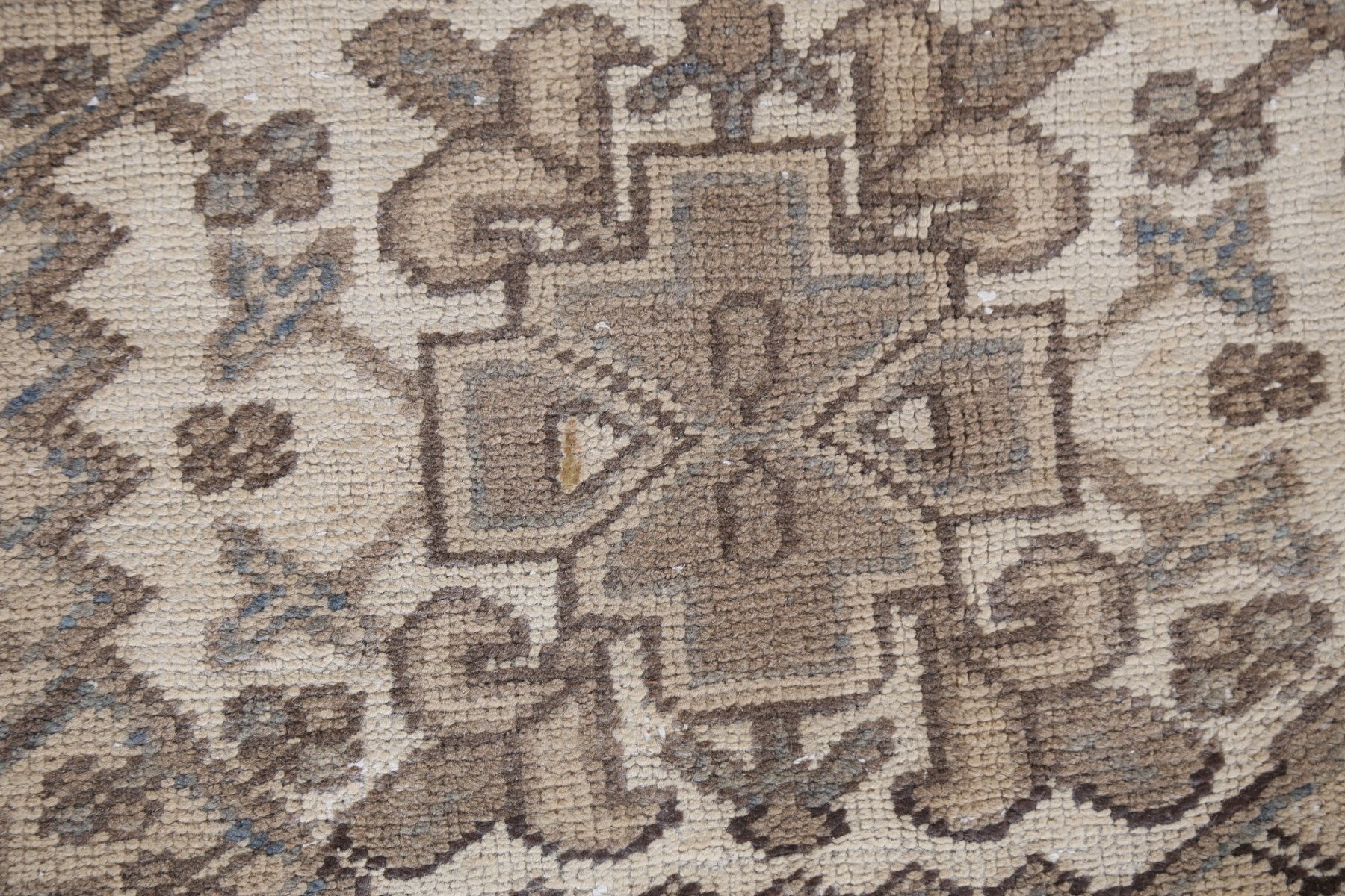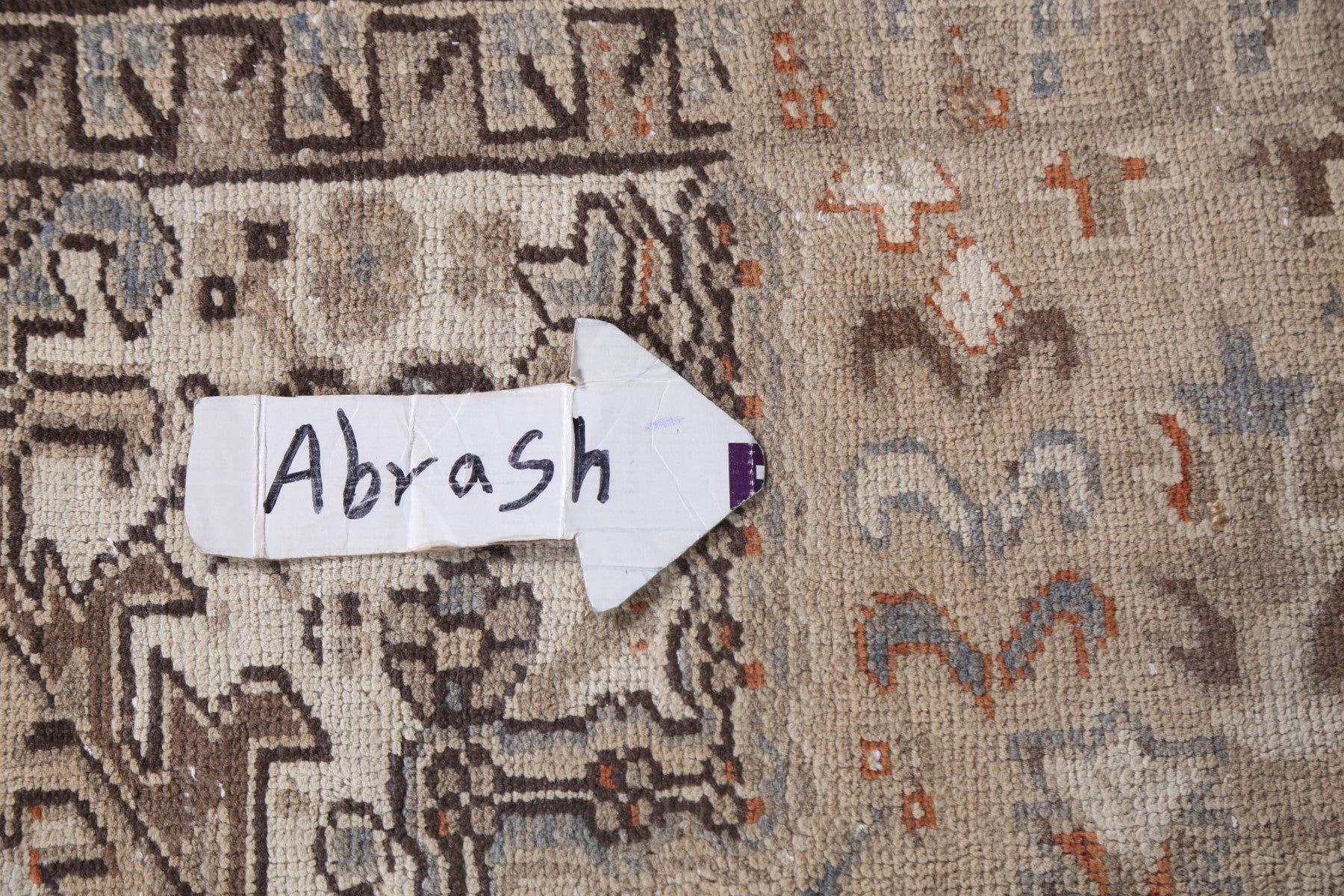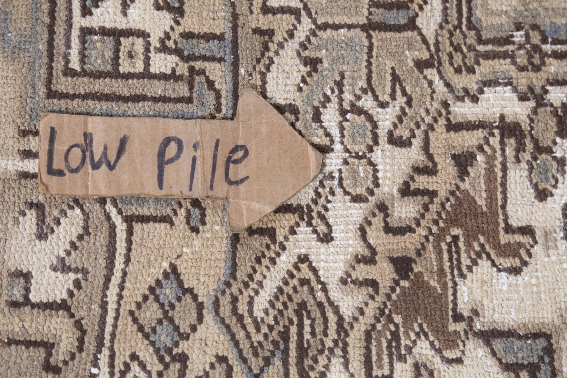 A Beautiful Genuine Persia ( Persia ) Heriz rug is Hand Knotted by skillful weavers in Persia ( Persia ) with 100% Wool Material. This rug is in Very Good (Low Pile-Abrash) condition. dimensions are 10' 3'' X 7' 6'' in foot and 312 X 229 in centimeter. the primary color is Beige & Ivories.