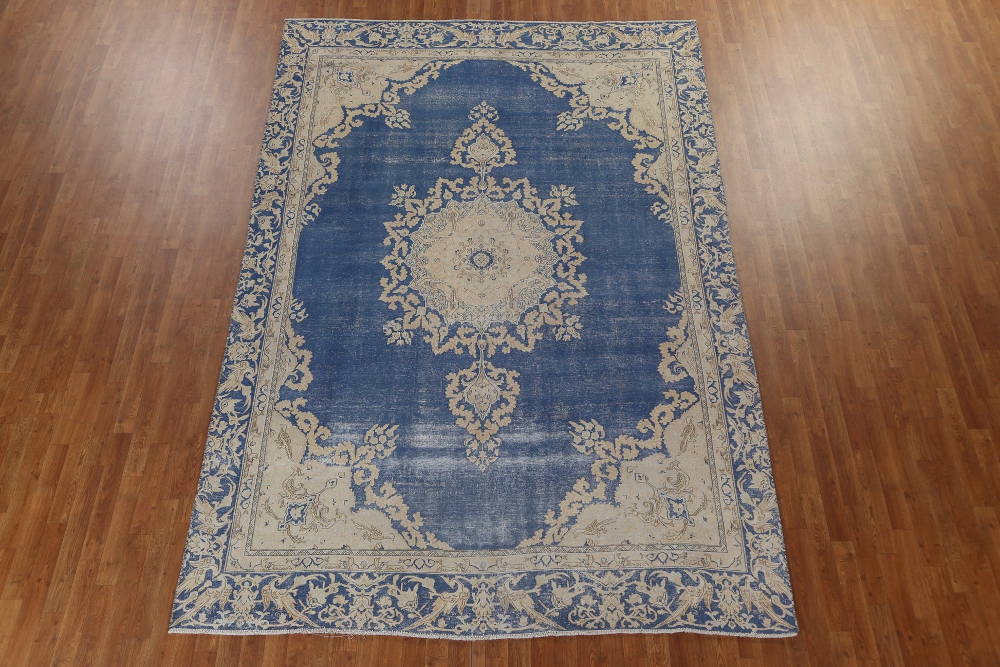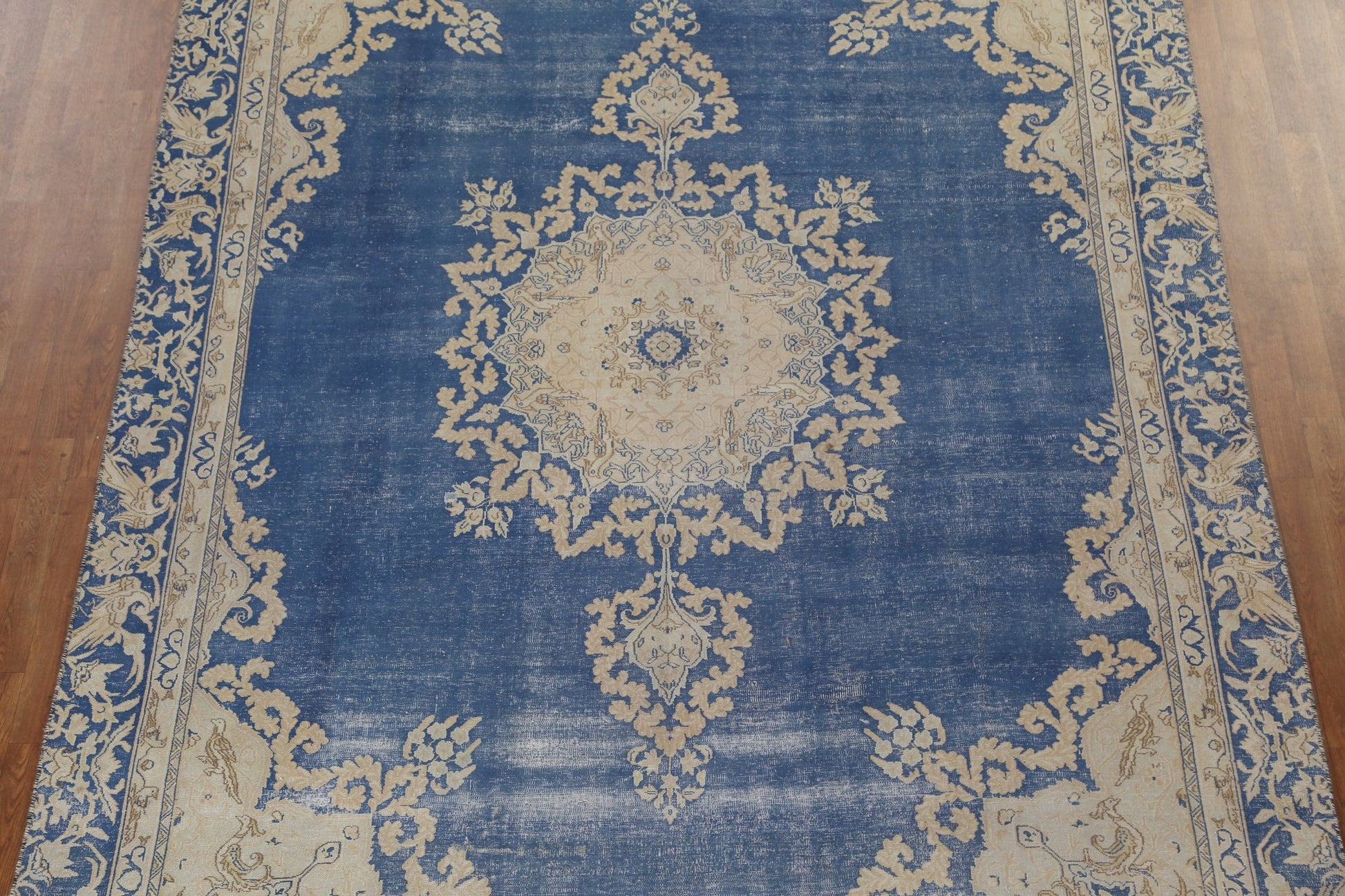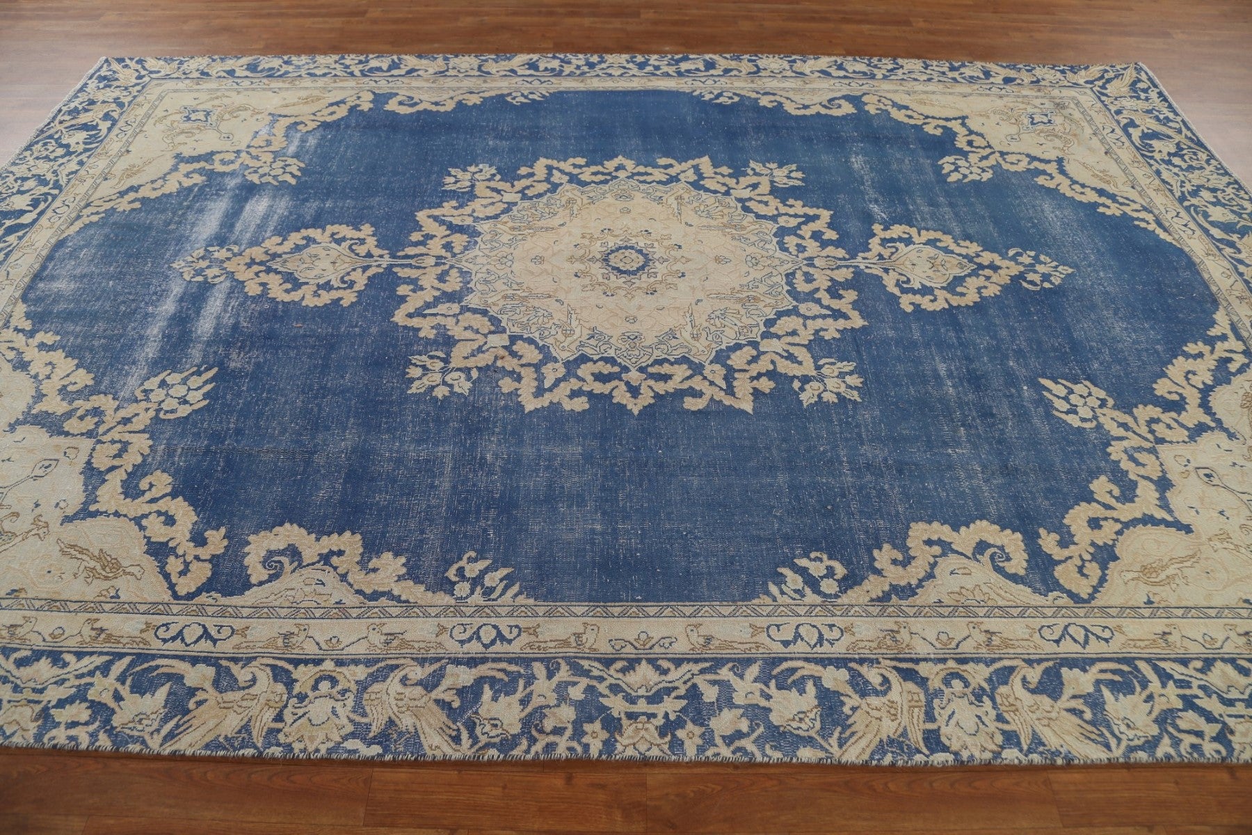 A Beautiful Genuine Persia ( Persia ) Kashan rug is Hand Knotted by skillful weavers in Persia ( Persia ) with 100% Wool Material. This rug is in Very Good (Evenly Low Pile) condition. dimensions are 10' 11'' X 7' 10'' in foot and 333 X 239 in centimeter. the primary color is Navy Blue & Blues.