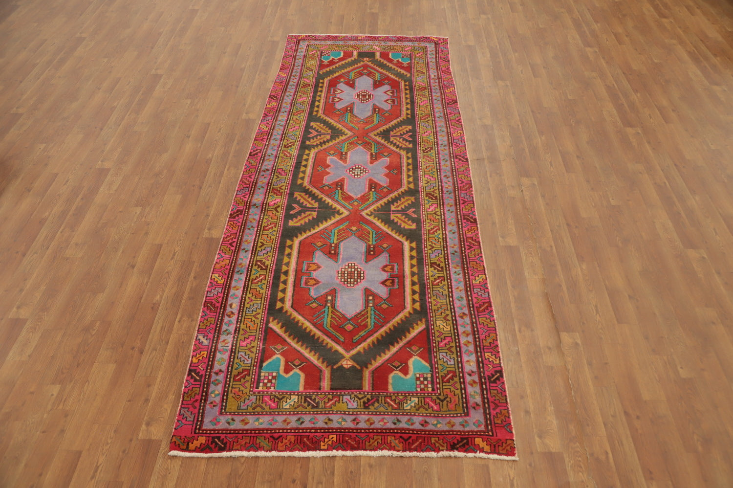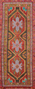 Vintage Geometric Meshkin Persian Runner Rug 4x10