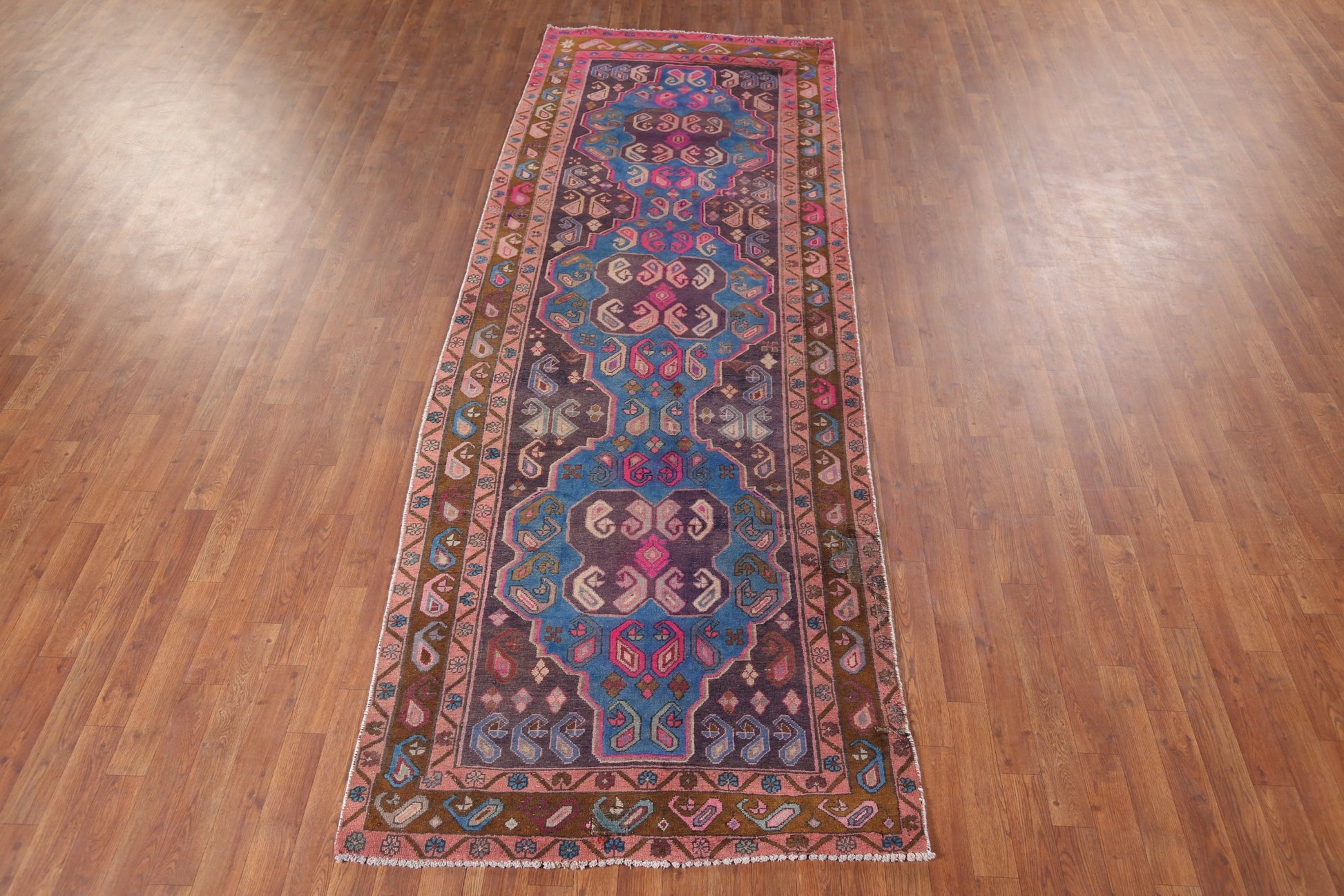 Vintage Geometric Meshkin Persian Runner Rug 4x11