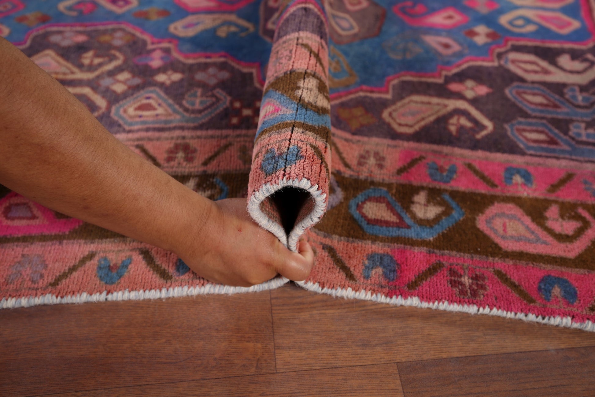 A Beautiful Genuine Persia ( Persia ) Meshkin rug is Hand Knotted by skillful weavers in Persia ( Persia ) with 100% Wool Material. This rug is in Very Good (Evenly Low Pile-Repairs) condition. dimensions are 10' 6'' X 3' 9'' in foot and 320 X 114 in centimeter. the primary color is Navy Blue & Blues.
