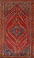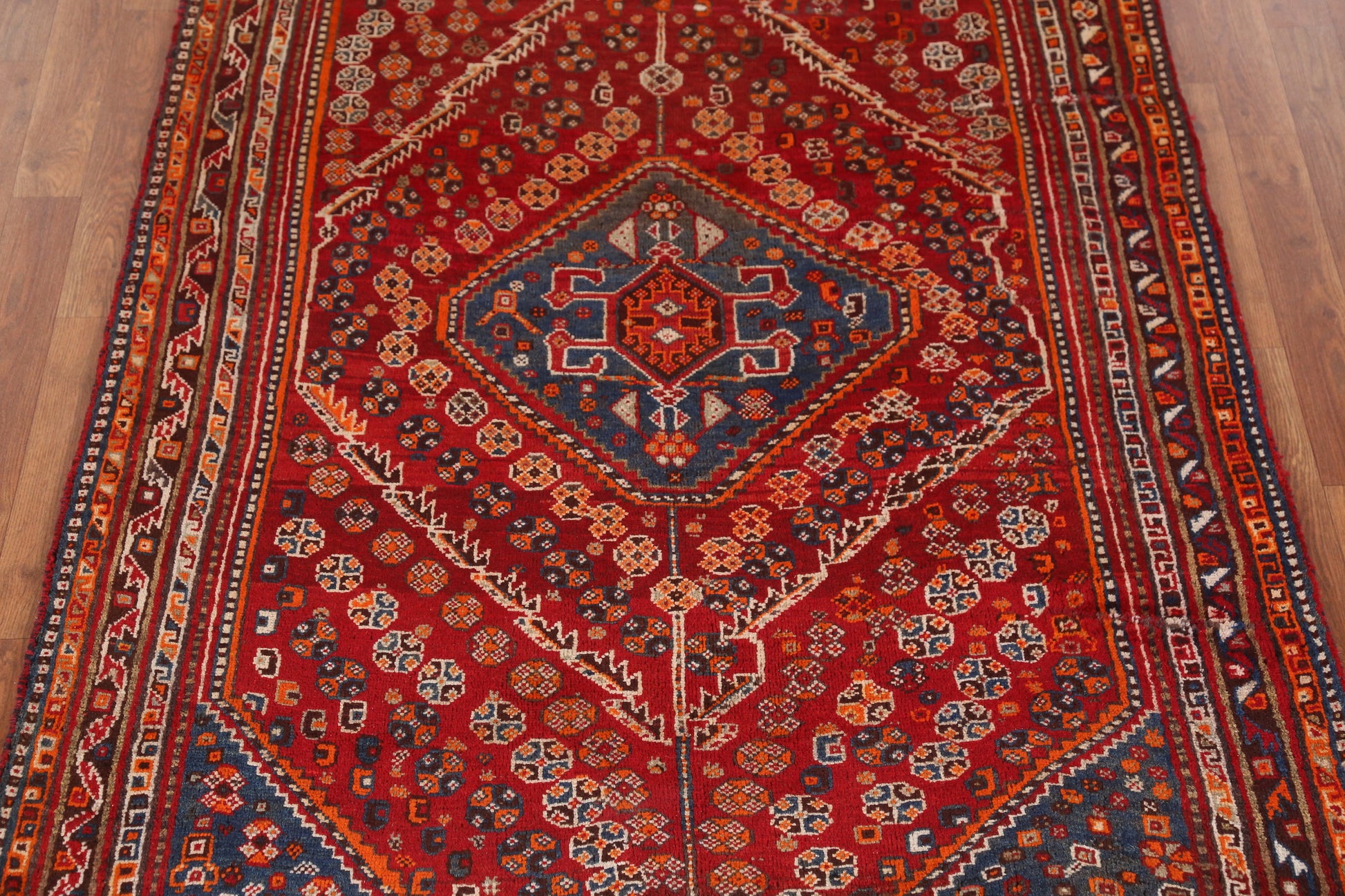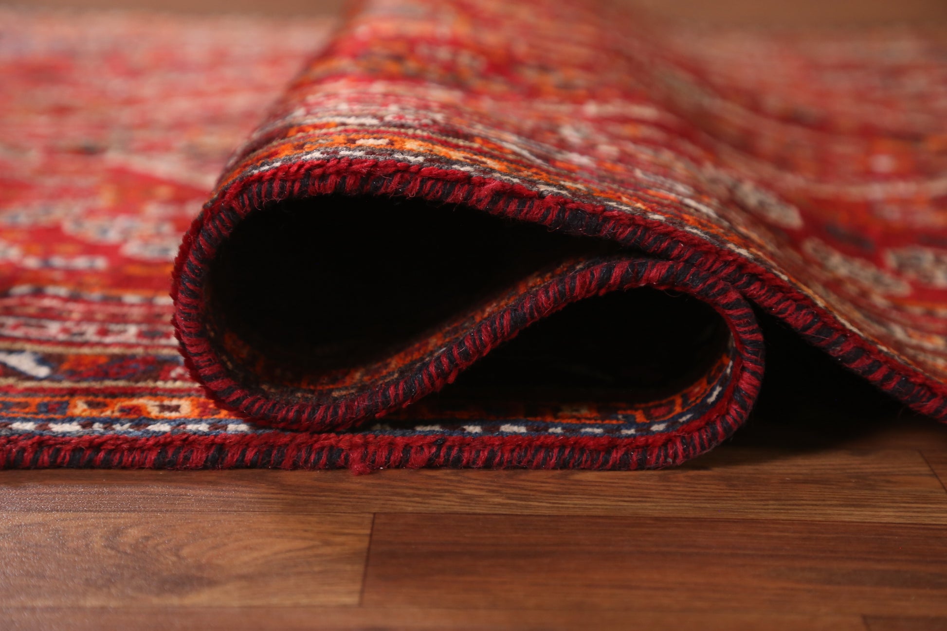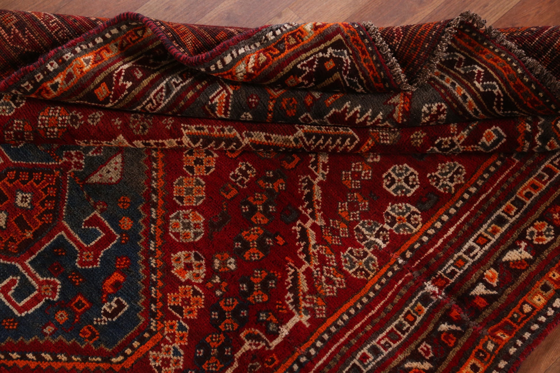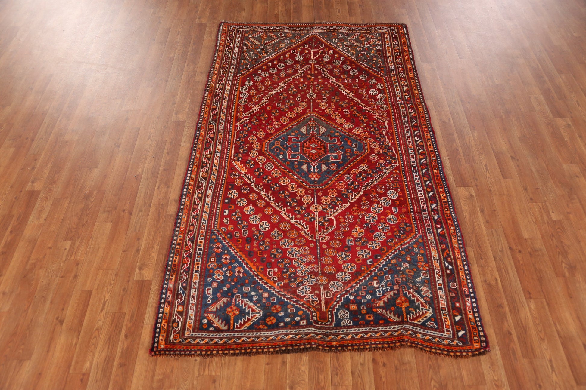 A Beautiful Genuine Persia ( Persia ) Shiraz rug is Hand Knotted by skillful weavers in Persia ( Persia ) with 100% Wool Material. This rug is in Very Good (Abrash) condition. dimensions are 7' 5'' X 4' 4'' in foot and 226 X 132 in centimeter. the primary color is Red.