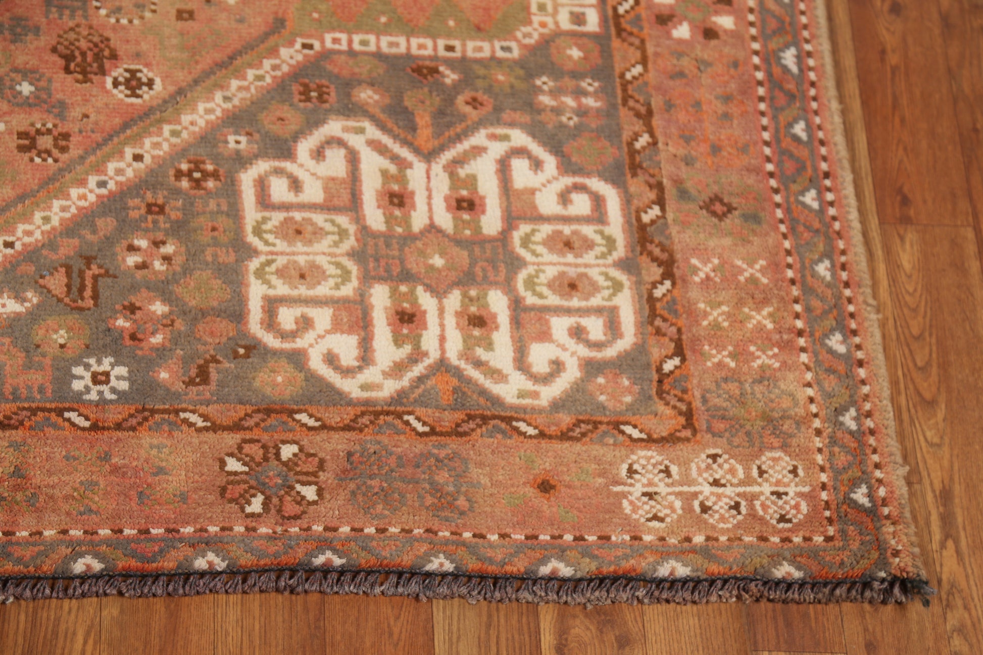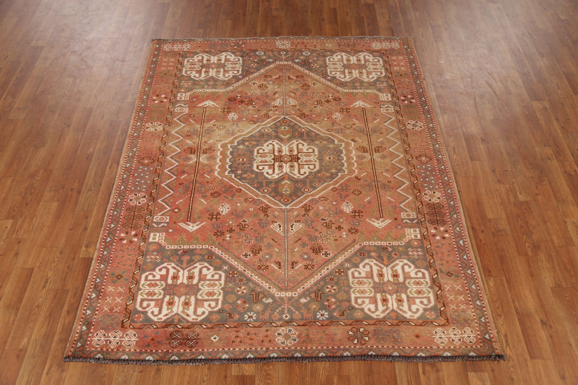 A Beautiful Genuine Persia ( Persia ) Shiraz rug is Hand Knotted by skillful weavers in Persia ( Persia ) with 100% Wool Material. This rug is in Very Good (Faded Color) condition. dimensions are 6' 8'' X 5' 3'' in foot and 203 X 160 in centimeter. the primary color is Oranges & Rust.