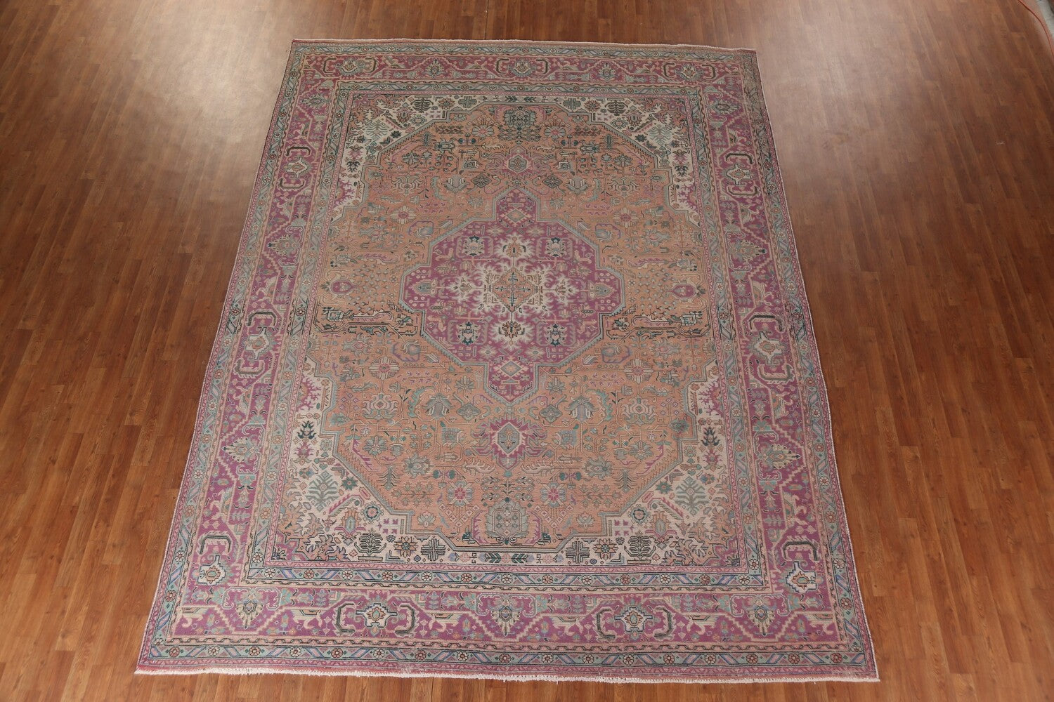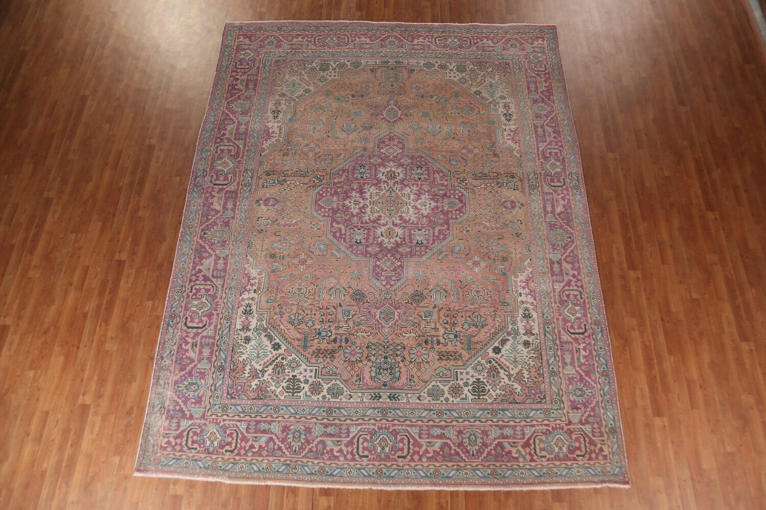 Vintage Geometric Tabriz Persian Area Rug 10x12