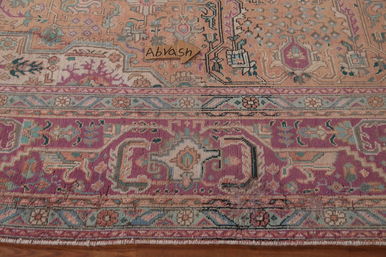 A Beautiful Genuine Persia ( Persia ) Tabriz rug is Hand Knotted by skillful weavers in Persia ( Persia ) with 100% Wool Material. This rug is in Very Good (Evenly Low Pile-Abrash) condition. dimensions are 12' 5'' X 9' 7'' in foot and 378 X 292 in centimeter. the primary color is Peach.