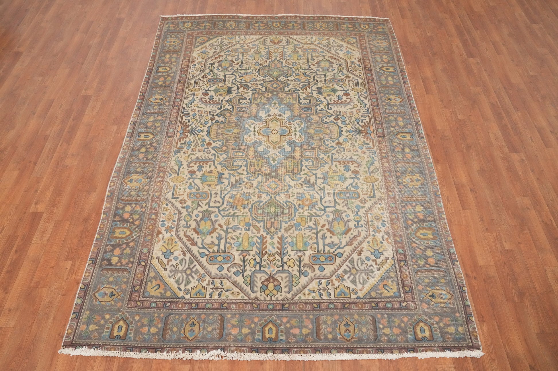 Vintage Geometric Tabriz Persian Area Rug 6x9