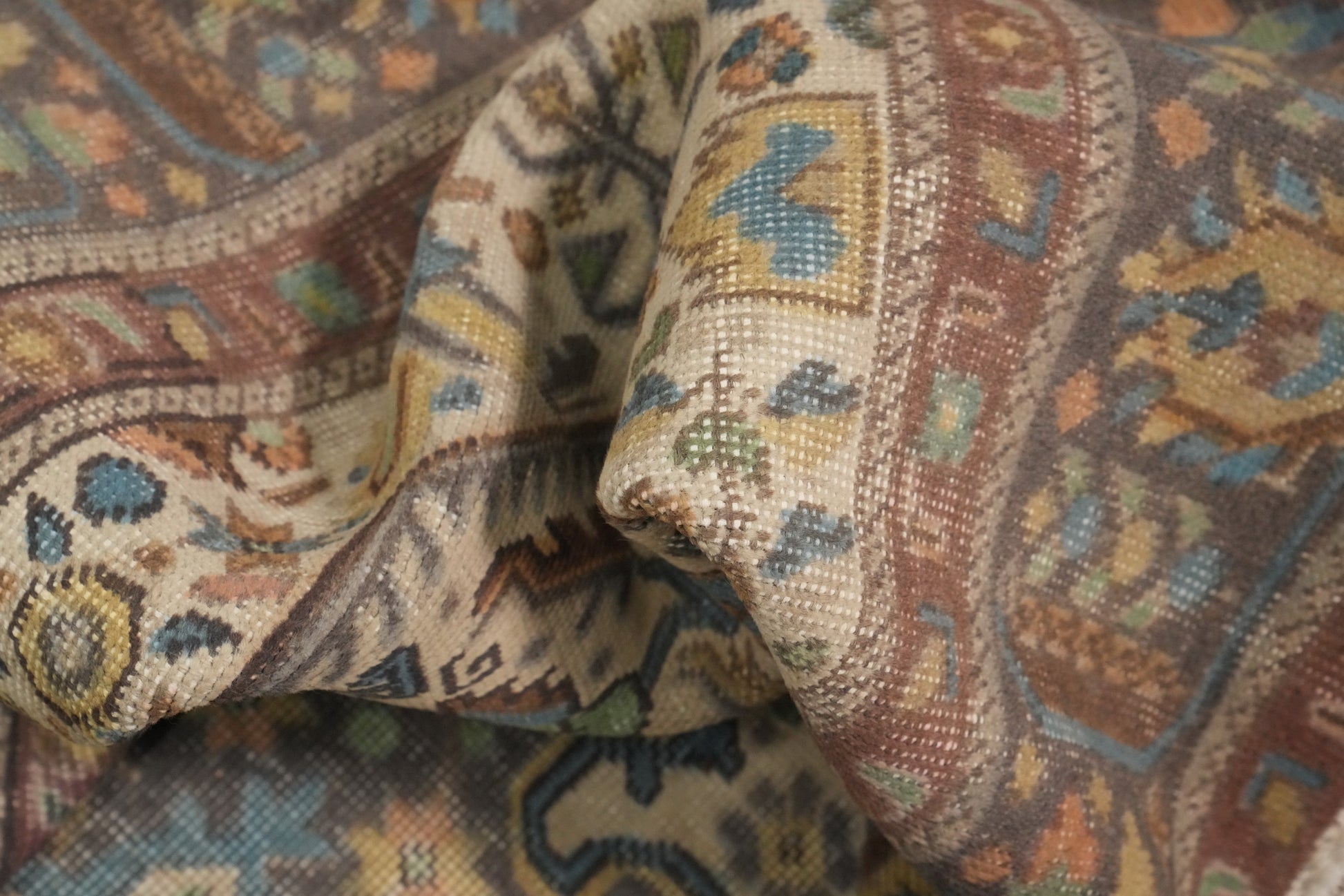 A Beautiful Genuine Persia ( Persia ) Tabriz rug is Hand Knotted by skillful weavers in Persia ( Persia ) with 100% Wool Material. This rug is in Very Good (Evenly Low Pile) condition. dimensions are 9' 1'' X 6' 3'' in foot and 277 X 191 in centimeter. the primary color is Beige & Ivories.