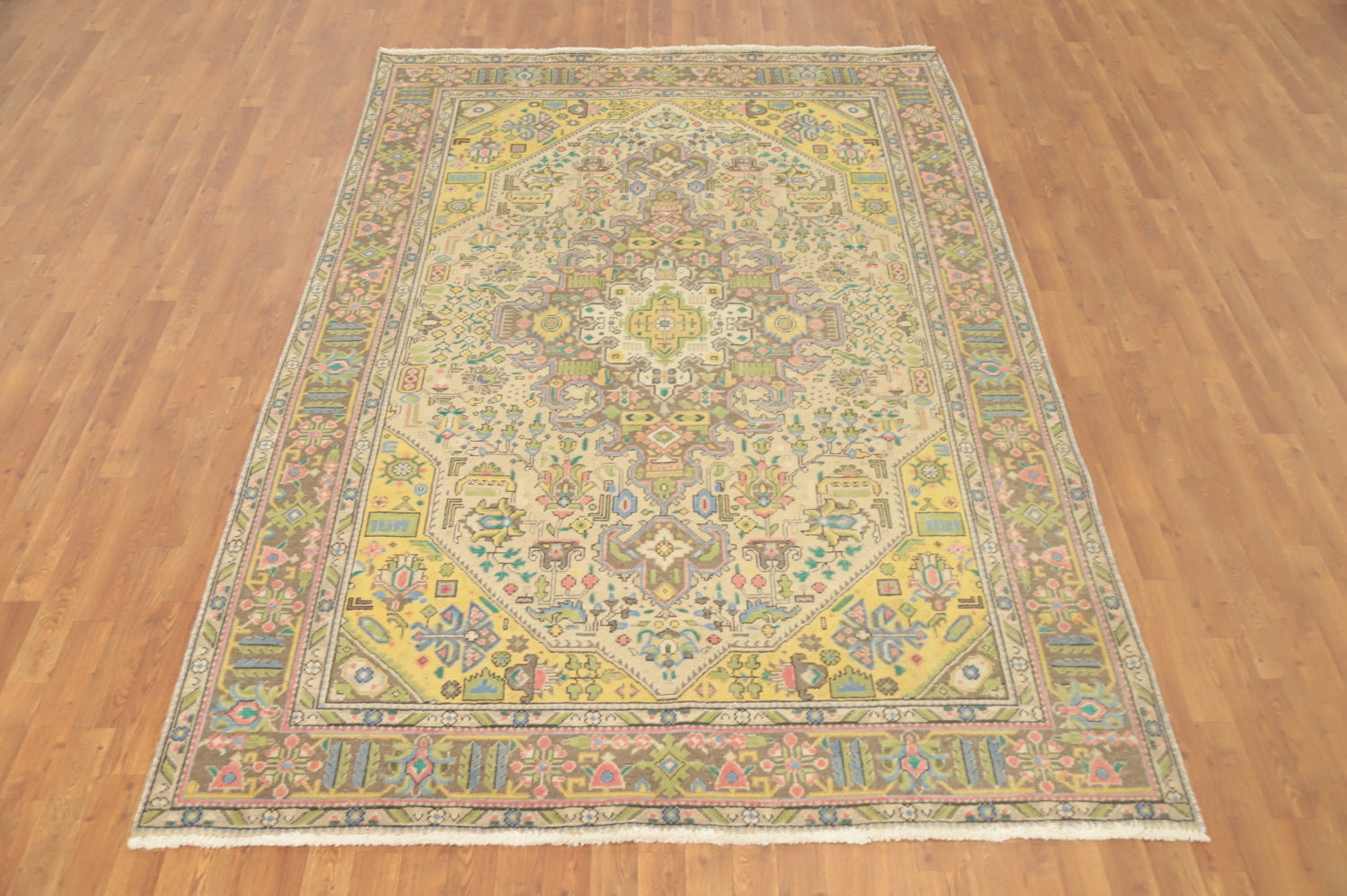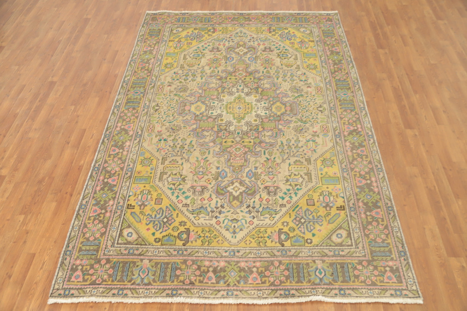 Vintage Geometric Tabriz Persian Area Rug 6x9