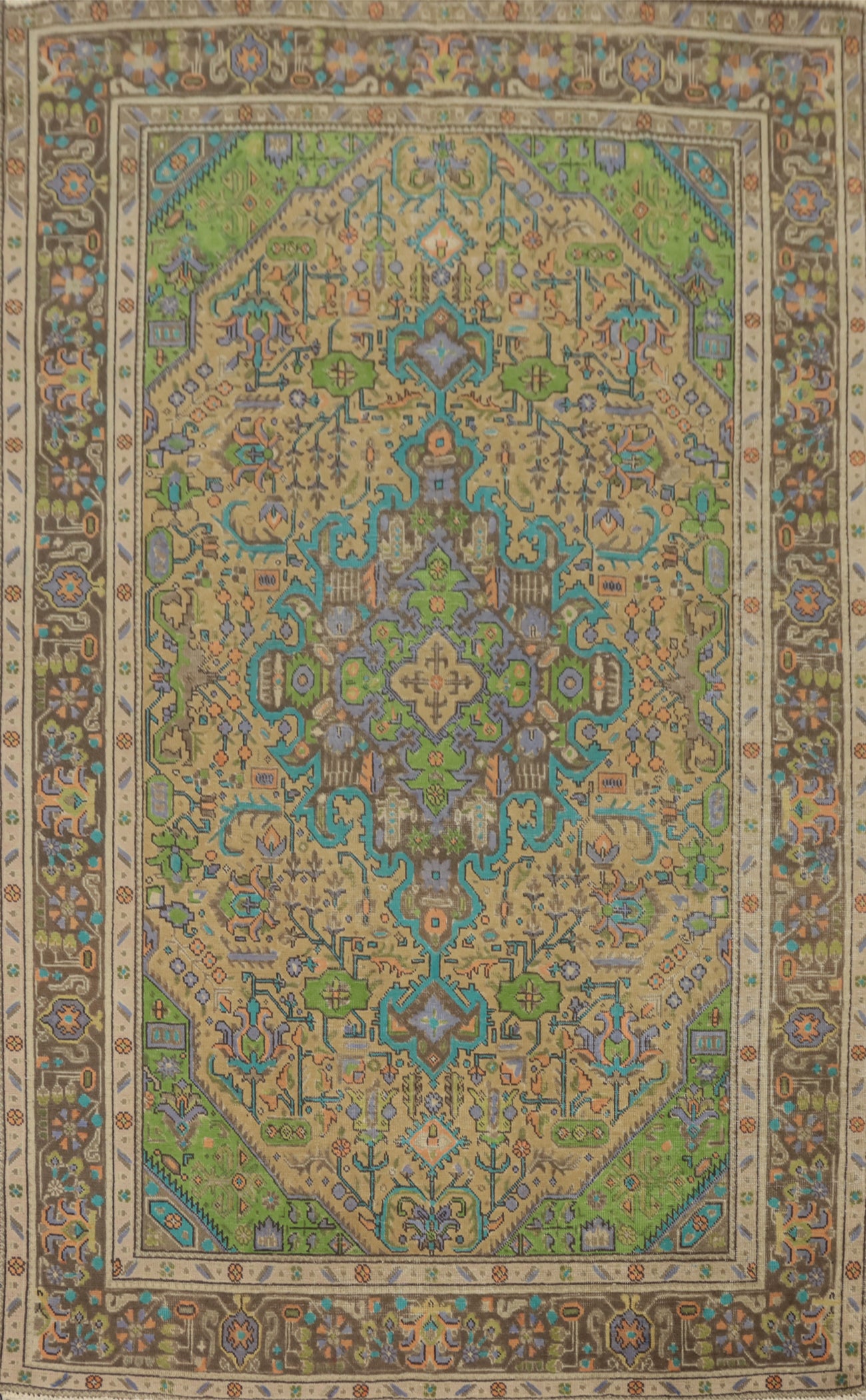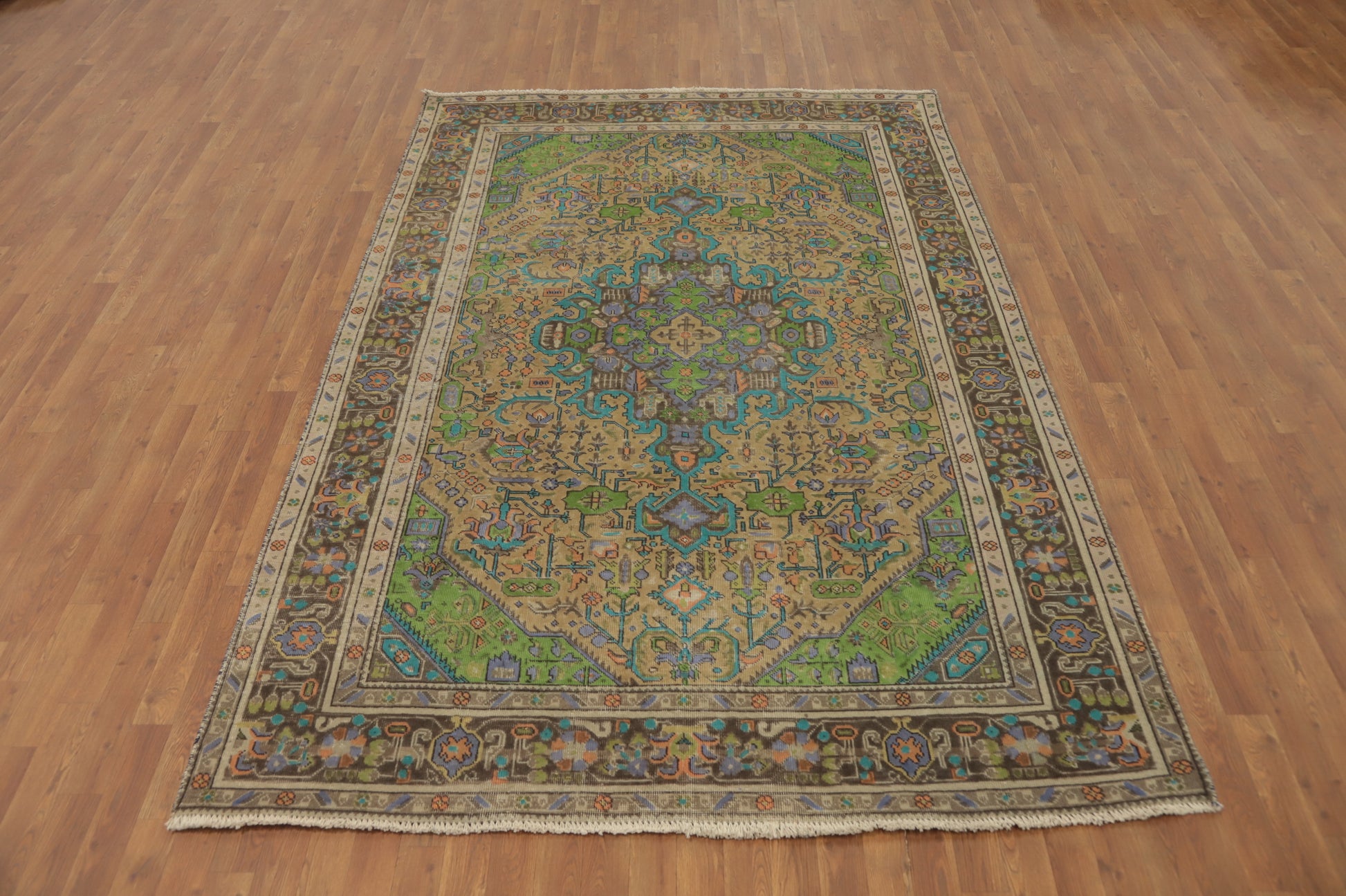 Vintage Geometric Tabriz Persian Area Rug 6x9