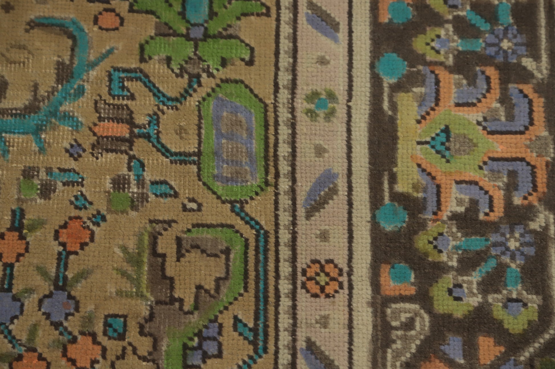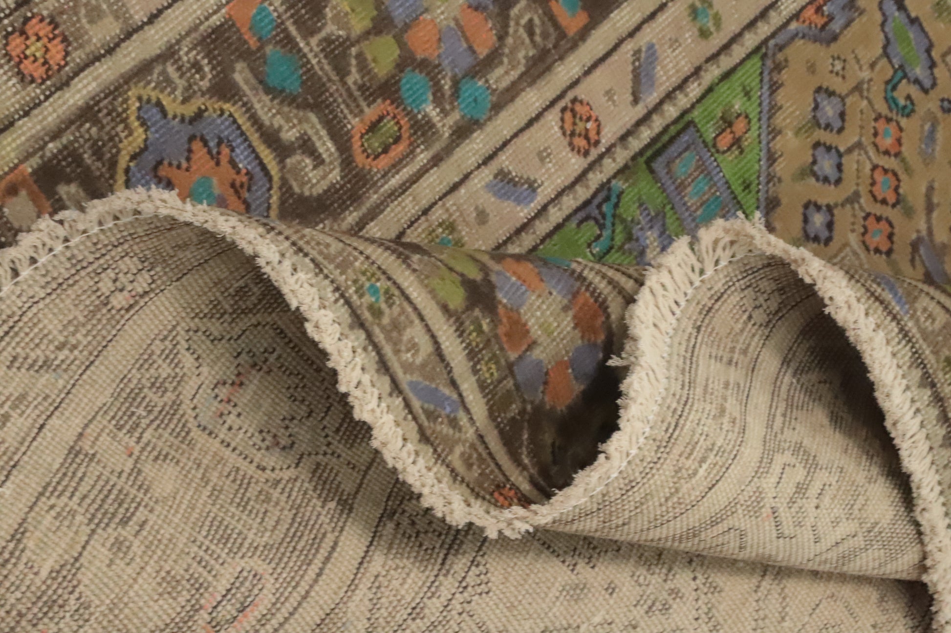 A Beautiful Genuine Persia ( Persia ) Tabriz rug is Hand Knotted by skillful weavers in Persia ( Persia ) with 100% Wool Material. This rug is in Very Good (Evenly Low Pile) condition. dimensions are 9' 5'' X 6' 4'' in foot and 287 X 193 in centimeter. the primary color is Brown.