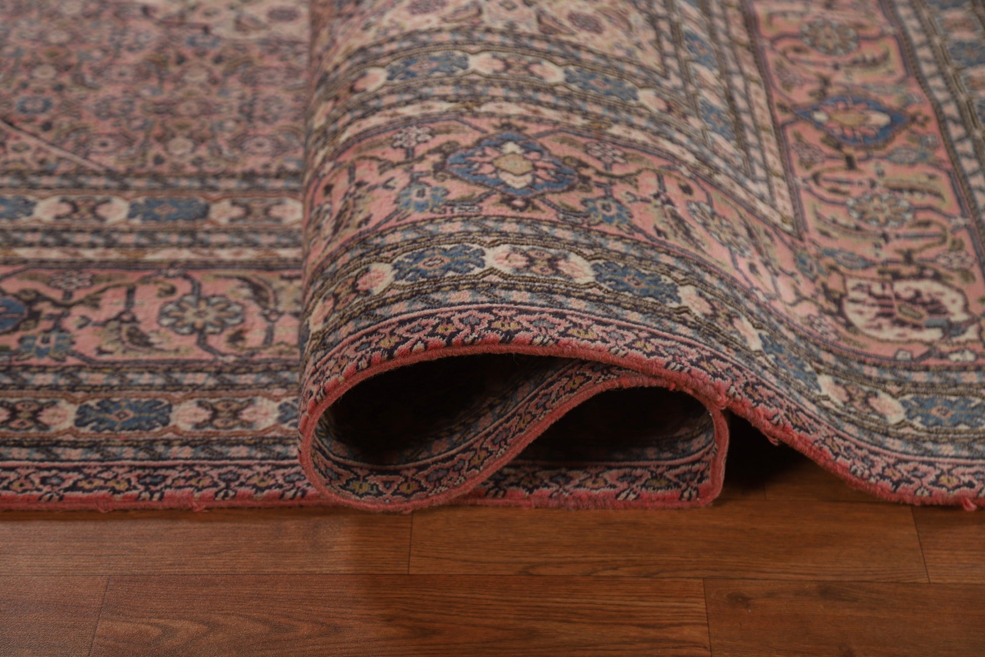 A Beautiful Genuine Persia ( Persia ) Tabriz rug is Hand Knotted by skillful weavers in Persia ( Persia ) with 100% Wool Material. This rug is in very good (small low pile) condition. dimensions are 10' 6'' X 6' 11'' in foot and 320 X 211 in centimeter. the primary color is Pink.