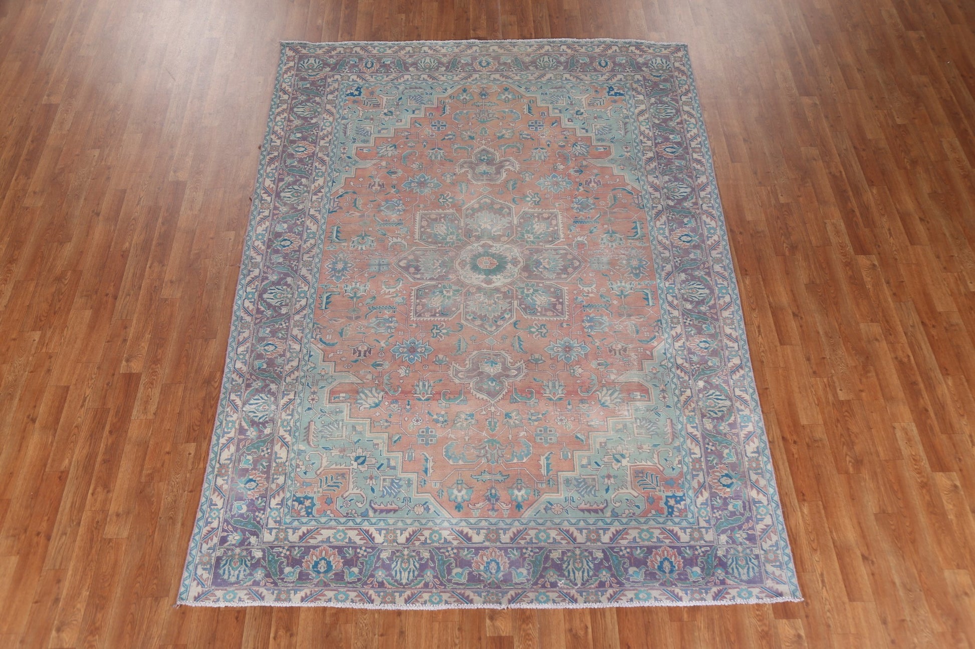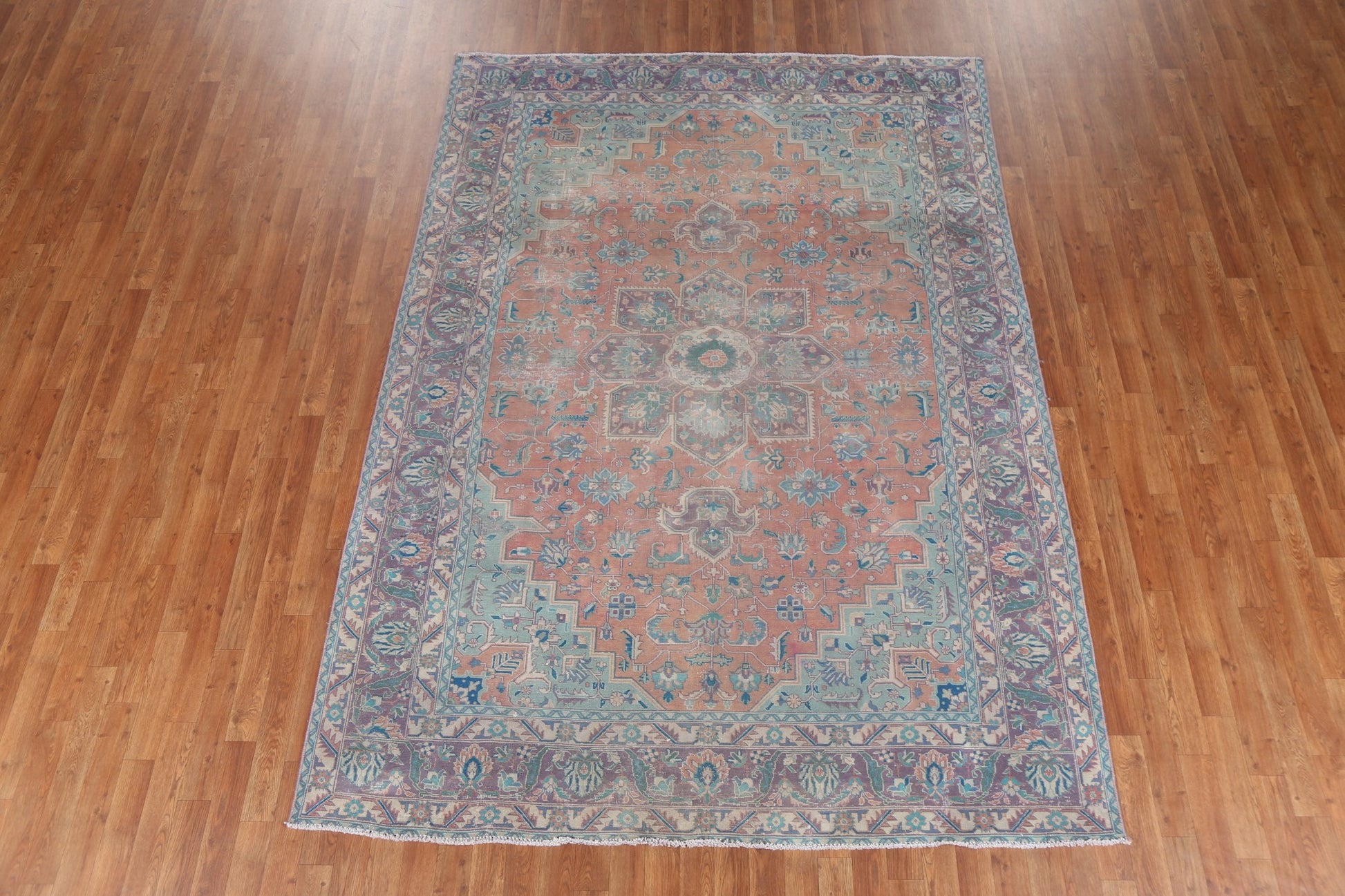 A Beautiful Genuine Persia ( Persia ) Tabriz rug is Hand Knotted by skillful weavers in Persia ( Persia ) with 100% Wool Material. This rug is in Very Good ( Low Pile ) condition. dimensions are 9' 5'' X 6' 7'' in foot and 287 X 201 in centimeter. the primary color is Coral.