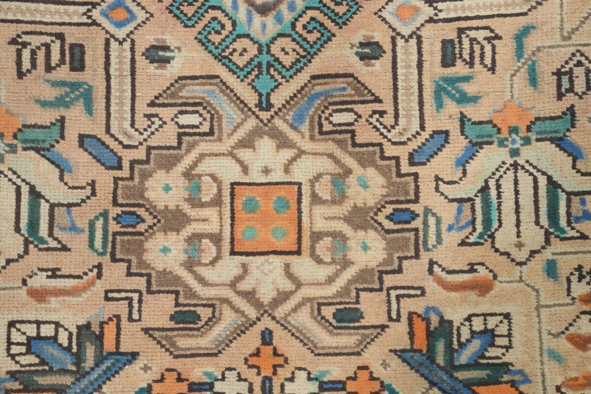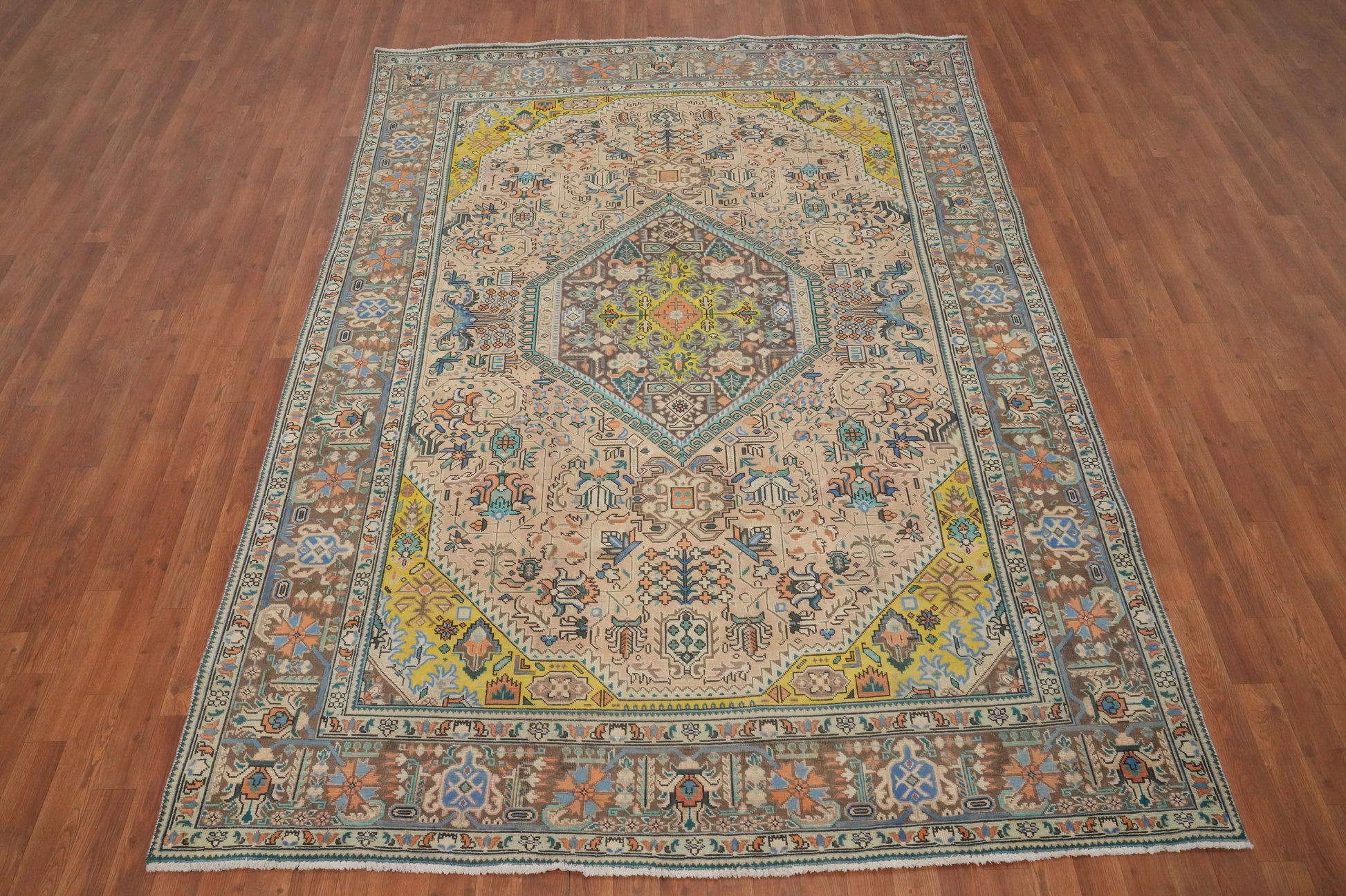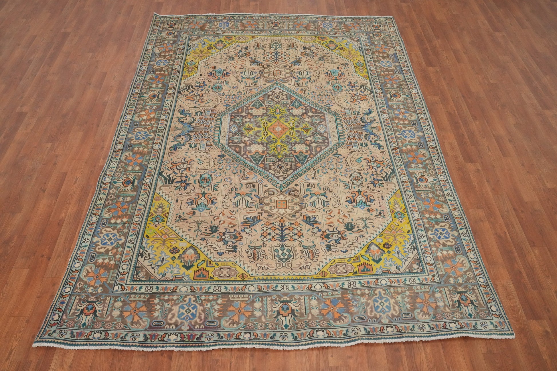 Vintage Geometric Tabriz Persian Area Rug 7x9