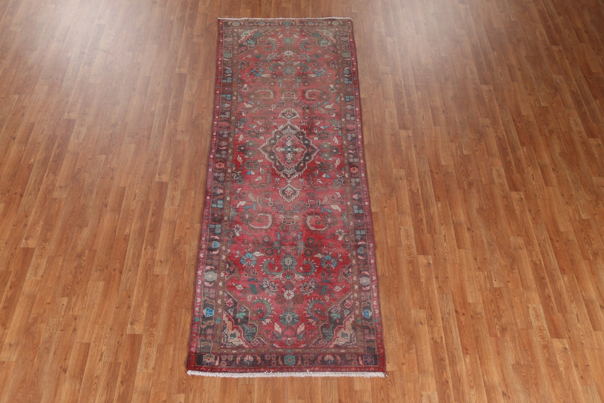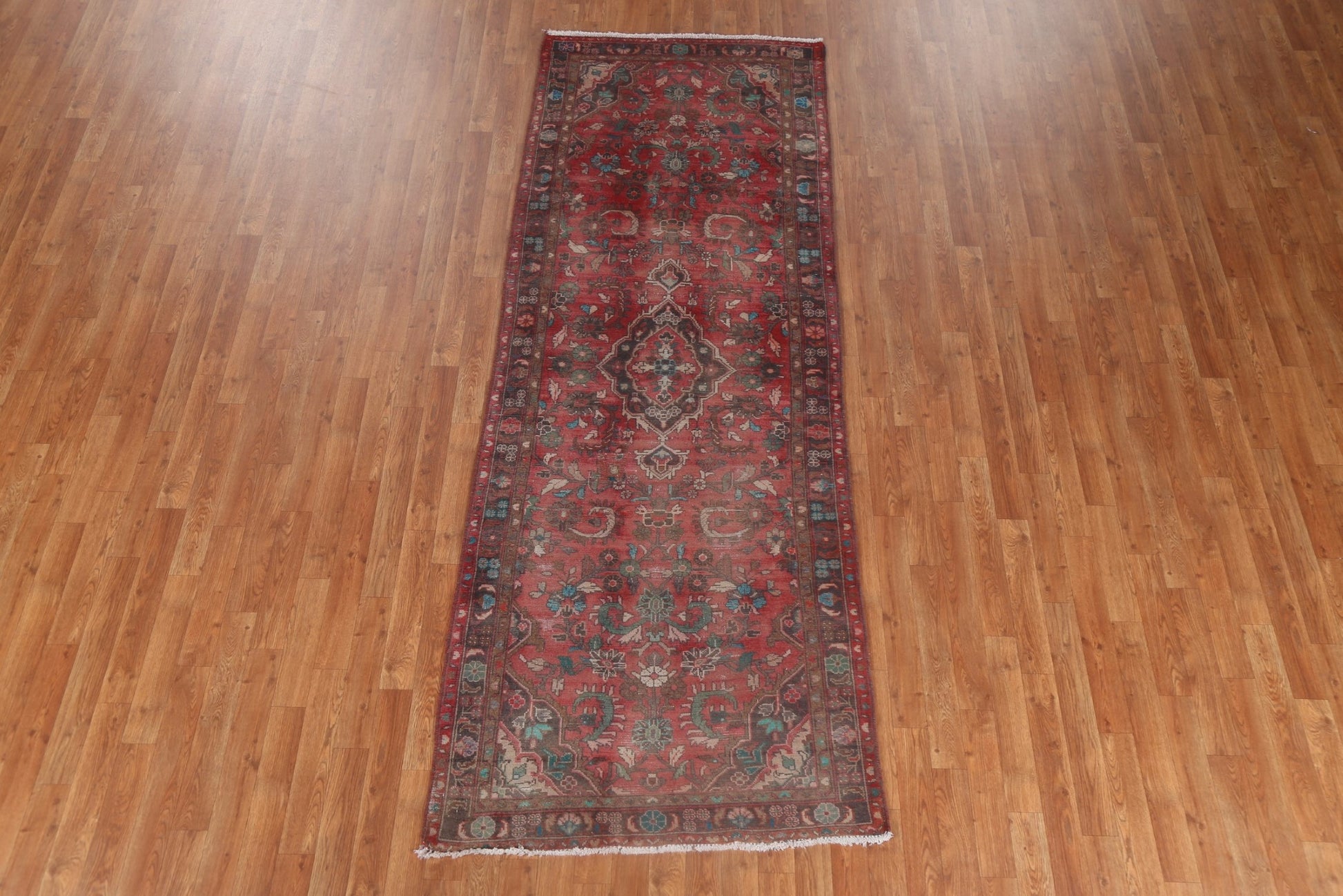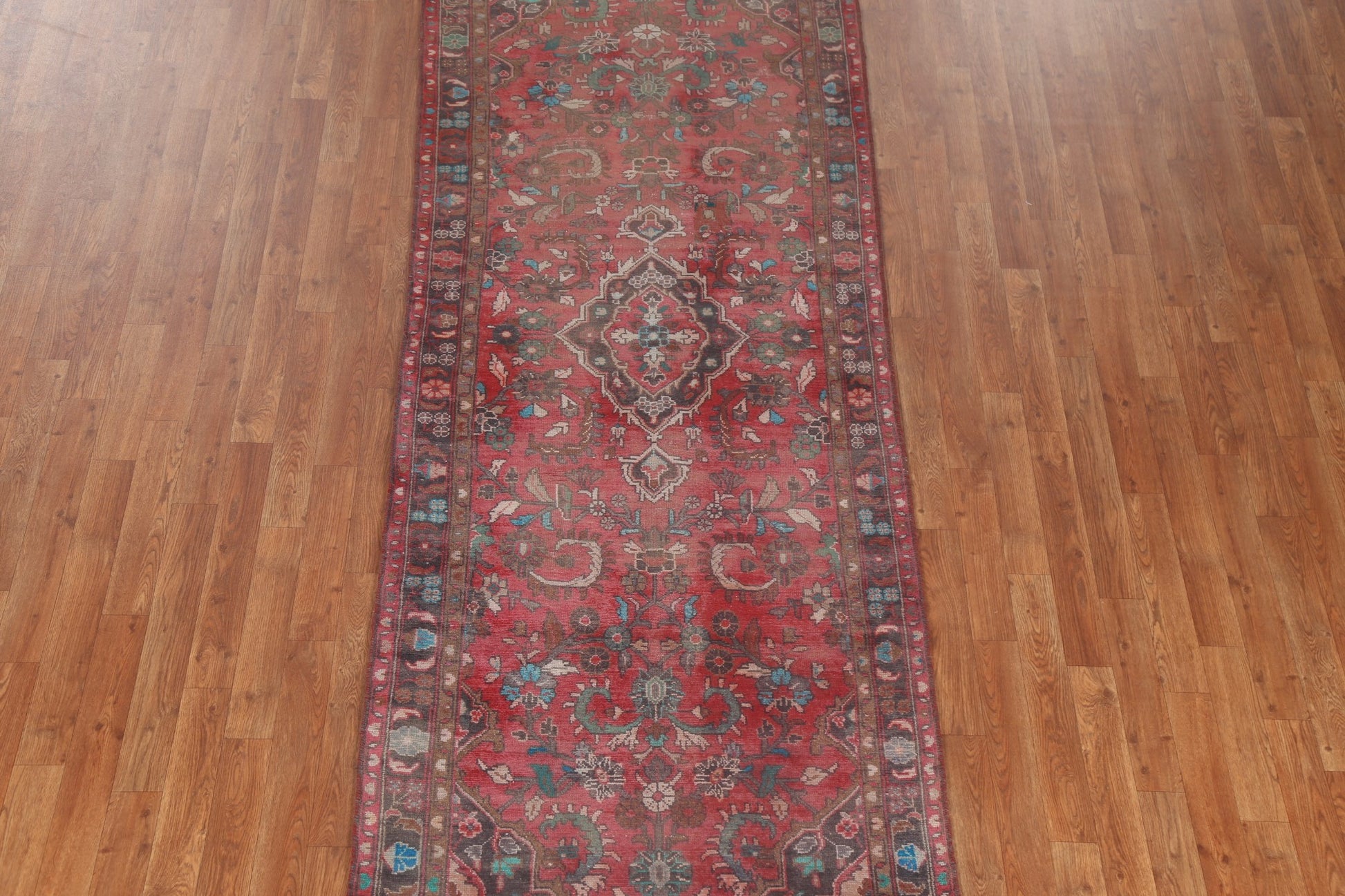 Vintage Geometric Tabriz Persian Runner Rug 3x10