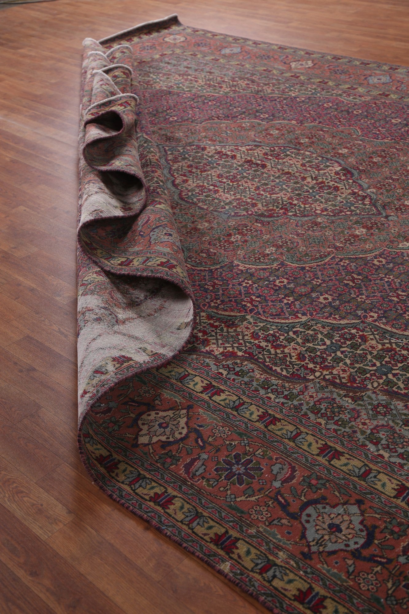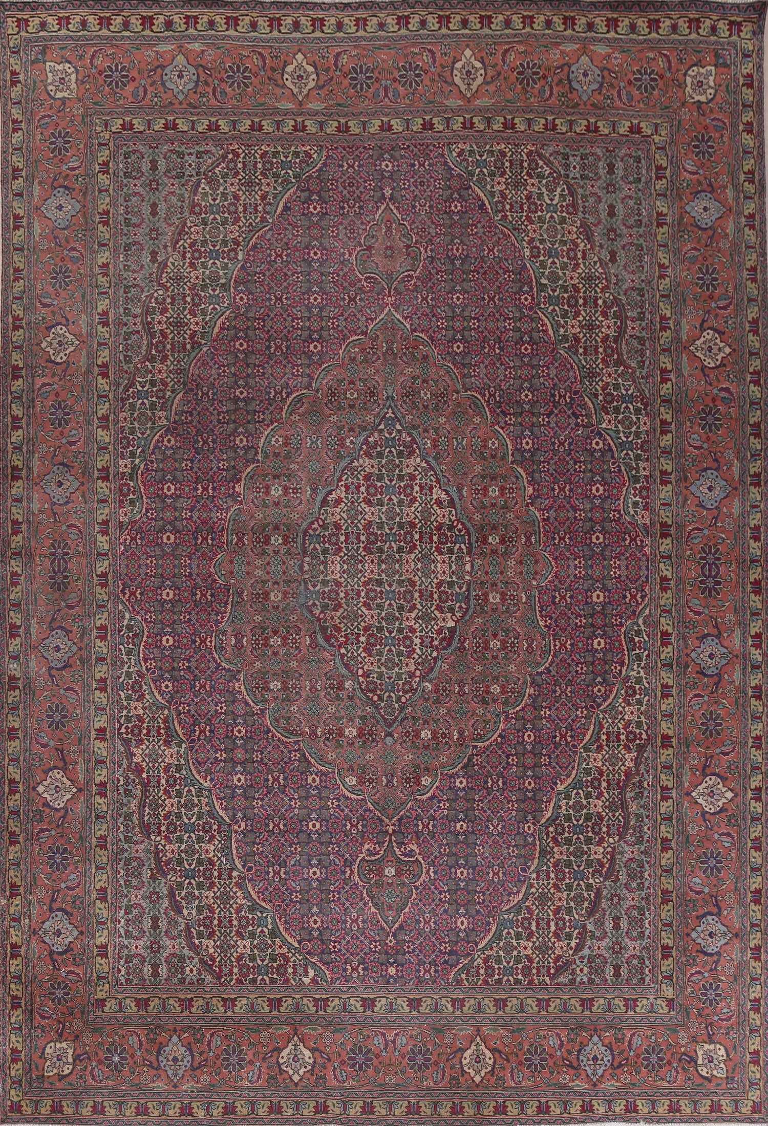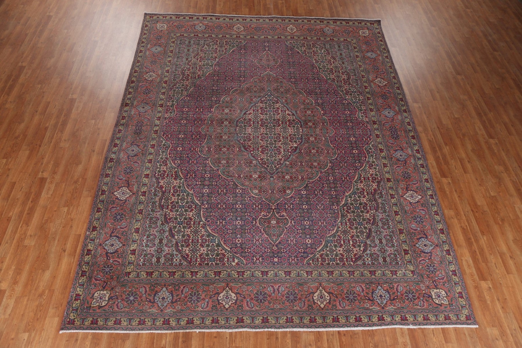 Vintage Geometric Tabriz Persian Wool Rug 10x13