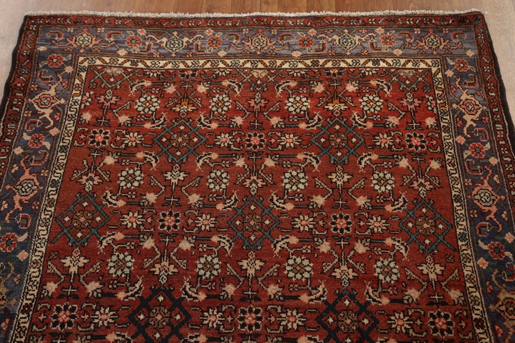 Vintage Geometric Zanjan Persian Runner Rug 4x10