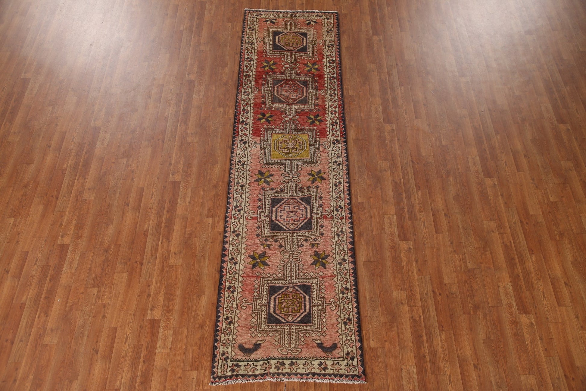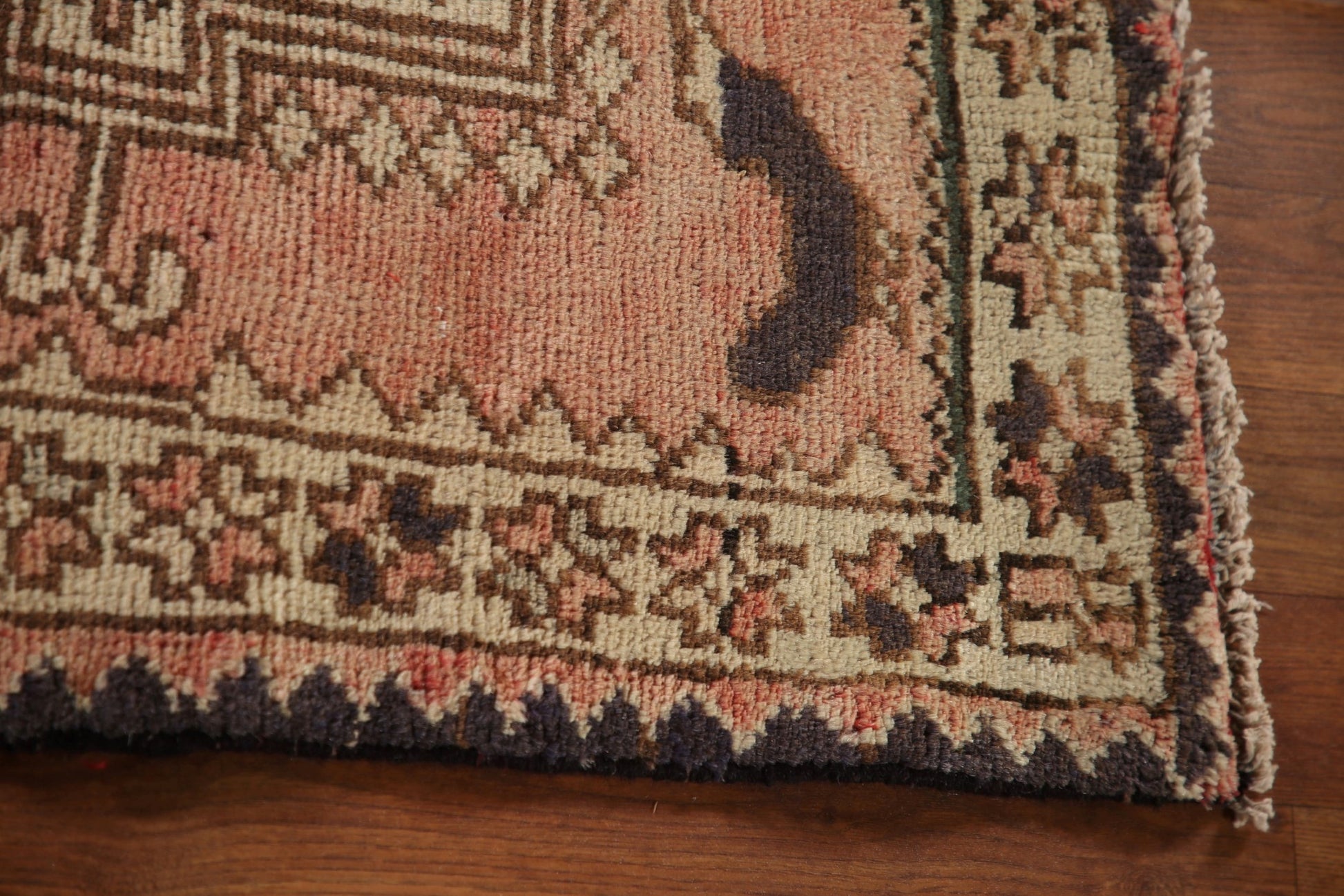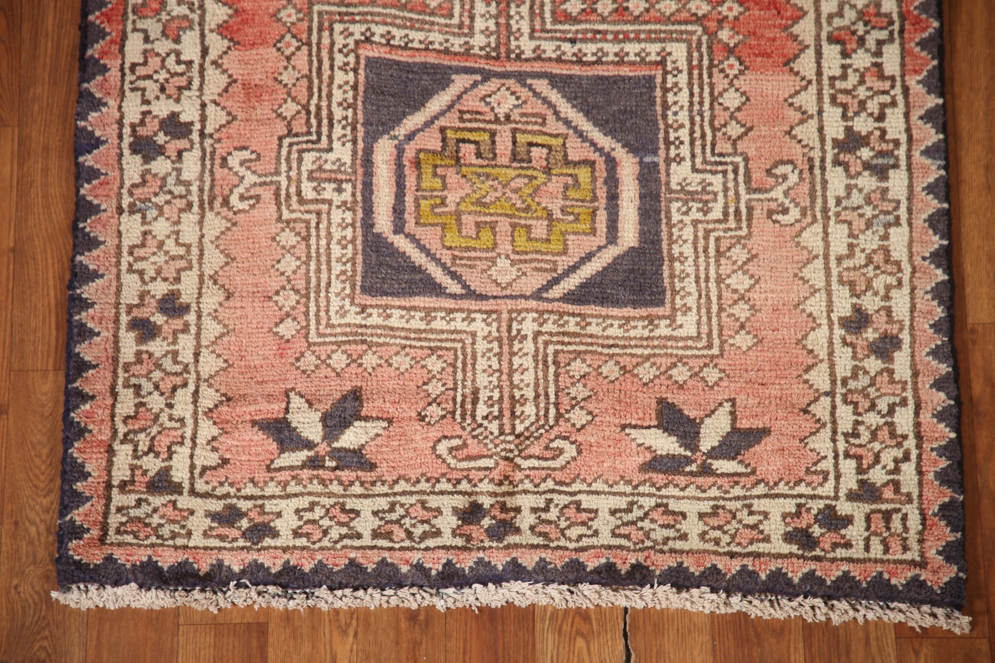 A Beautiful Genuine Persia ( Persia ) Gharajeh rug is Hand Knotted by skillful weavers in Persia ( Persia ) with 100% Wool Material. This rug is in Very Good (Abrash) condition. dimensions are 10' 6'' X 2' 10'' in foot and 320 X 86 in centimeter. the primary color is Pink.