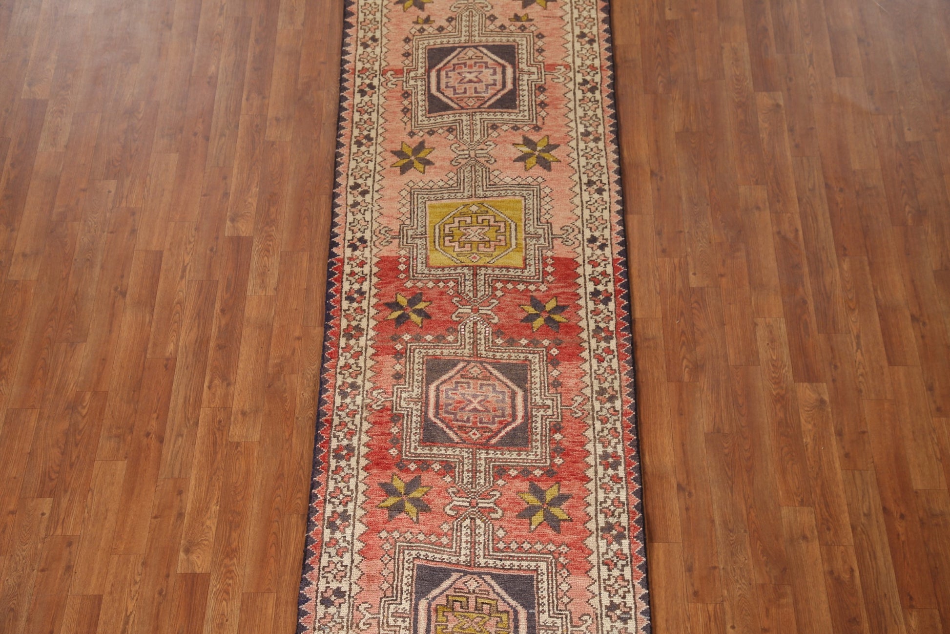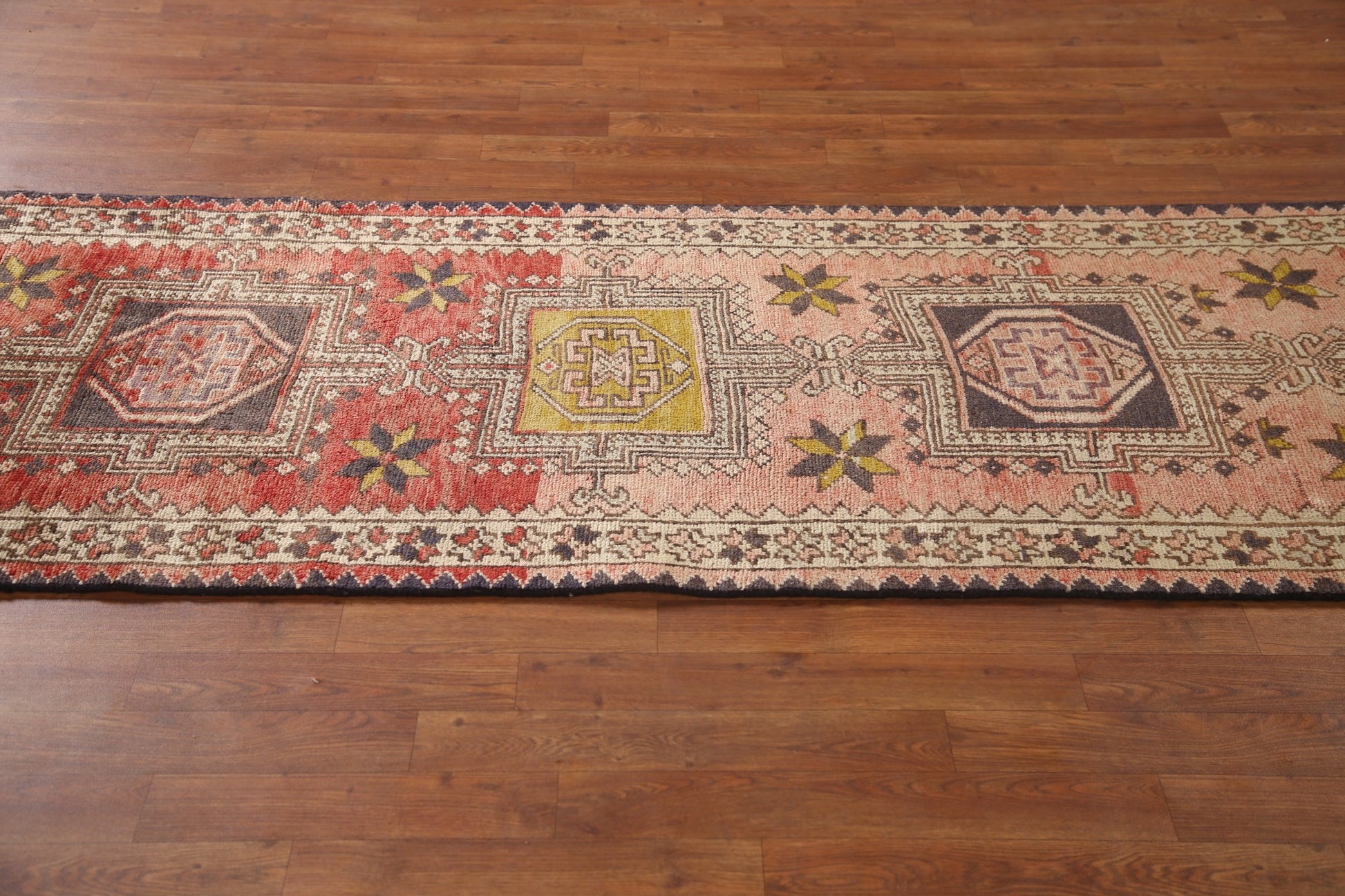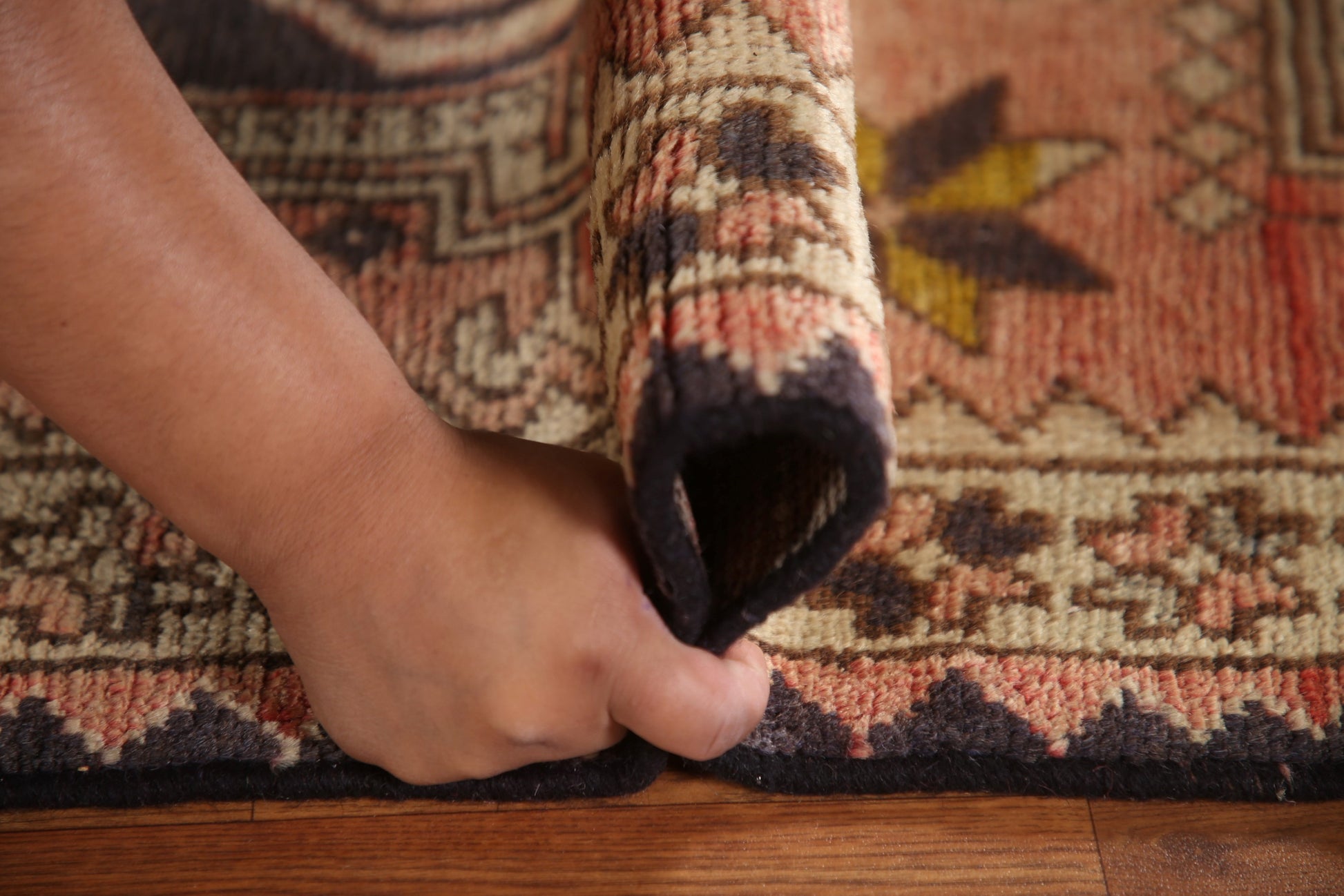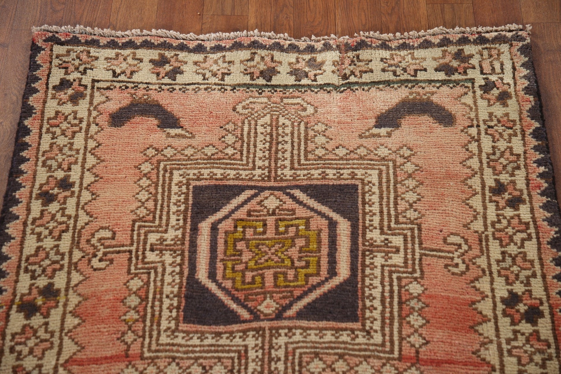 A Beautiful Genuine Persia ( Persia ) Gharajeh rug is Hand Knotted by skillful weavers in Persia ( Persia ) with 100% Wool Material. This rug is in Very Good (Abrash) condition. dimensions are 10' 6'' X 2' 10'' in foot and 320 X 86 in centimeter. the primary color is Pink.