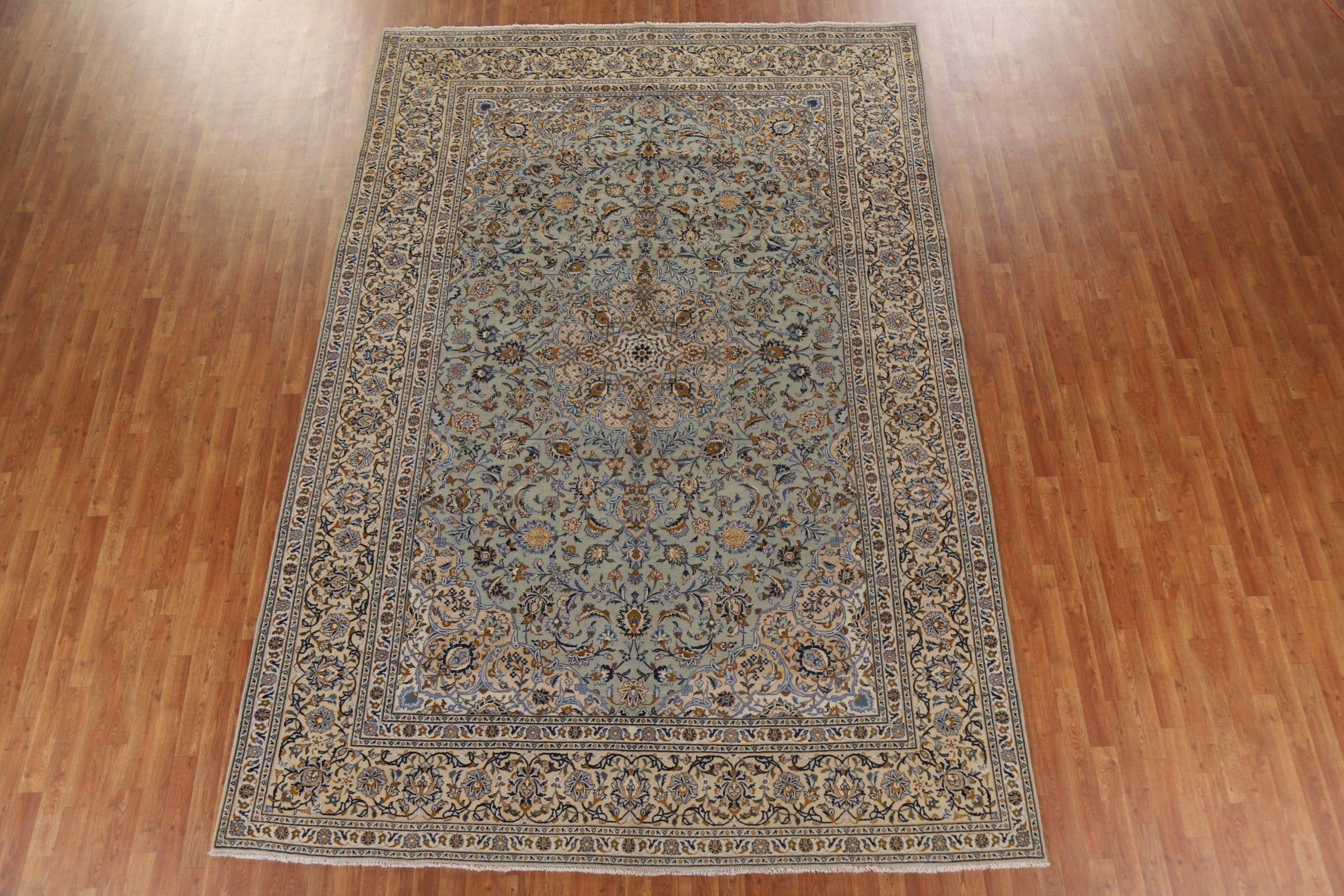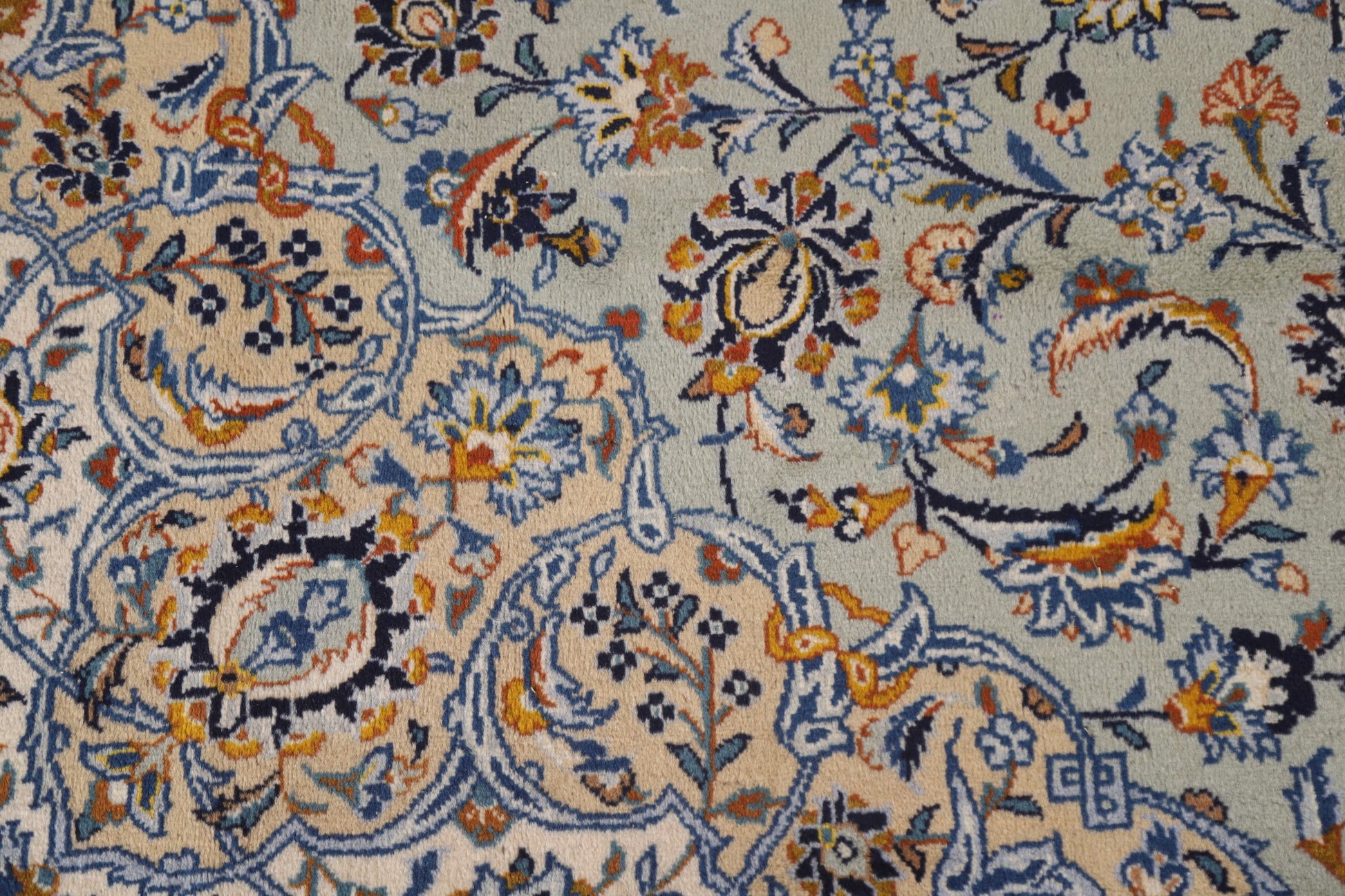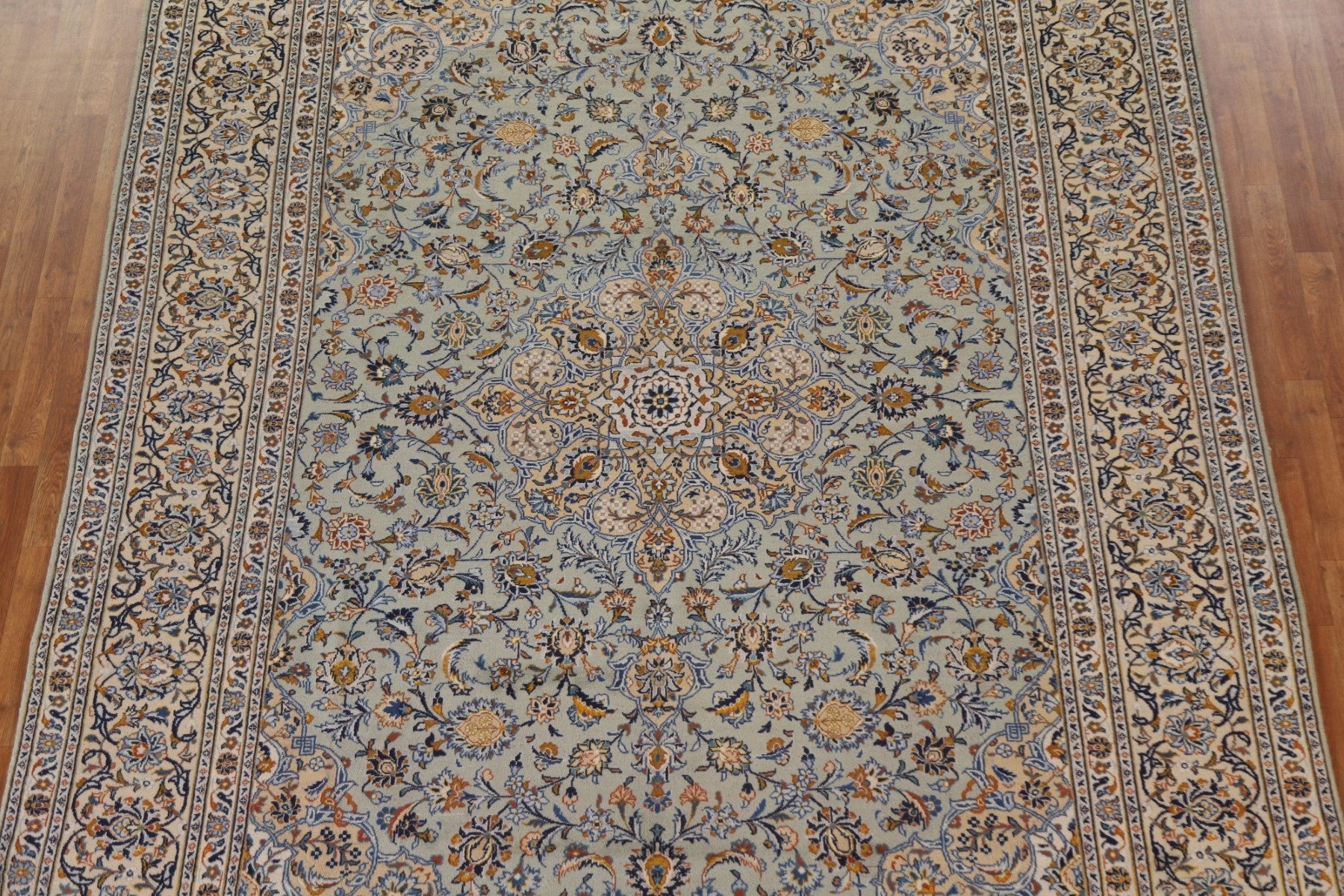 A Beautiful Genuine Persia ( Persia ) Kashan rug is Hand Knotted by skillful weavers in Persia ( Persia ) with 100% Wool Material. This rug is in Very Good condition. dimensions are 12' 7'' X 8' 7'' in foot and 384 X 262 in centimeter. the primary color is Green.