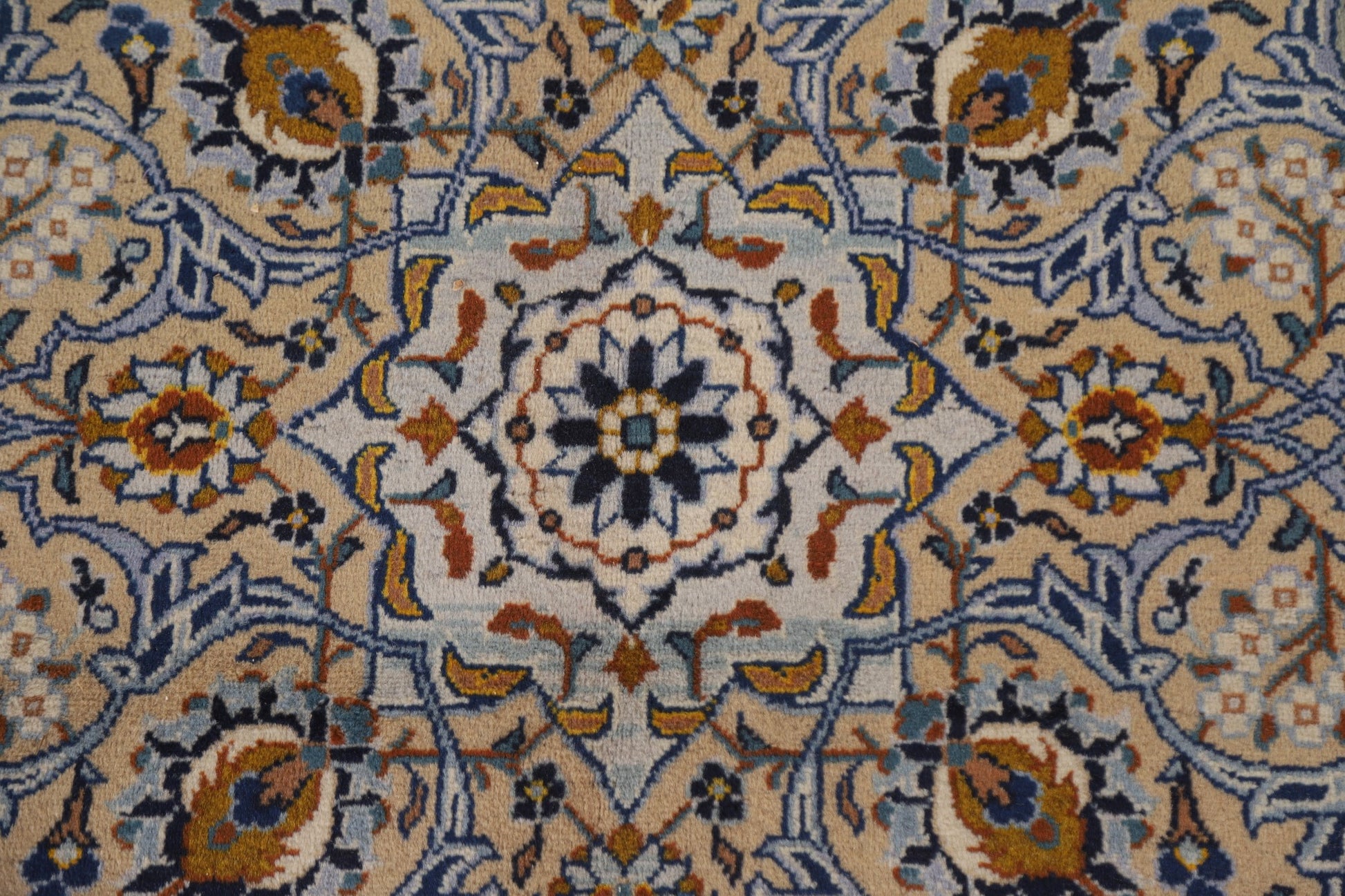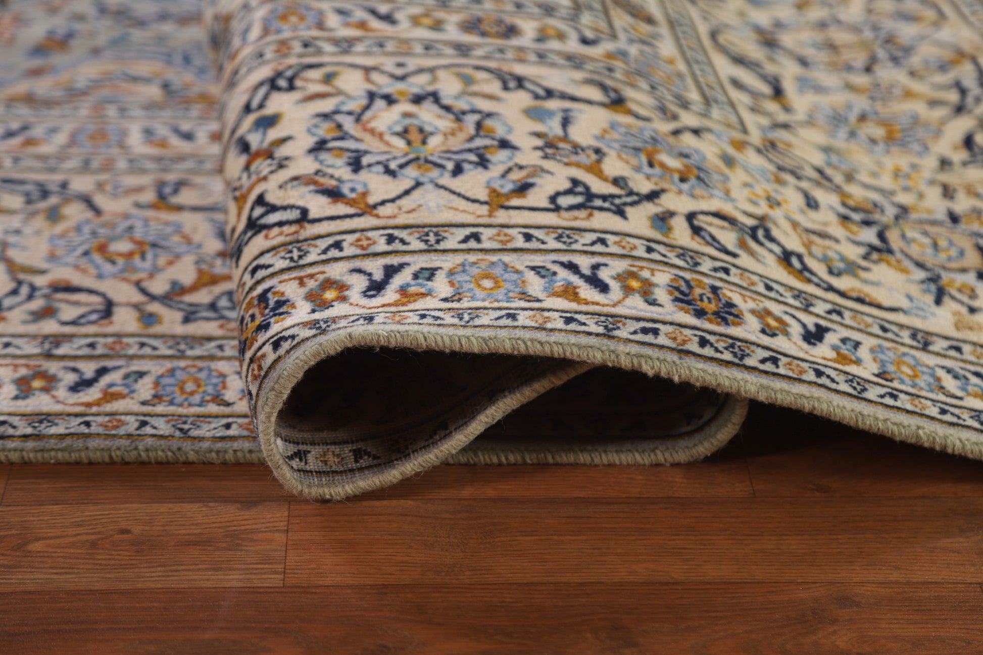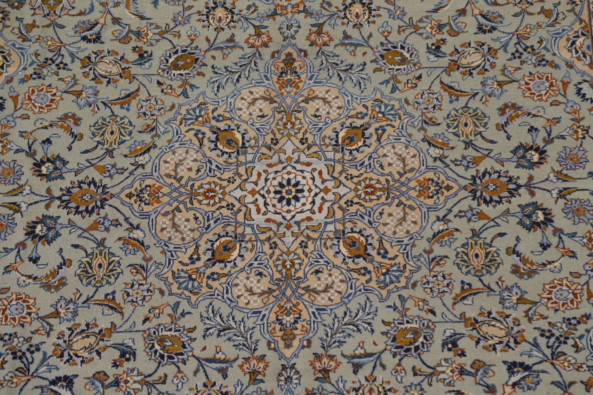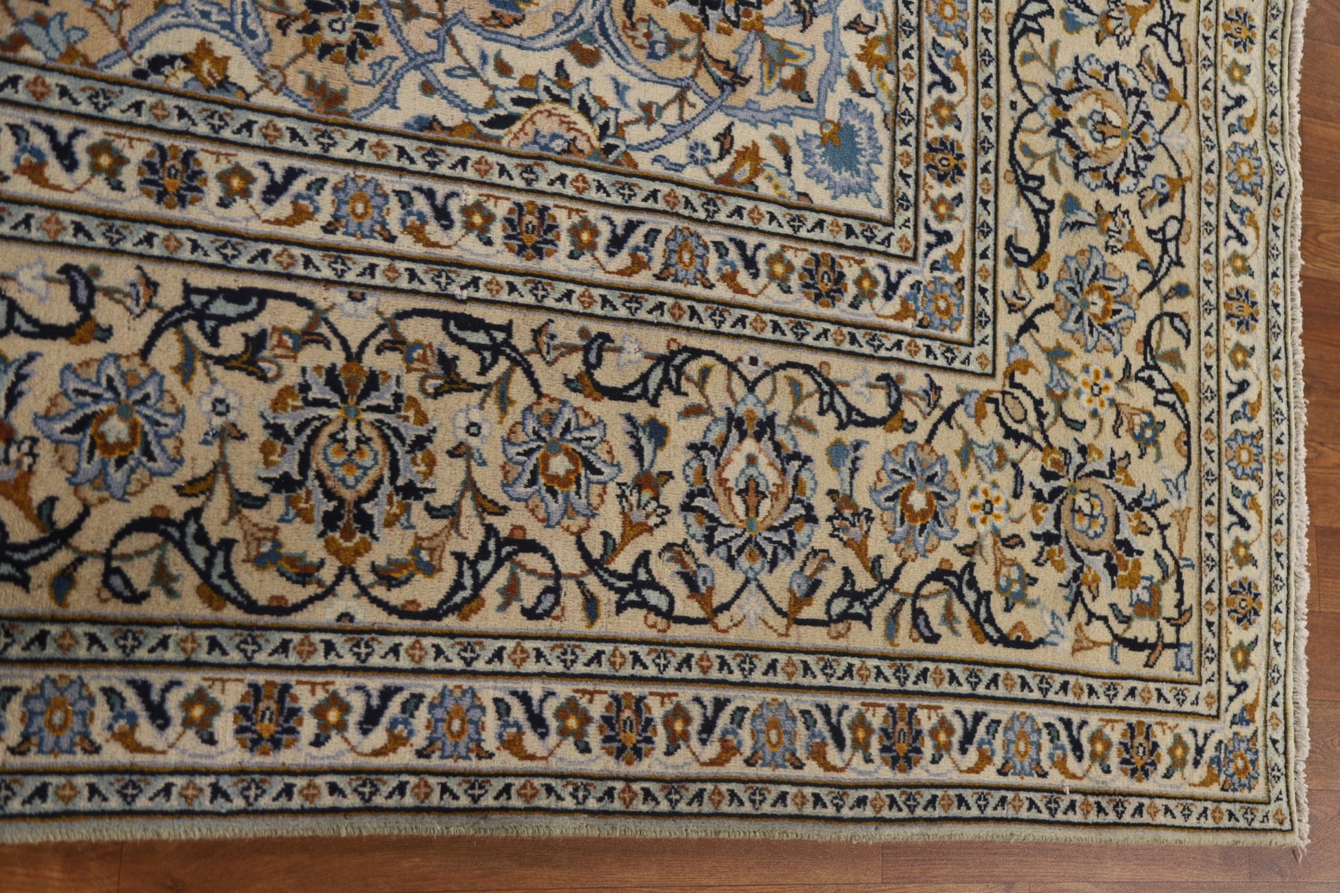 A Beautiful Genuine Persia ( Persia ) Kashan rug is Hand Knotted by skillful weavers in Persia ( Persia ) with 100% Wool Material. This rug is in Very Good condition. dimensions are 12' 7'' X 8' 7'' in foot and 384 X 262 in centimeter. the primary color is Green.