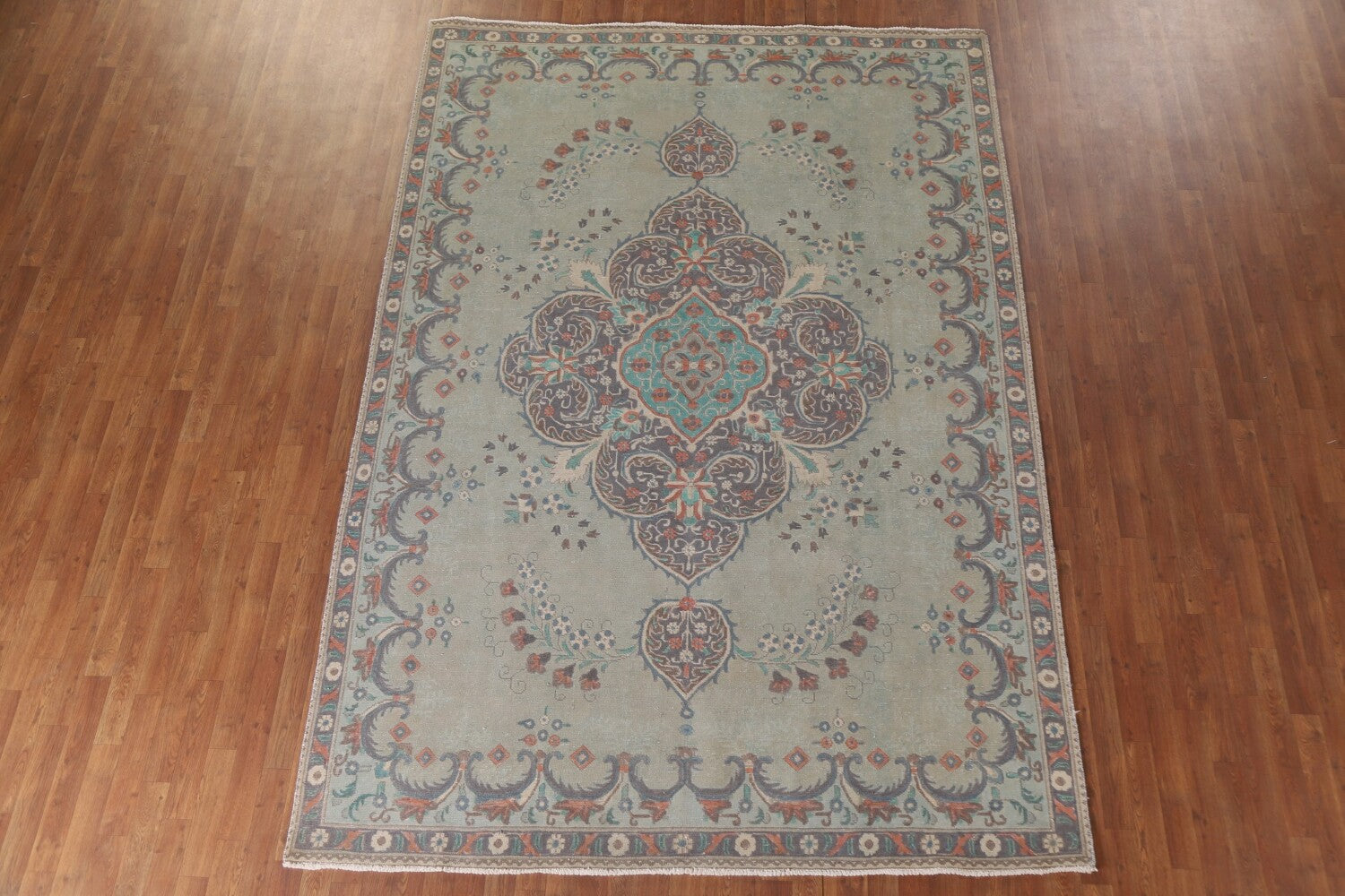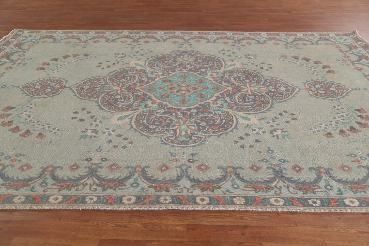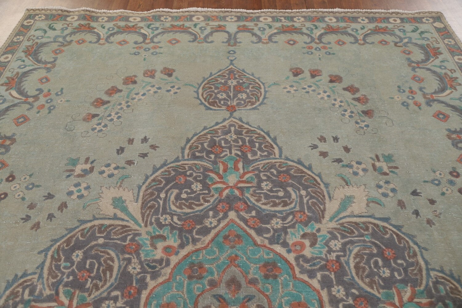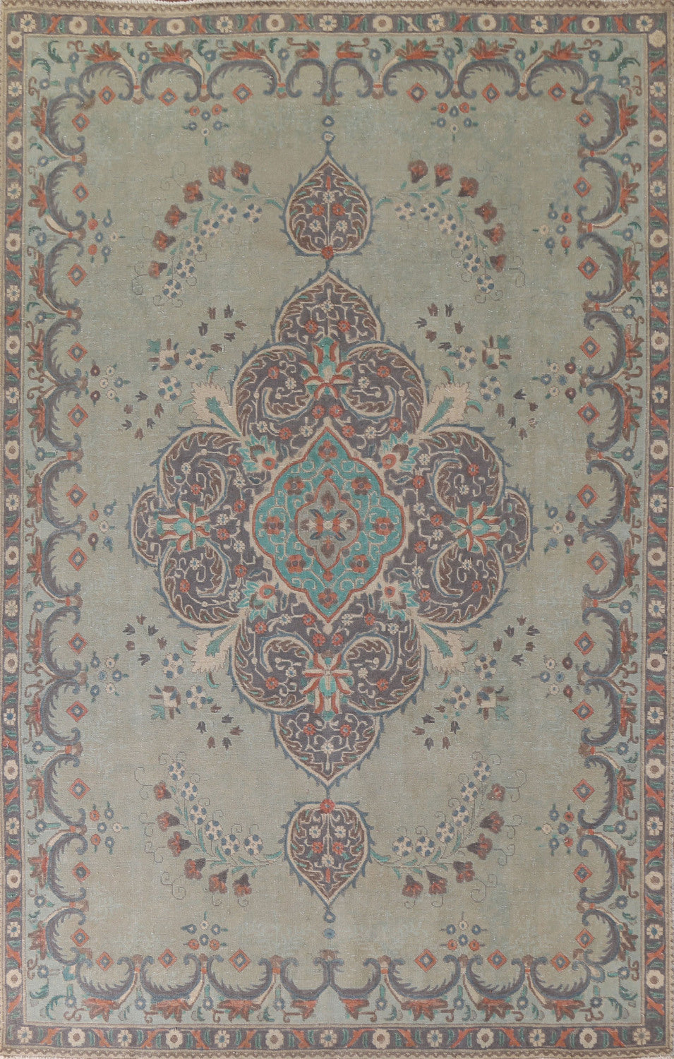 Vintage Green Tabriz Persian Area Rug 8x11