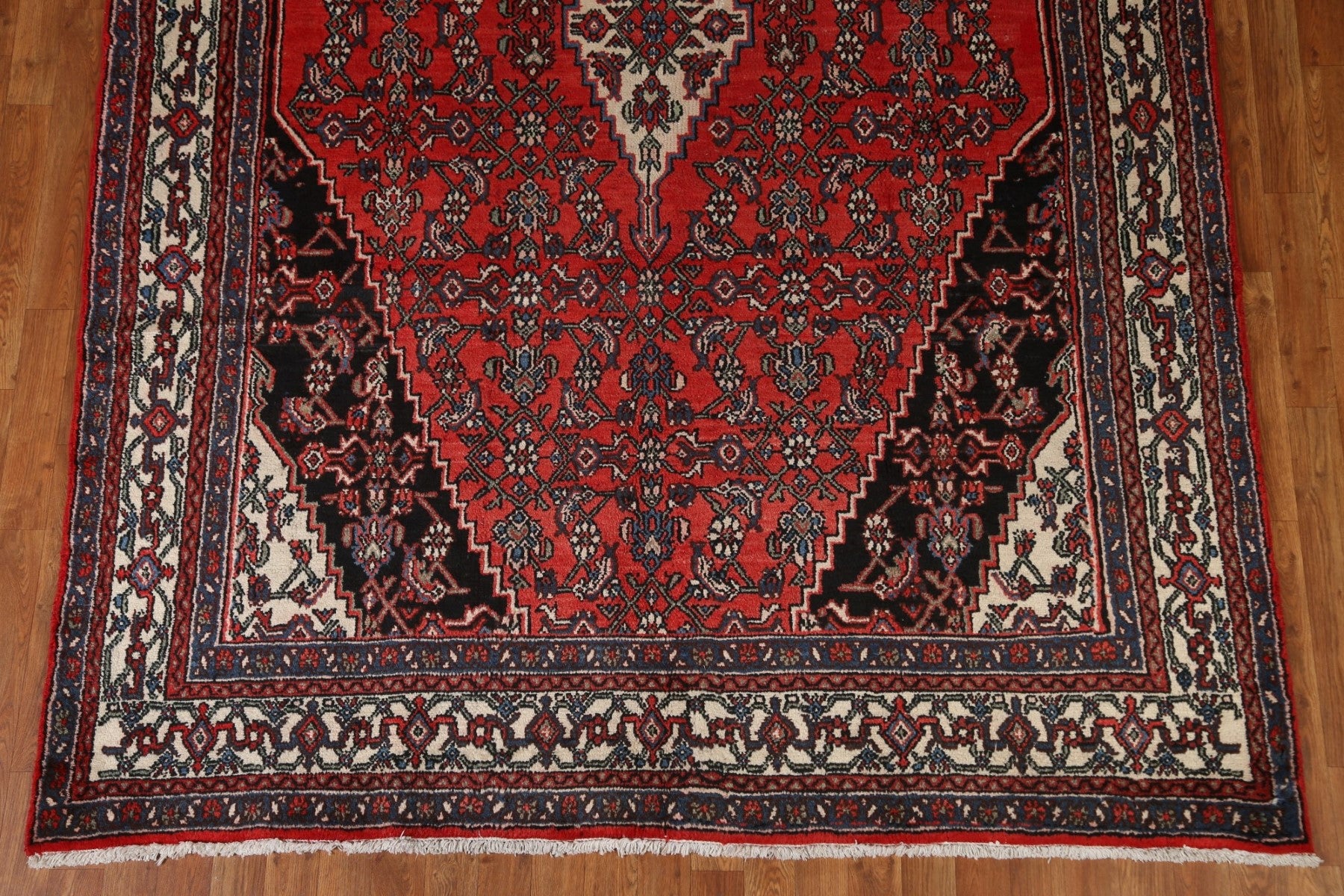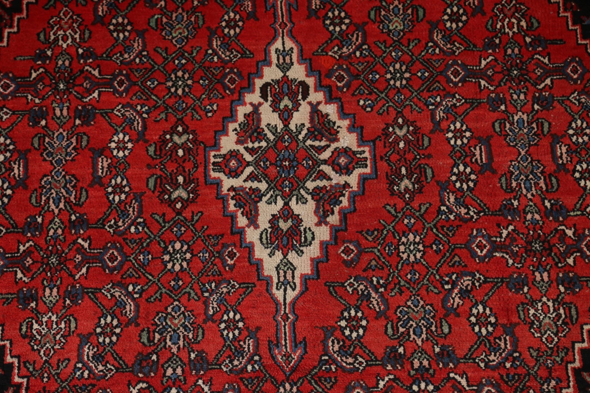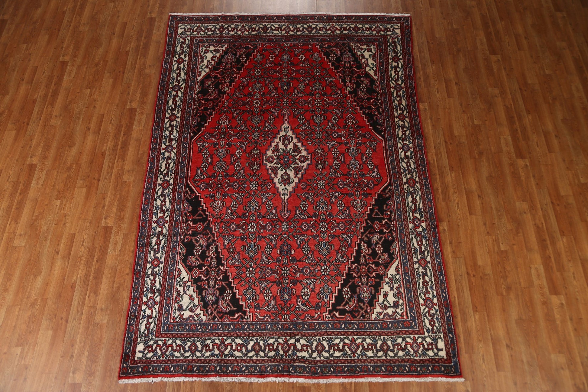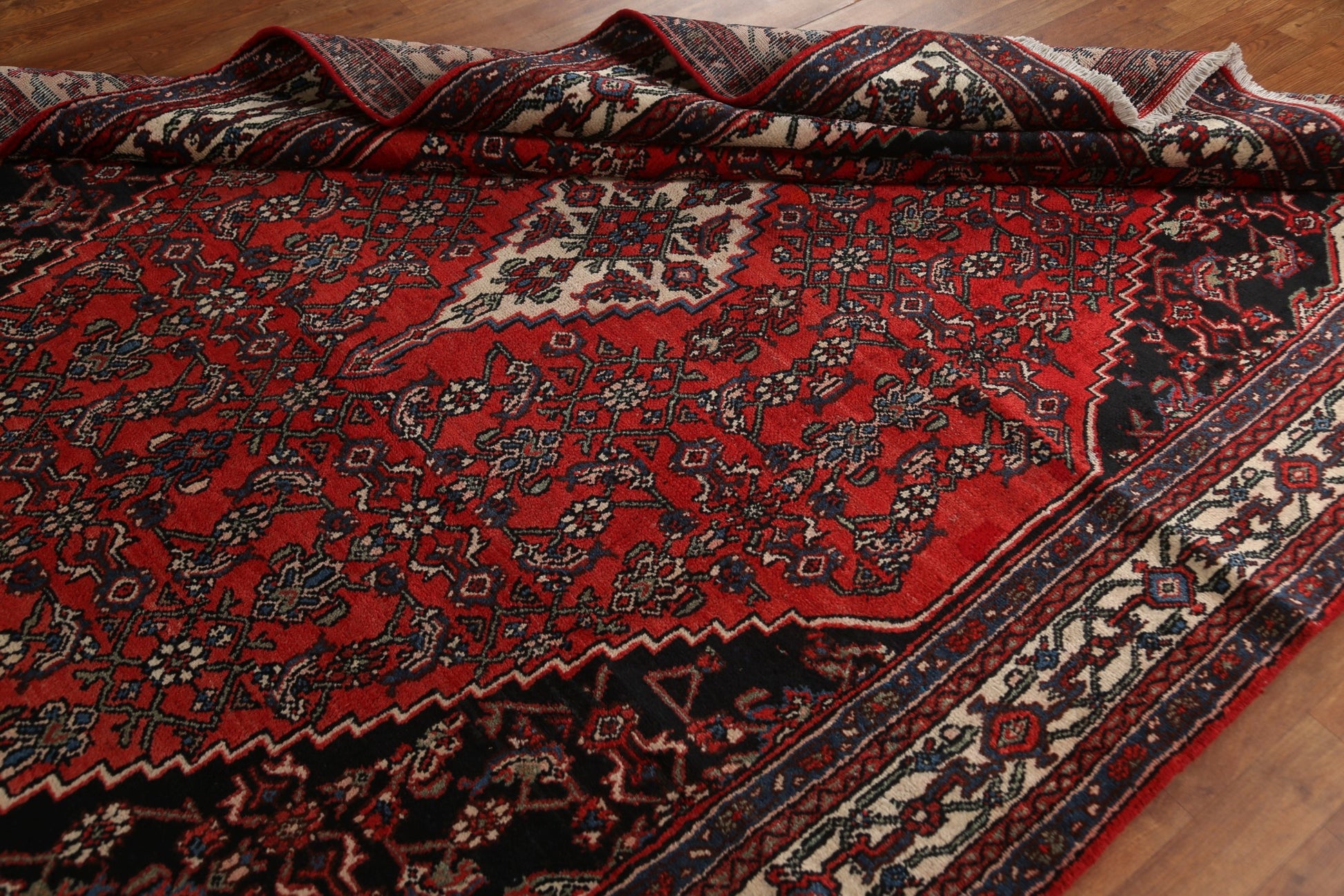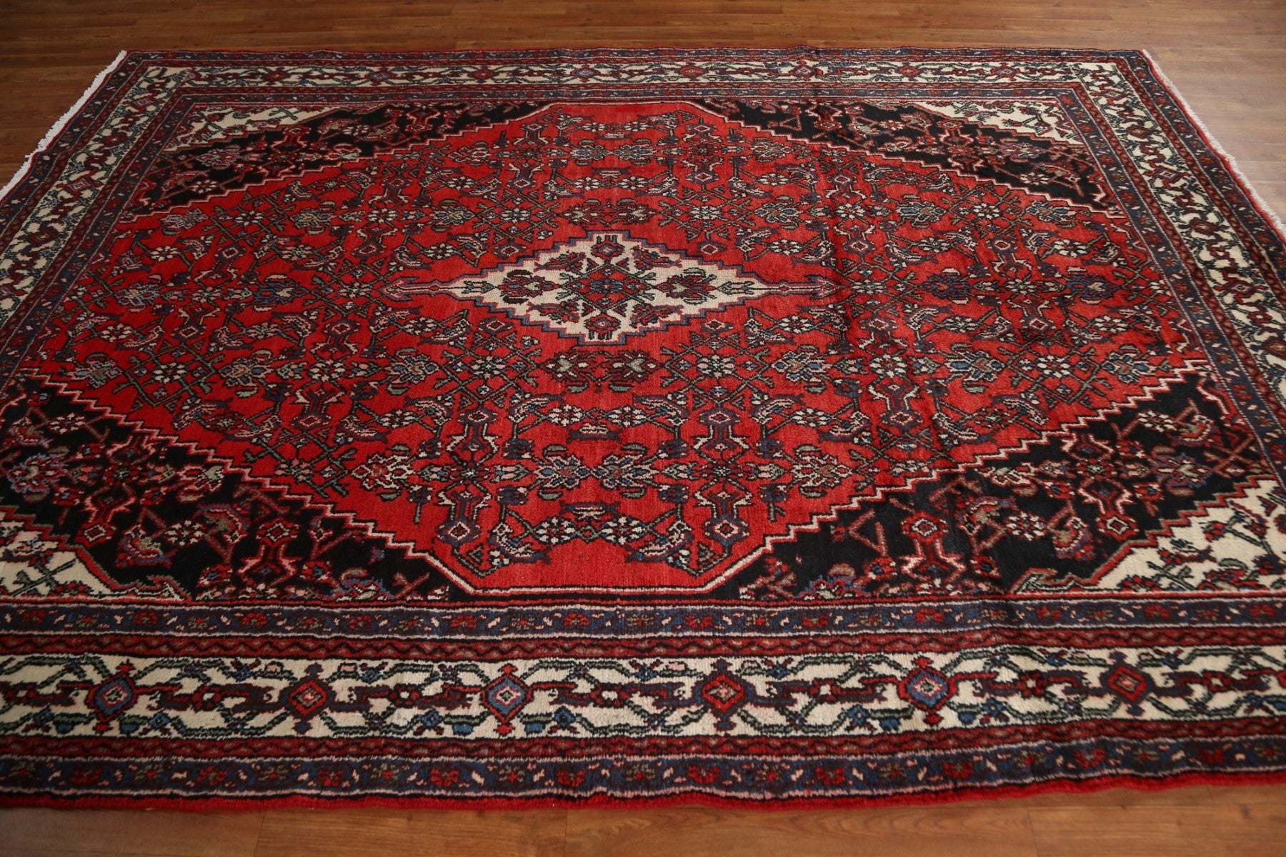 A Beautiful Genuine Persia ( Persia ) Hamedan rug is Hand Knotted by skillful weavers in Persia ( Persia ) with 100% Wool Material. This rug is in Very Good condition. dimensions are 9' 8'' X 6' 8'' in foot and 295 X 203 in centimeter. the primary color is Red.