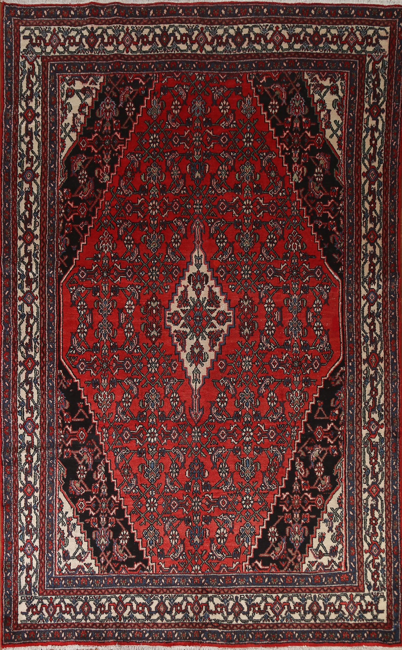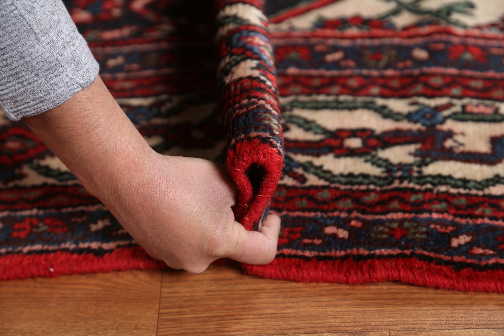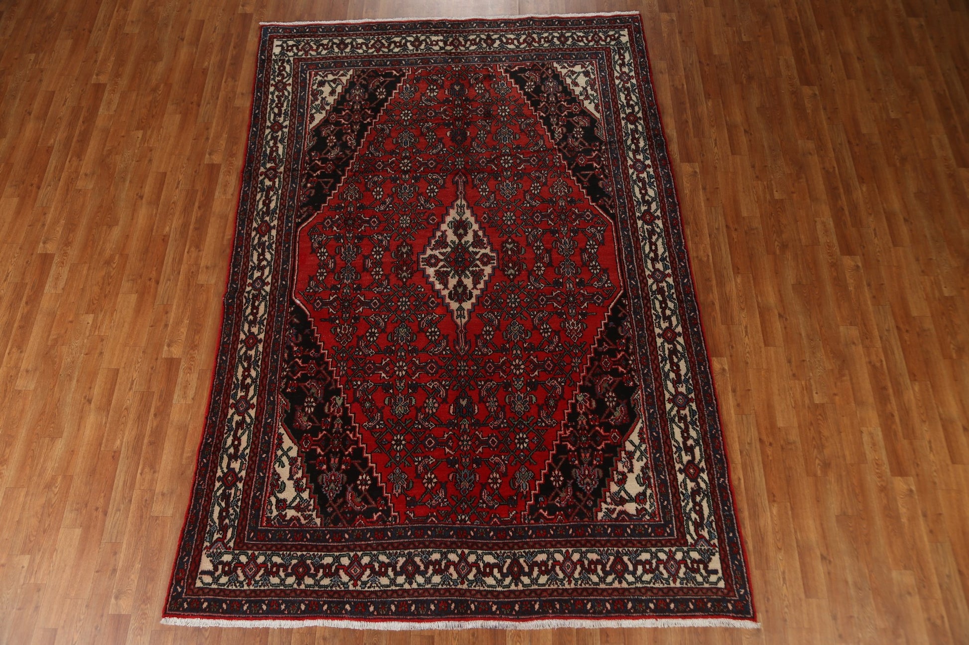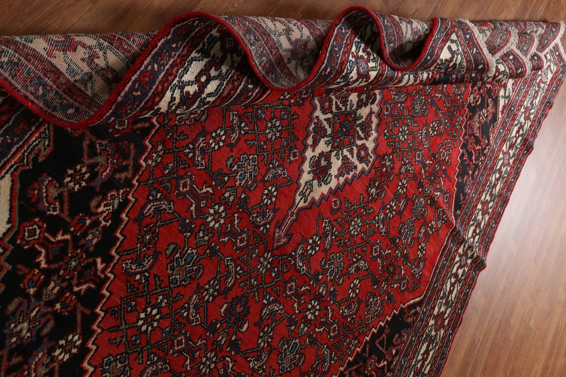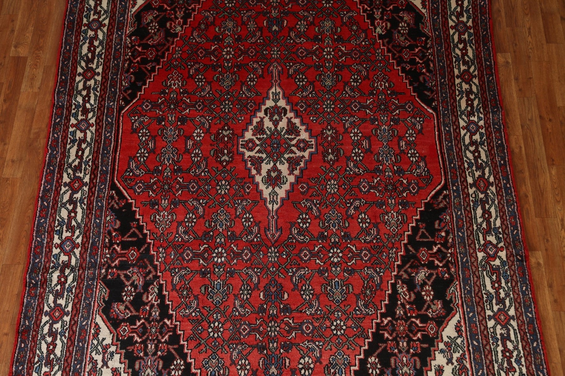 A Beautiful Genuine Persia ( Persia ) Hamedan rug is Hand Knotted by skillful weavers in Persia ( Persia ) with 100% Wool Material. This rug is in Very Good condition. dimensions are 9' 8'' X 6' 8'' in foot and 295 X 203 in centimeter. the primary color is Red.